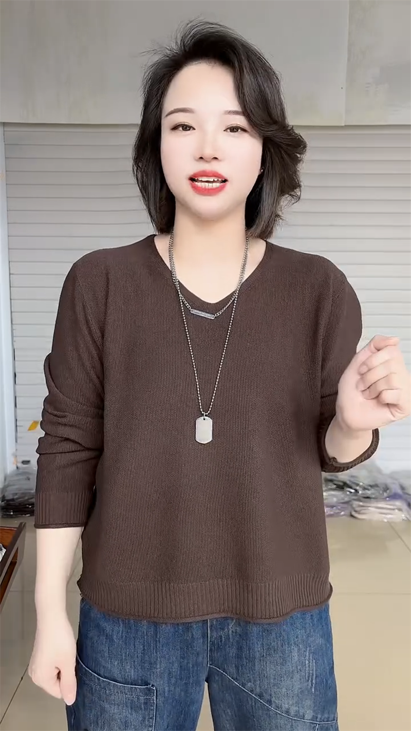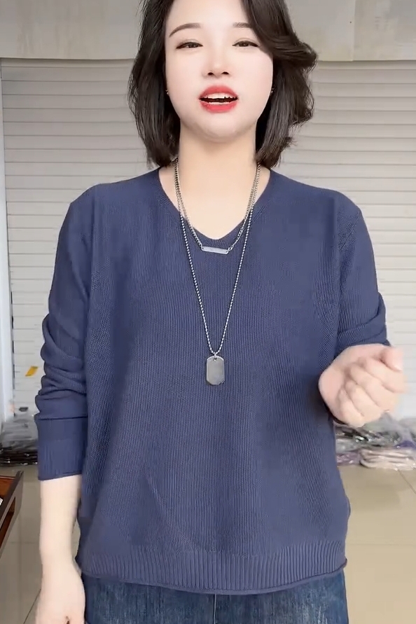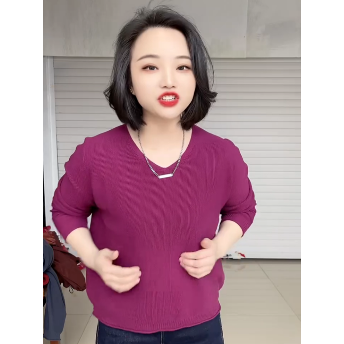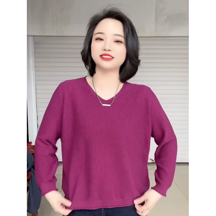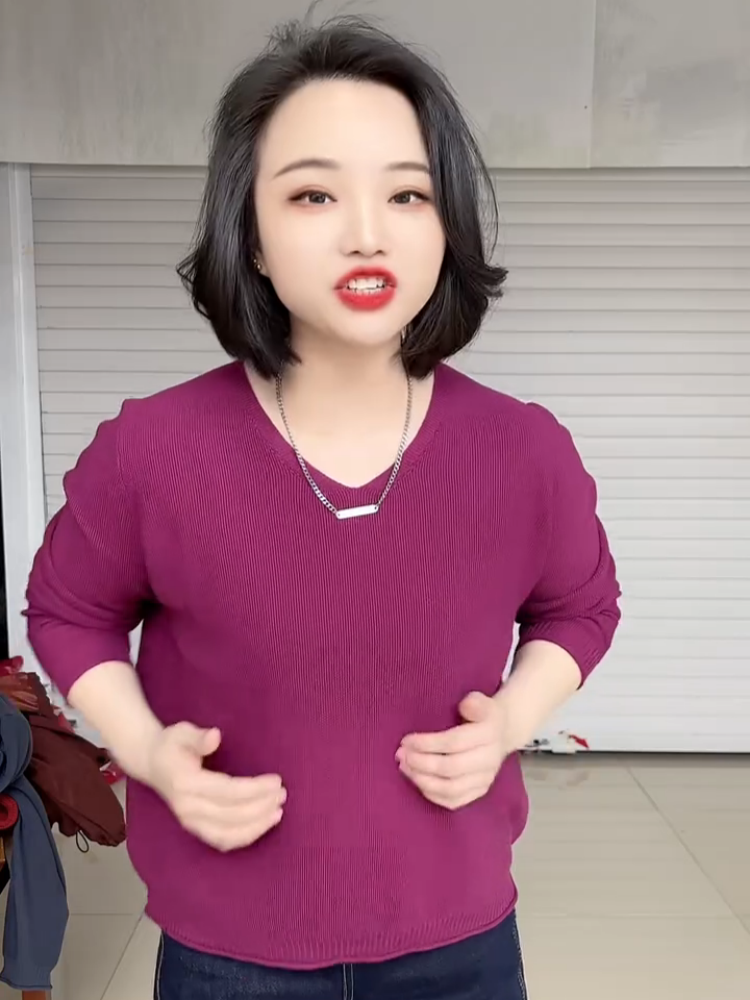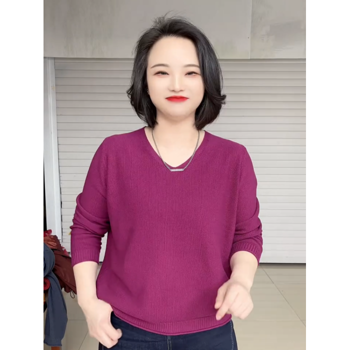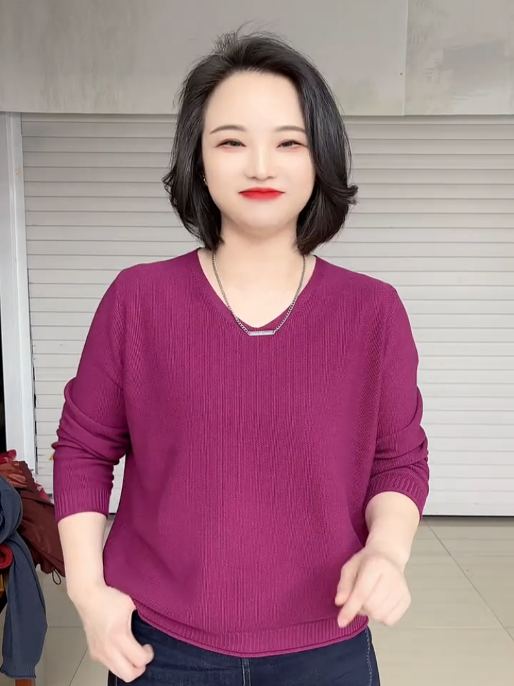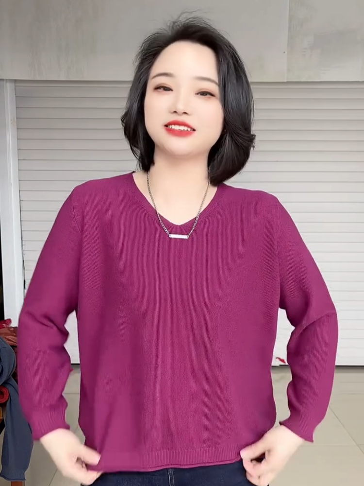 春夏款胖mm大碼V領打底衫女寬松顯瘦長袖內搭針織衫日常百搭上衣