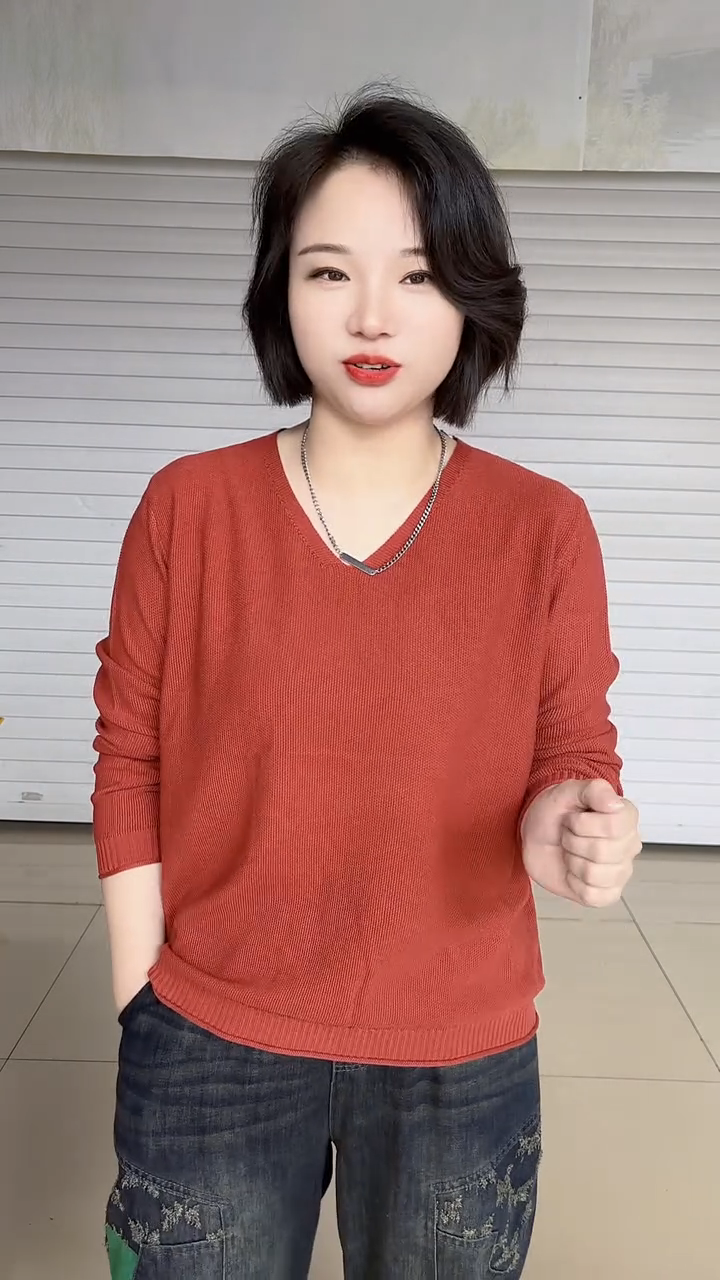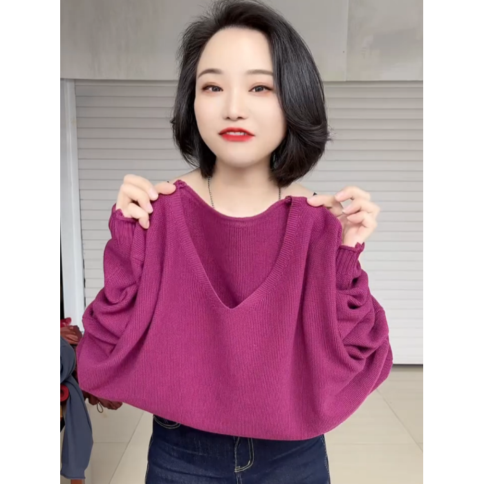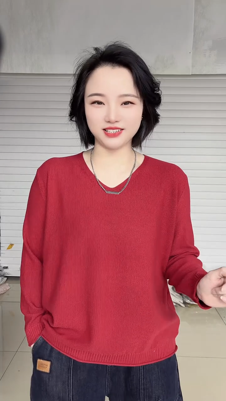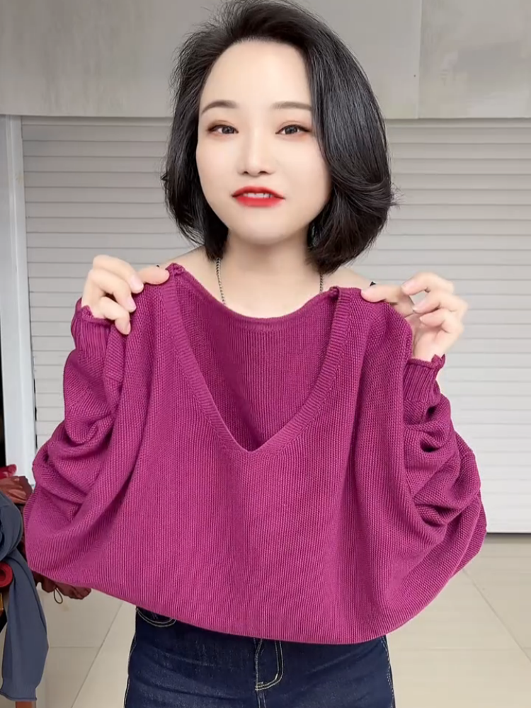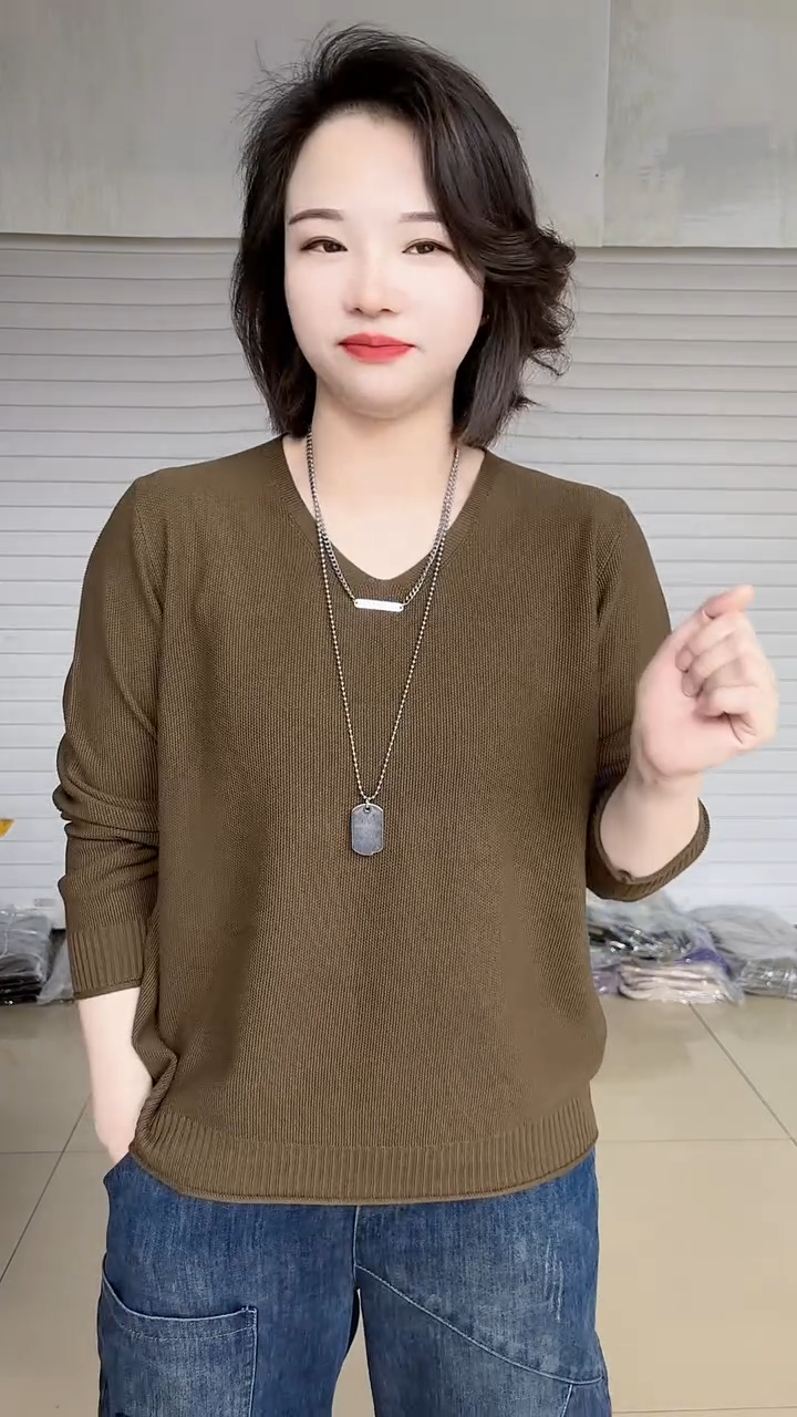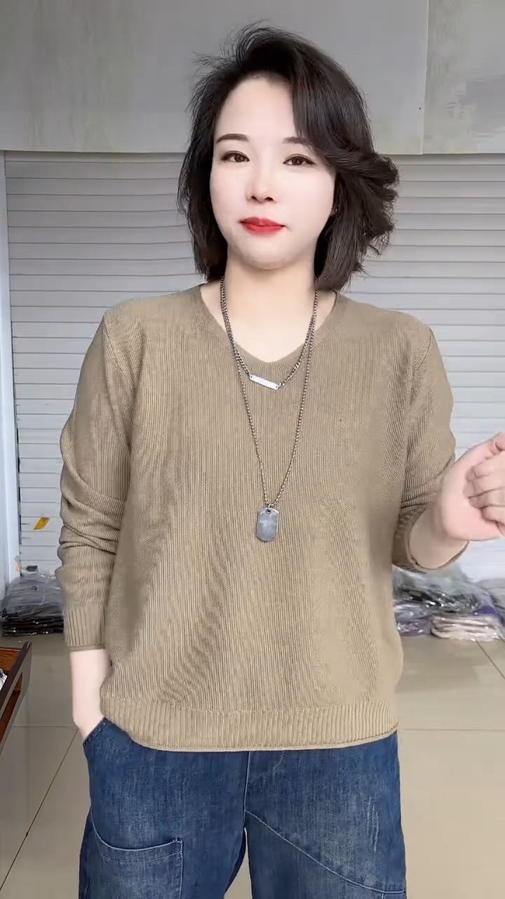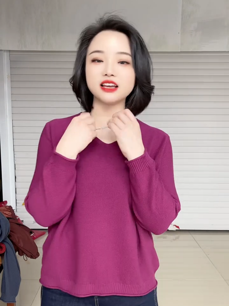 春夏款胖mm大碼V領打底衫女寬松顯瘦長袖內搭針織衫日常百搭上衣