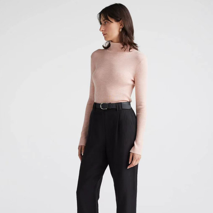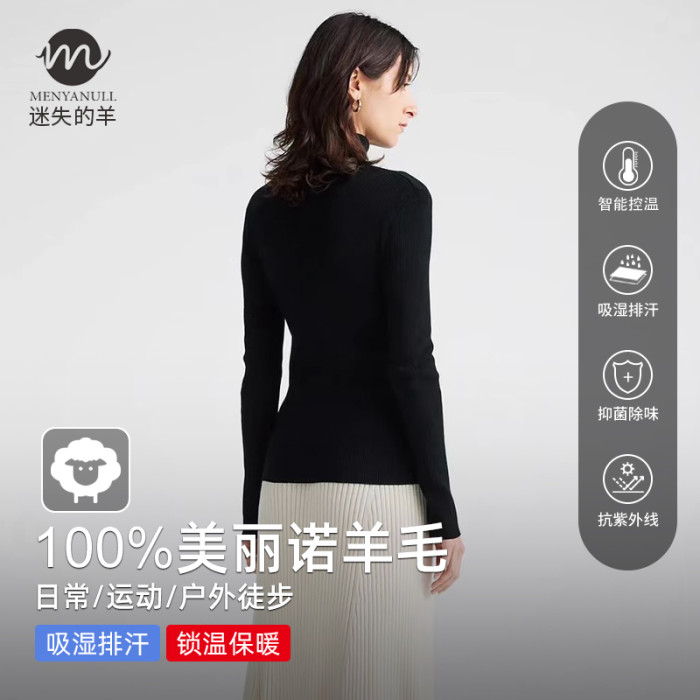 Menyanull女士高領打底衫美利奴羊毛秋冬厚保暖修身長袖上衣純色