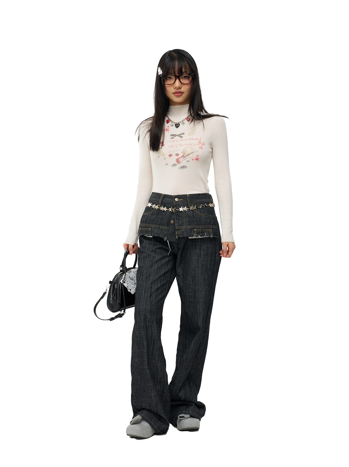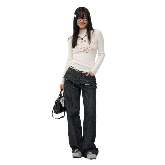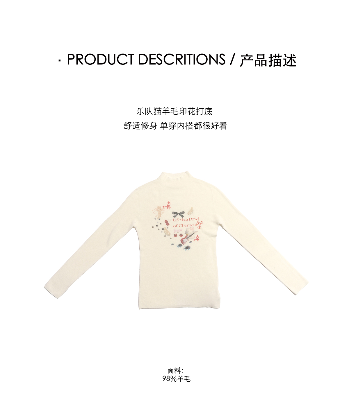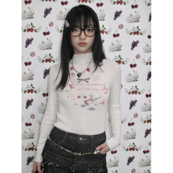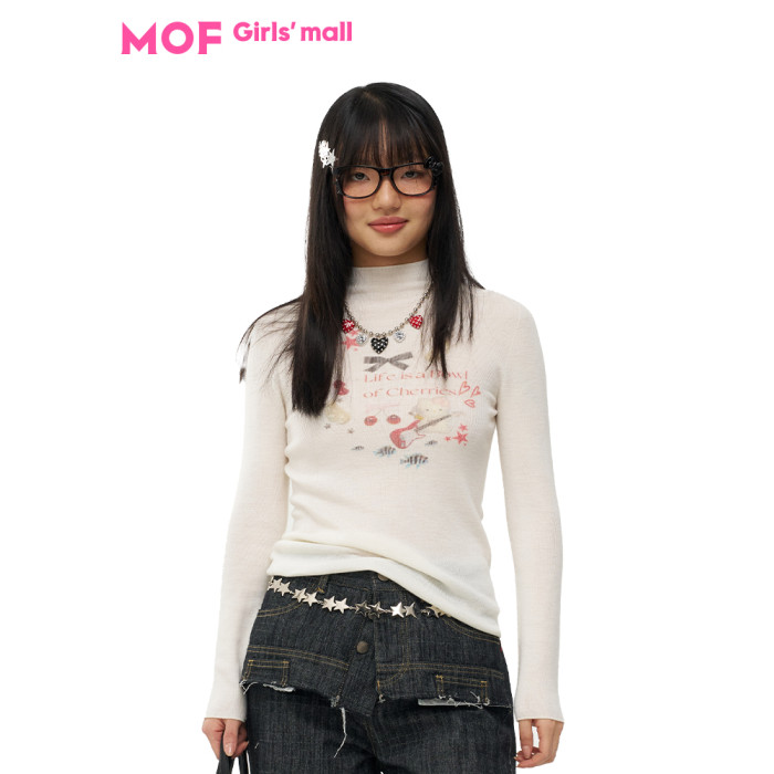 MOF少女百貨 樂隊貓羊毛針織打底衫修身高領顯瘦毛衣女百搭上衣