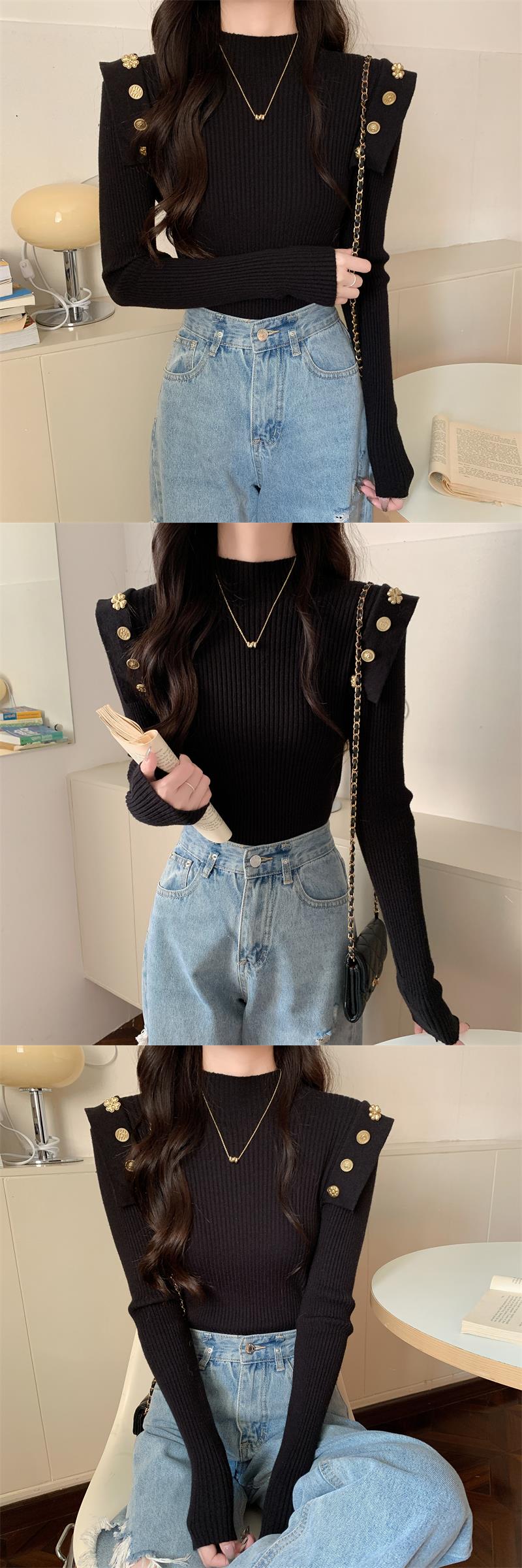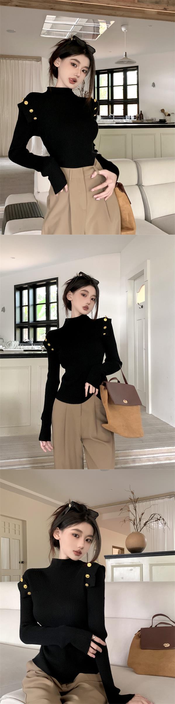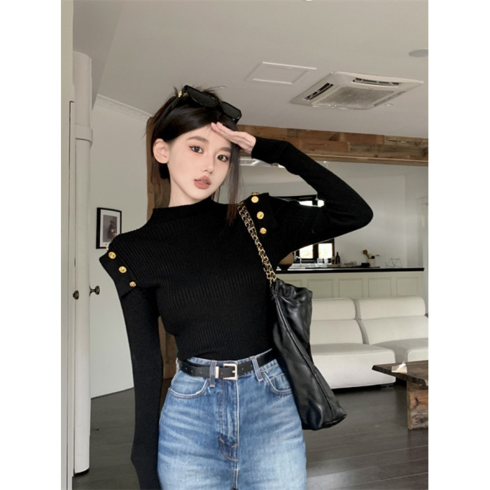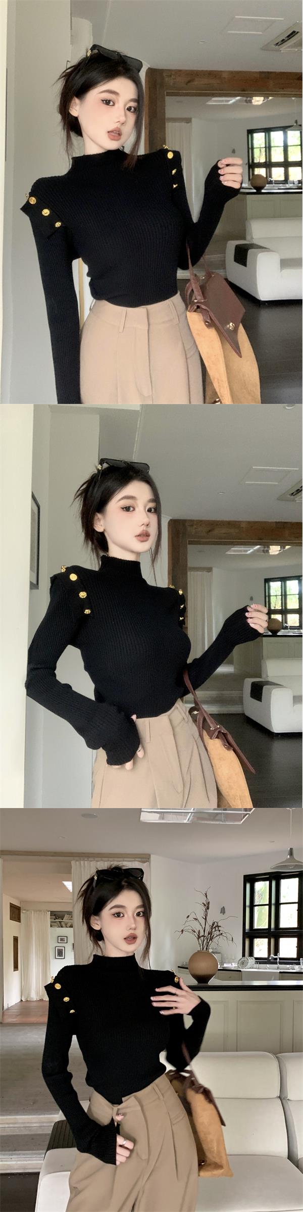 黑色半高領針織打底衫女秋冬季內搭高級感毛衣小香風修身義烏上衣
