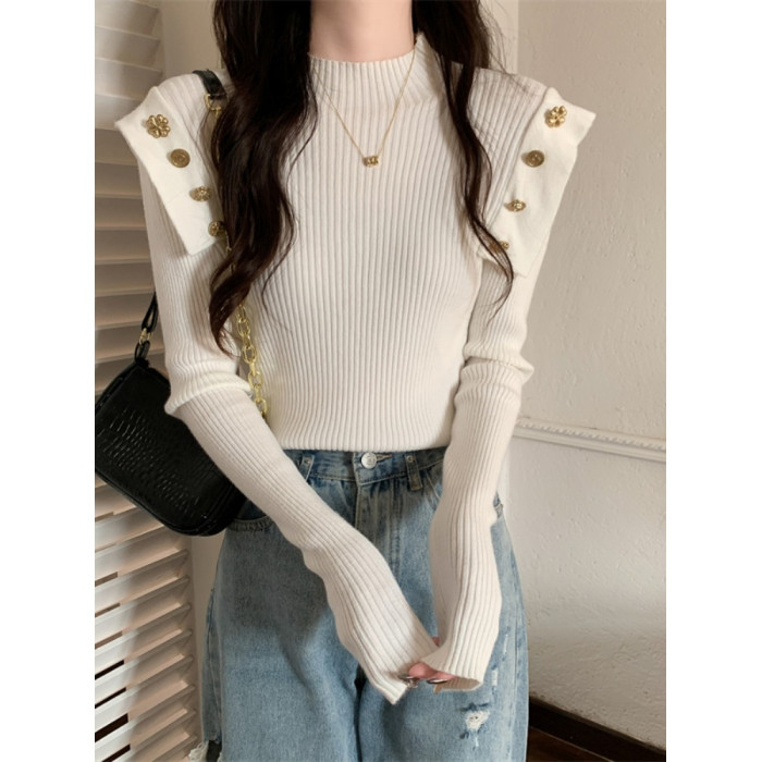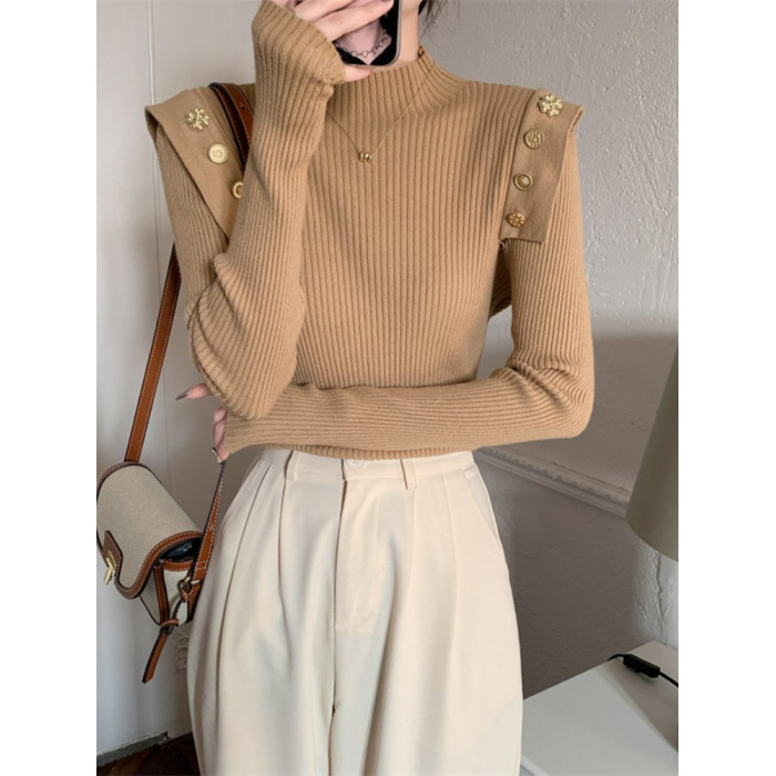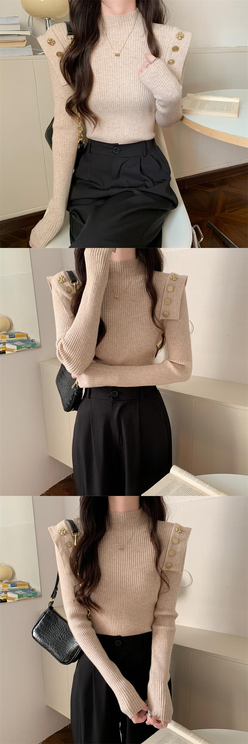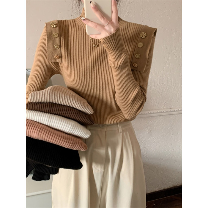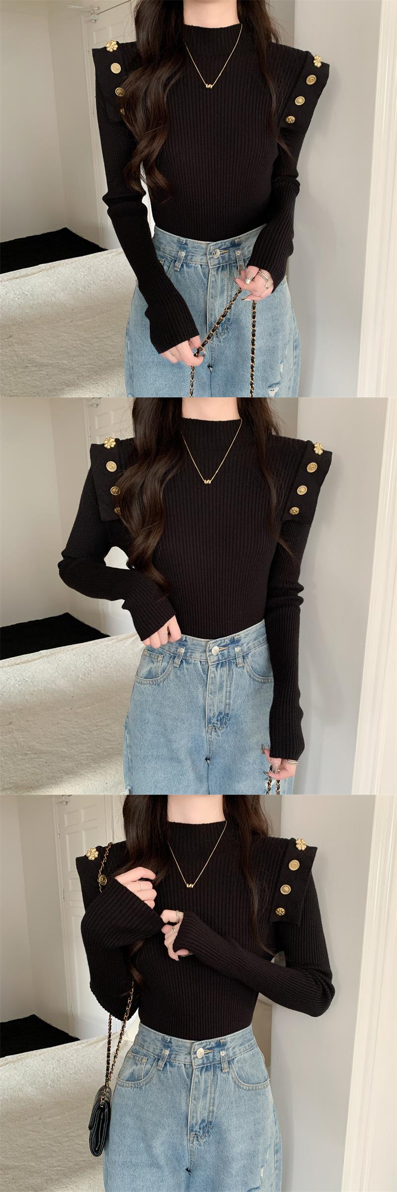 黑色半高領針織打底衫女秋冬季內搭高級感毛衣小香風修身義烏上衣