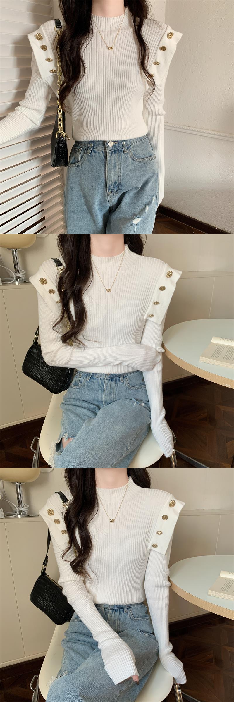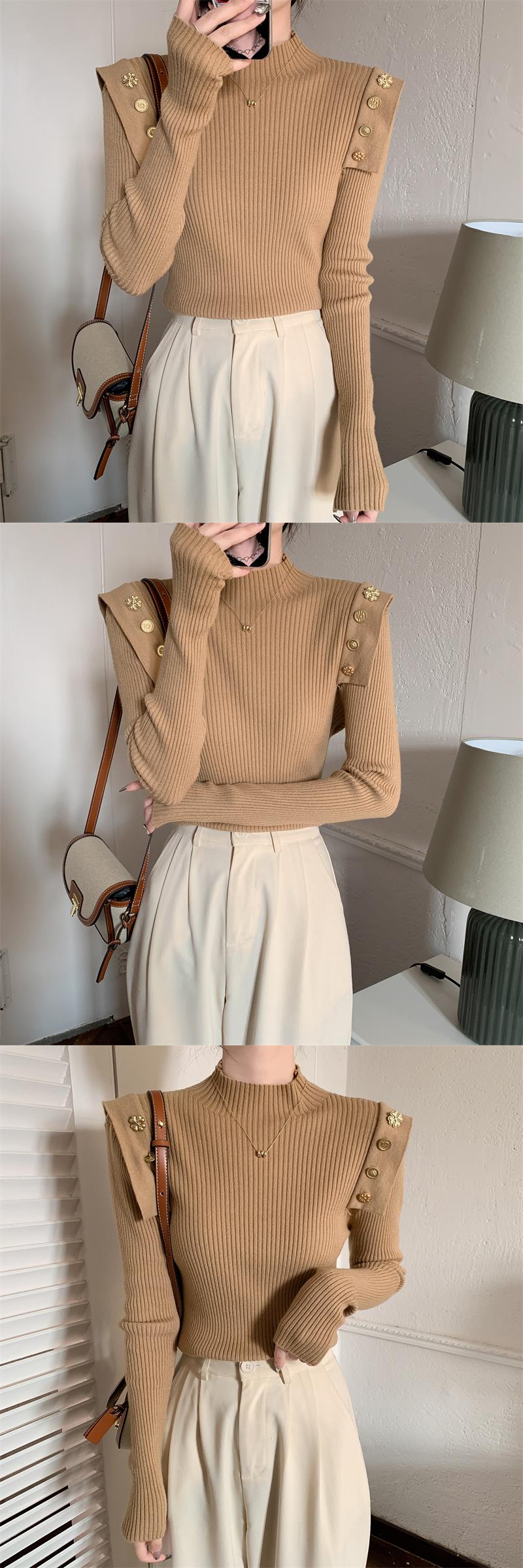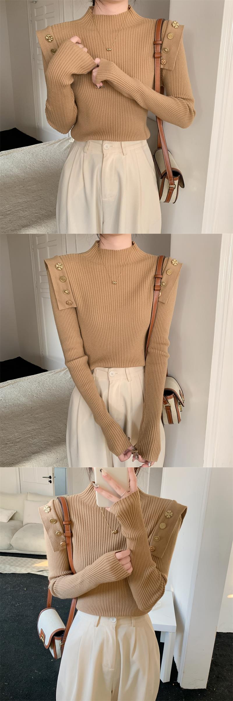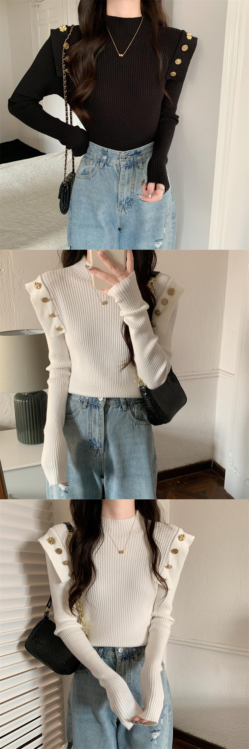 黑色半高領針織打底衫女秋冬季內搭高級感毛衣小香風修身義烏上衣