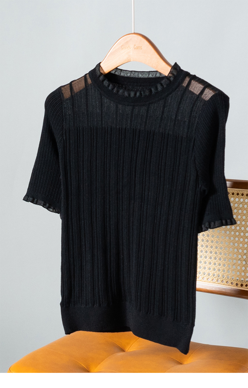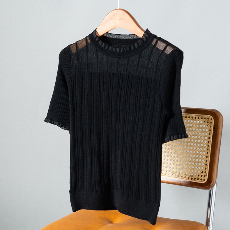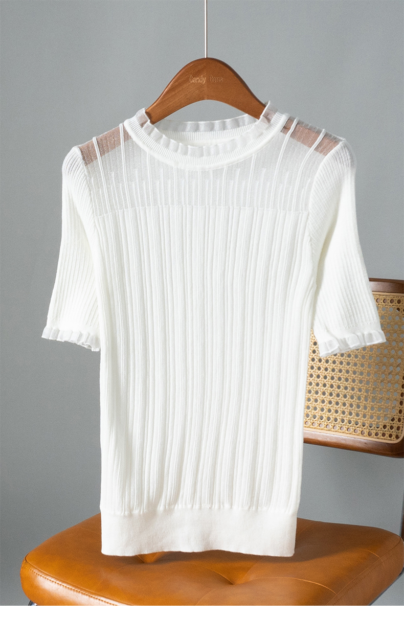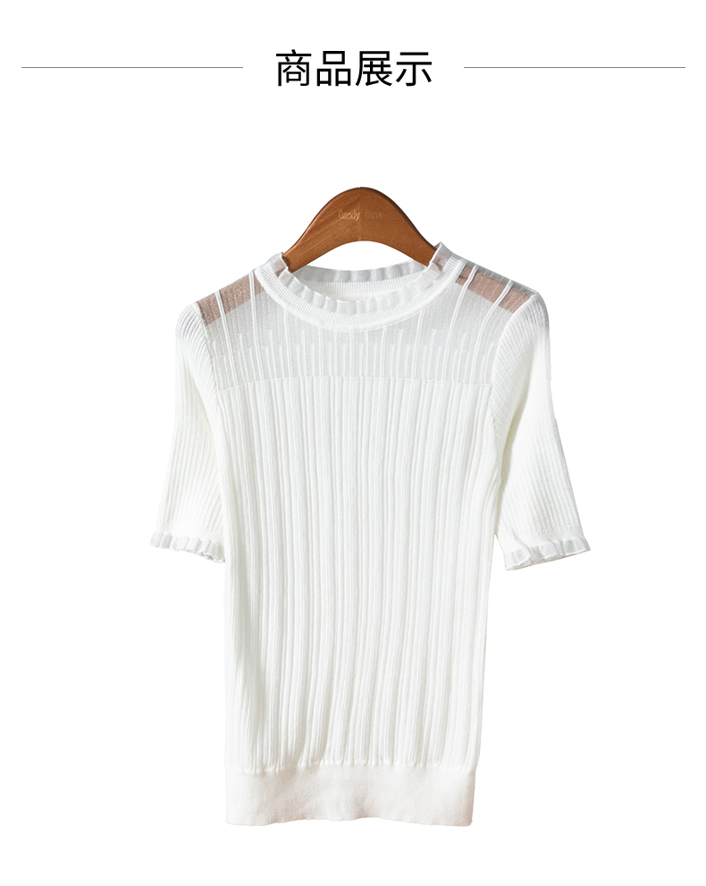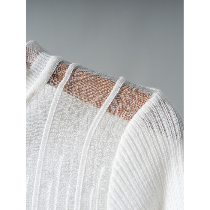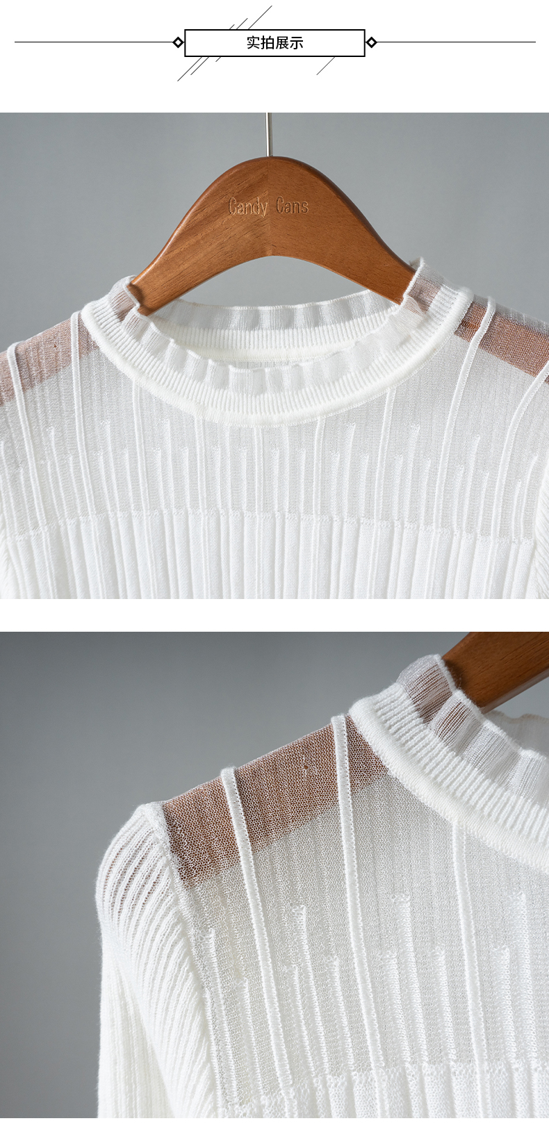 CandyCans 輕奢高級感坑條羊毛針織衫女歐根紗拼接透明打底衫上衣