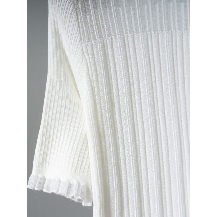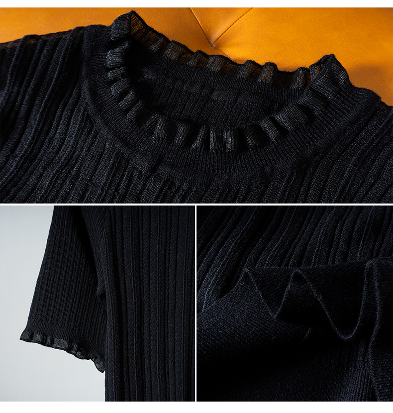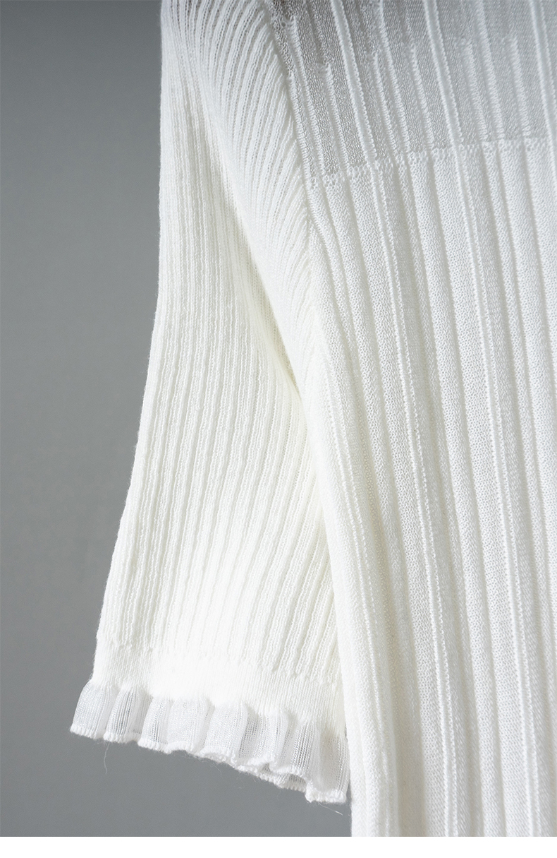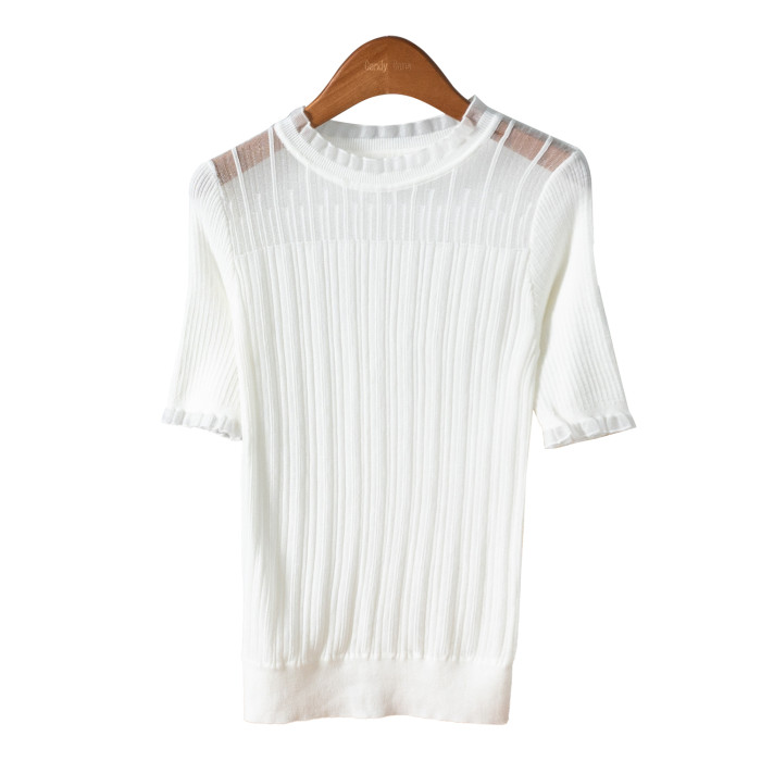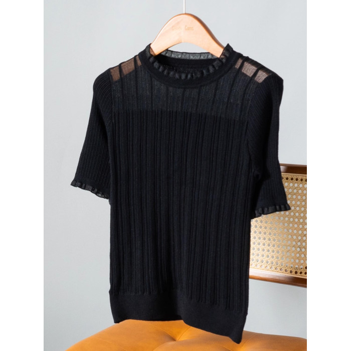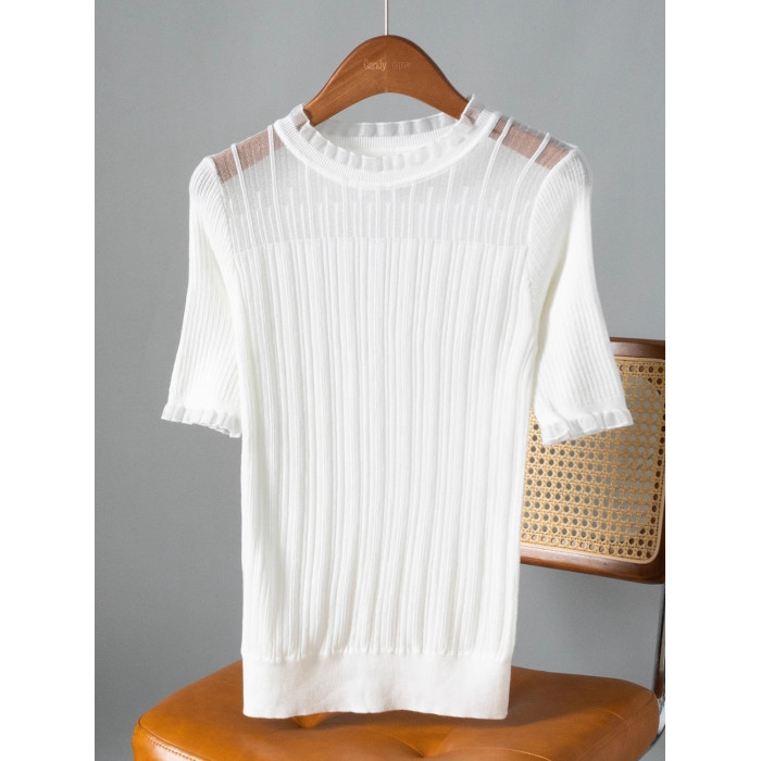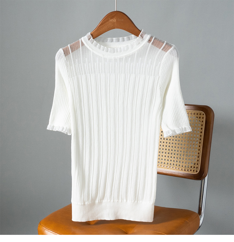 CandyCans 輕奢高級感坑條羊毛針織衫女歐根紗拼接透明打底衫上衣