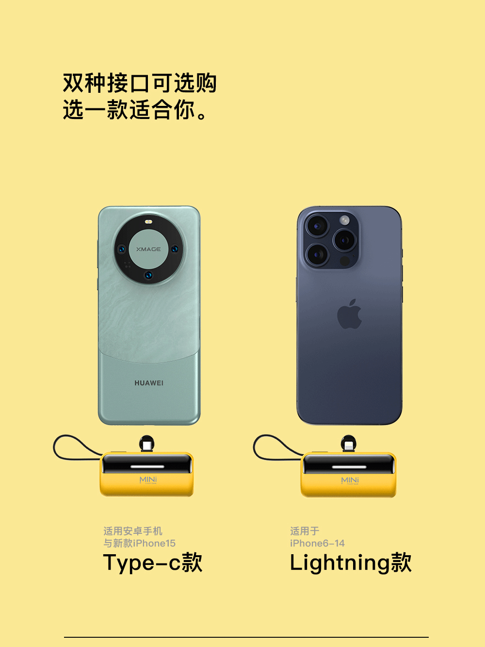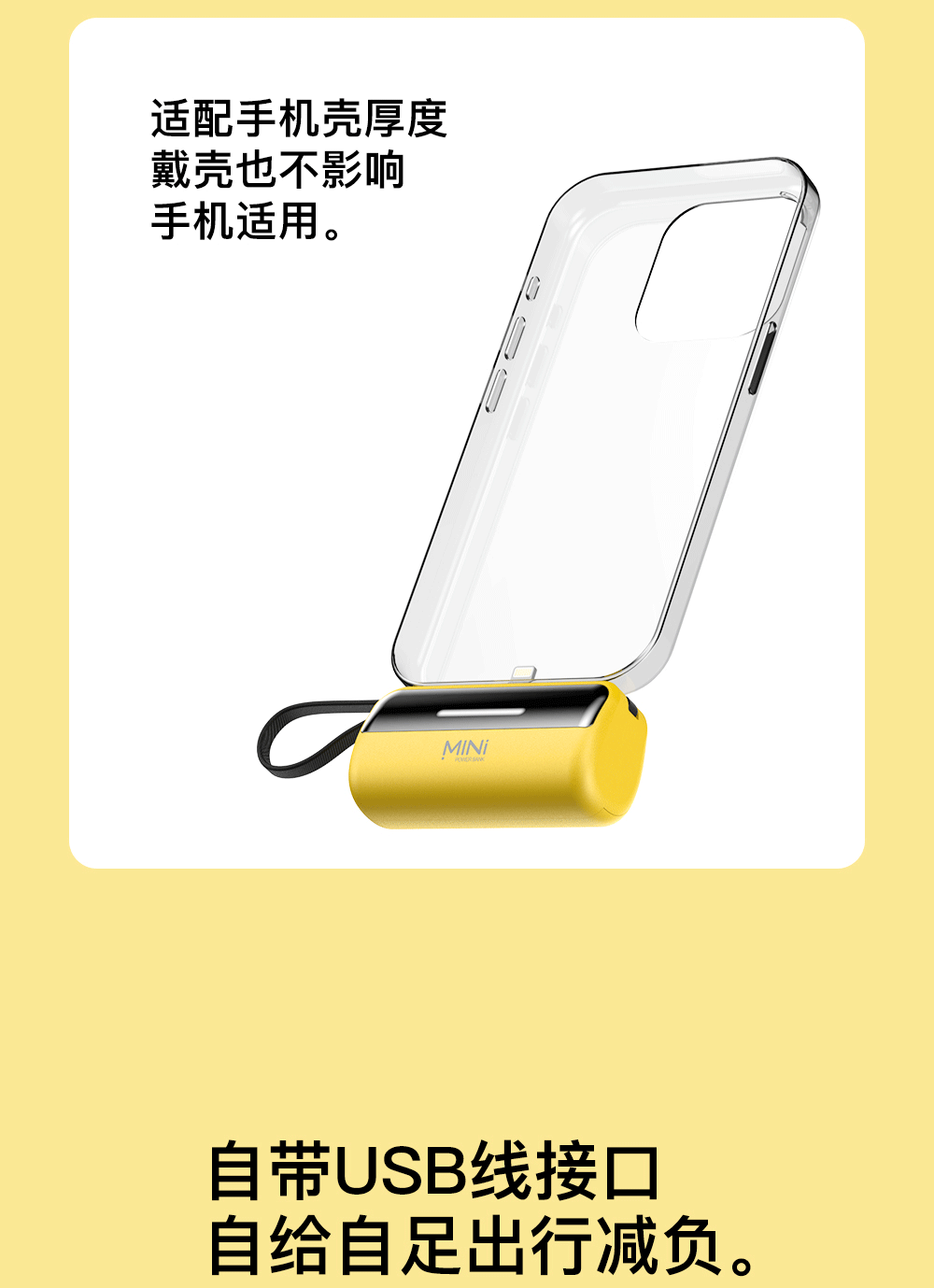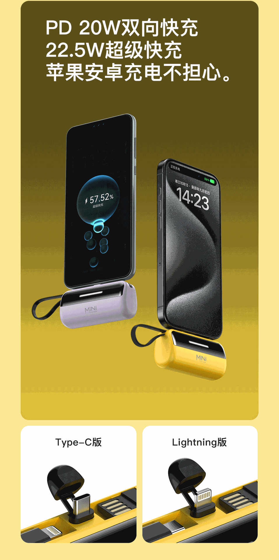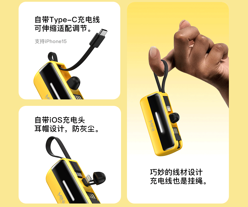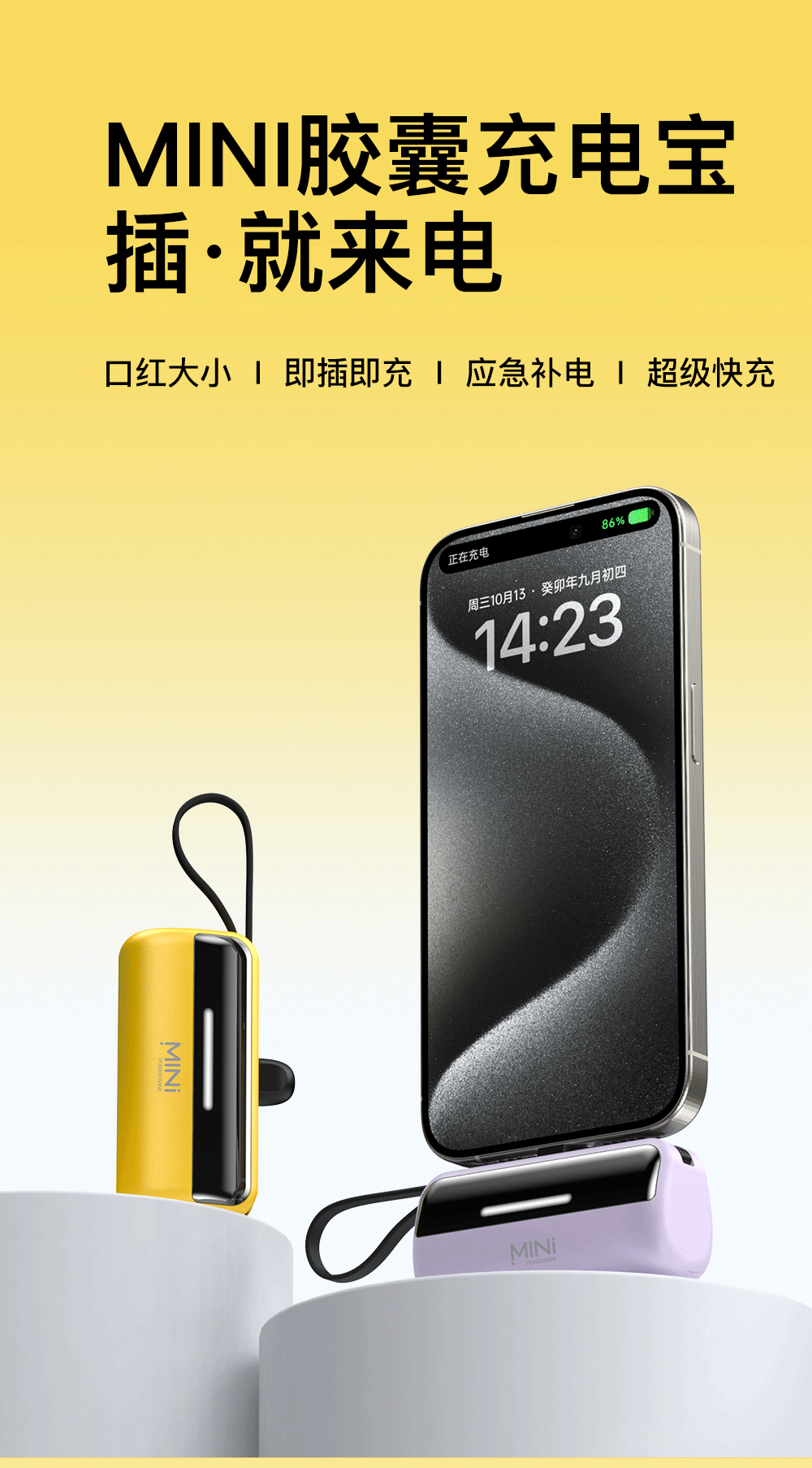 新款mini膠囊充電寶快充5000安培 自帶線迷你可攜式行動電源快充