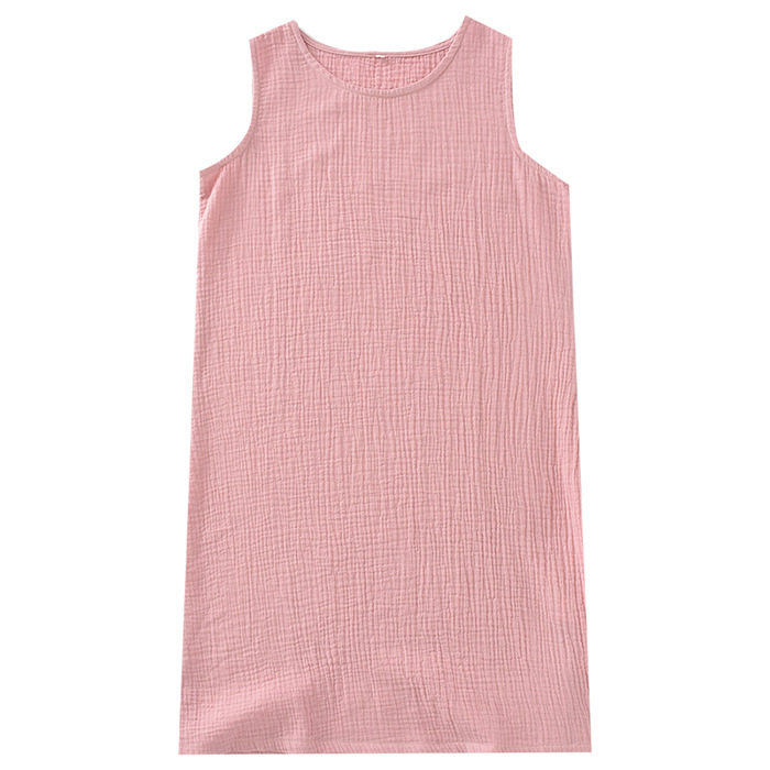 睡裙夏季薄款水洗純棉紗無袖套頭家居中裙寬松純色氣質背心裙無印