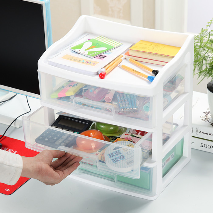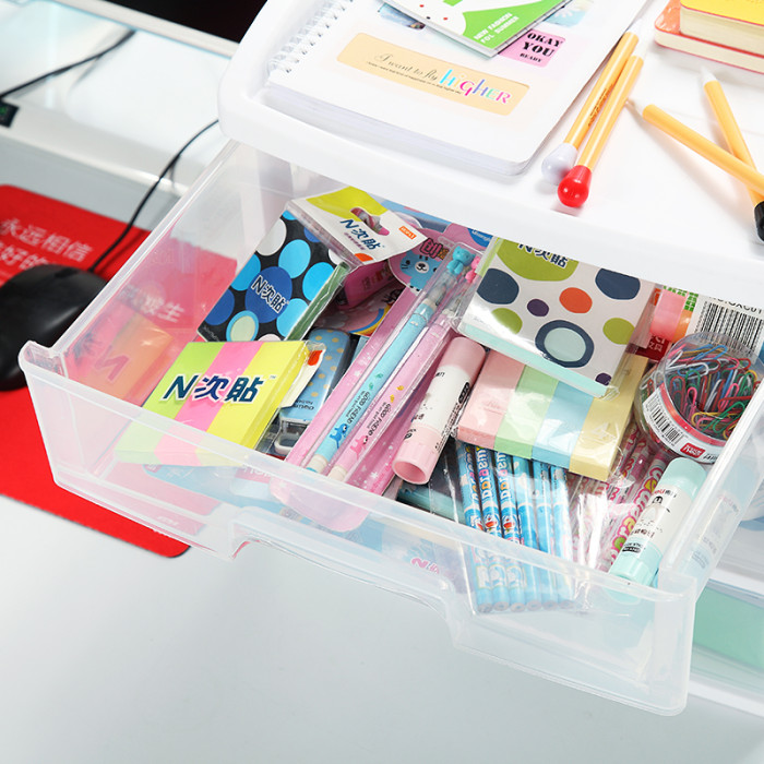 抽屜式辦公桌面收納盒多層塑膠化妝品整理箱文件飾品桌上小收納櫃