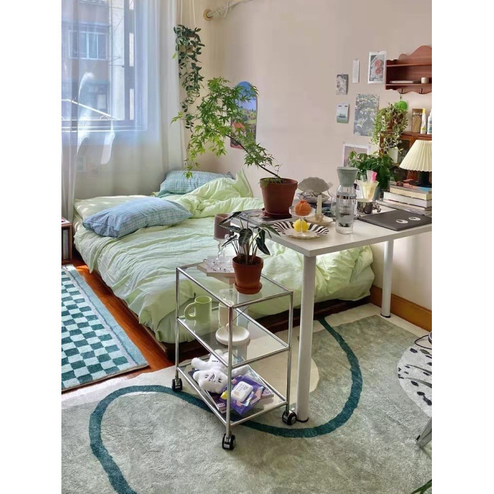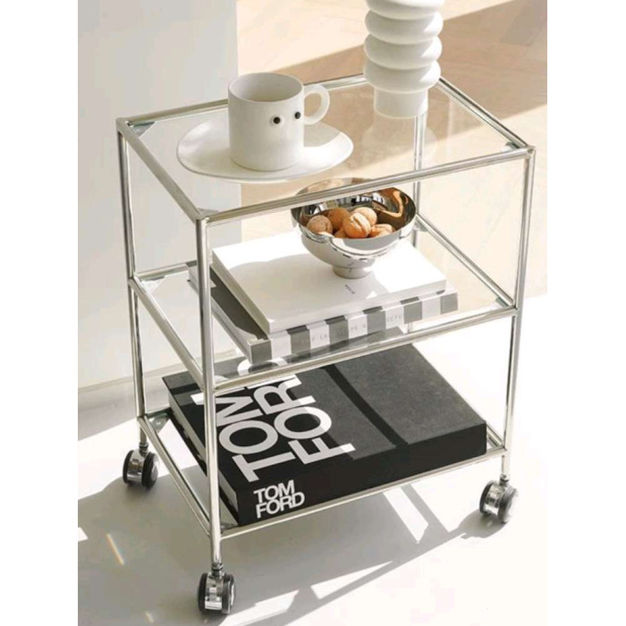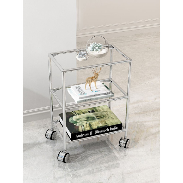 中古簡約邊幾不鏽鋼玻璃推車茶幾收納架客廳餐邊置物櫃移動小茶幾