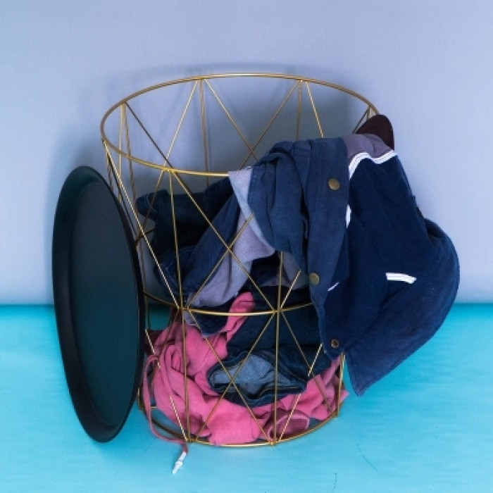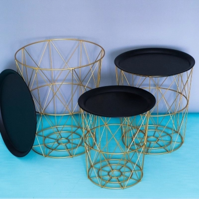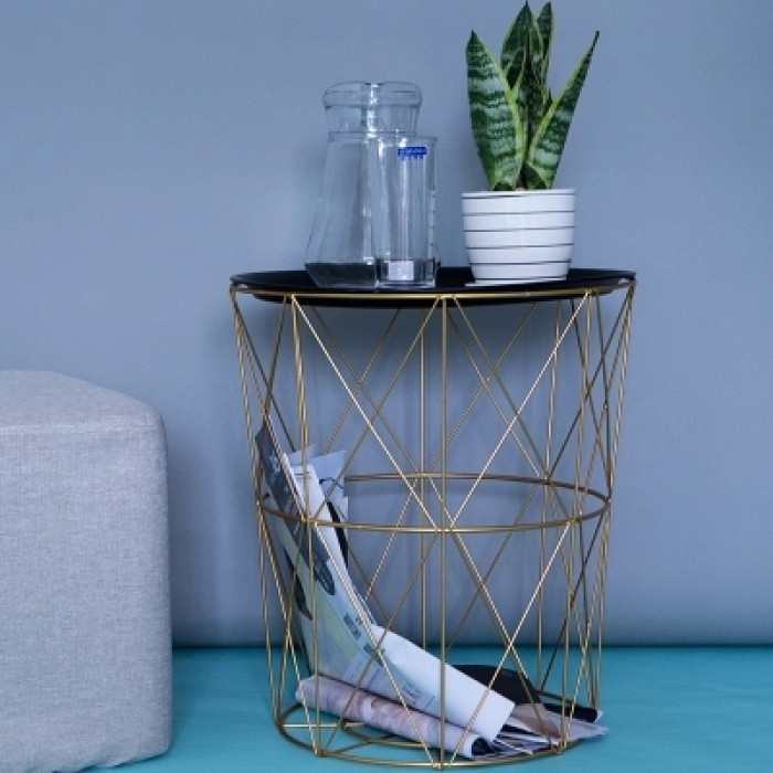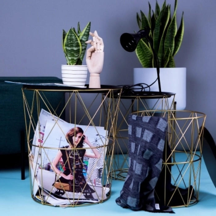 ins北歐風鐵藝小茶幾 客廳臥室圓桌簡約金屬玩具收納儲物籃髒衣籃