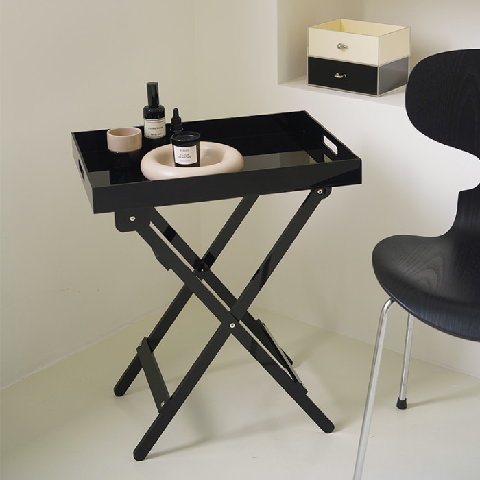 梔美家 現代簡約黑色亞克力小茶幾 沙發邊幾家用陽台小桌子收納架