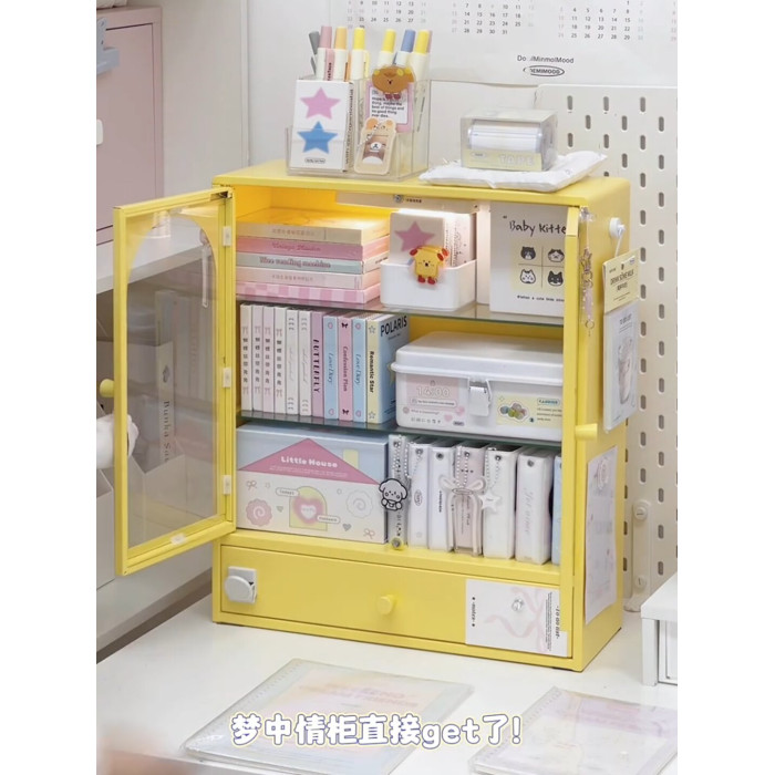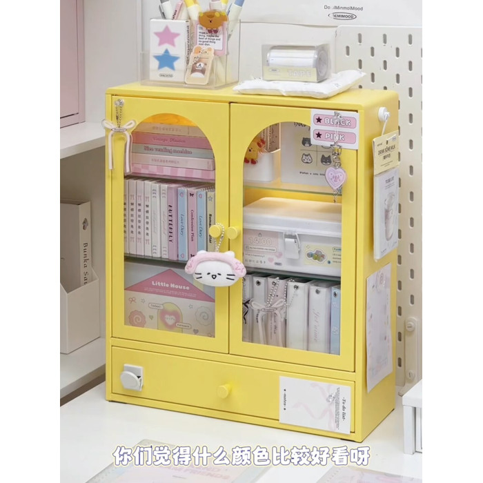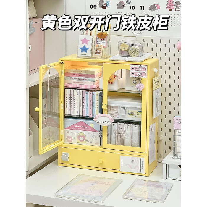 桌面鐵皮小收納櫃帶門文具化妝品手賬宿舍書桌學生置物架子收納盒
