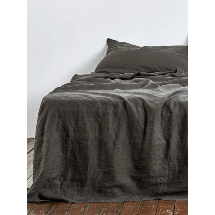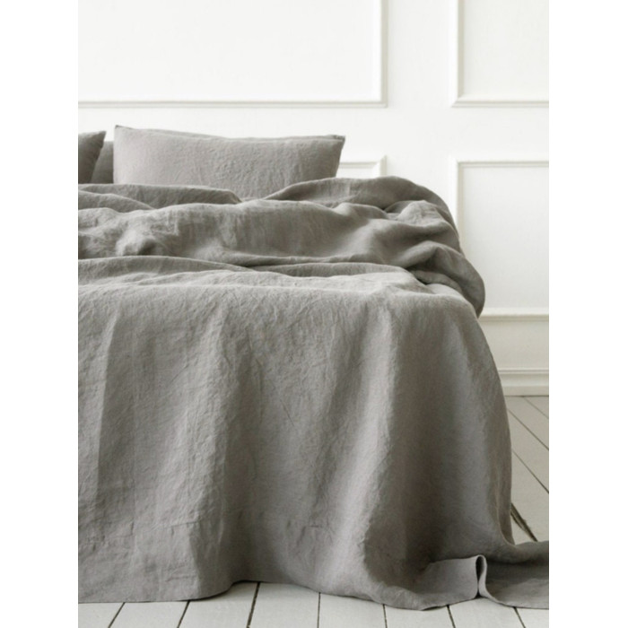 純亞麻床單枕套三件套出口面料乾爽舒適透氣吸淺灰色單人雙人被單