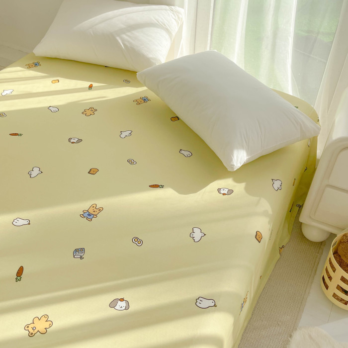 抹茶小可愛 原創全棉雙層紗床單床笠單件純棉被單韓系卡通小動物