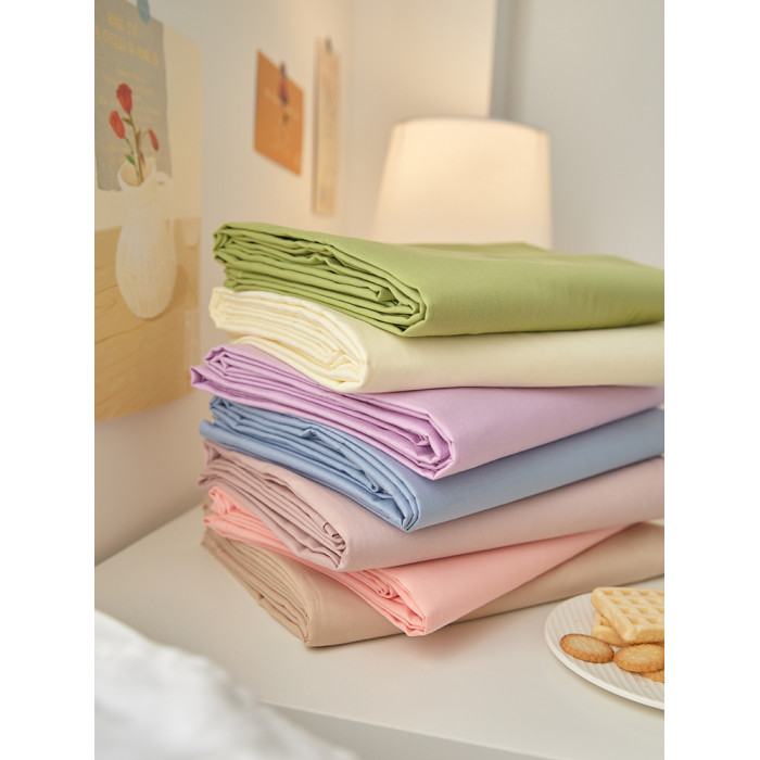 Moryio馬卡龍色簡約純色全棉床單單件學生宿舍單人床純棉床笠1.5m