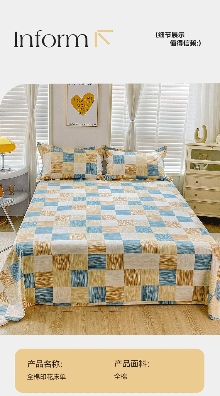 ins風純棉床單單件100%全棉被單1.2m學生宿舍單人1.5m1.8米雙人床