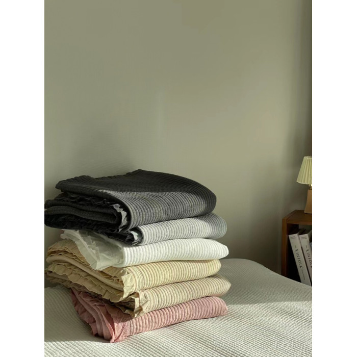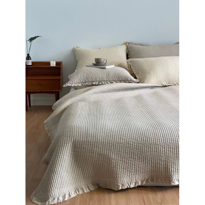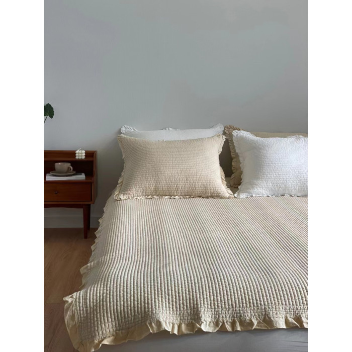 韓國ins純棉絎縫加厚床單 式奶油黃床蓋兩用百搭柔軟 枕套簡約A42