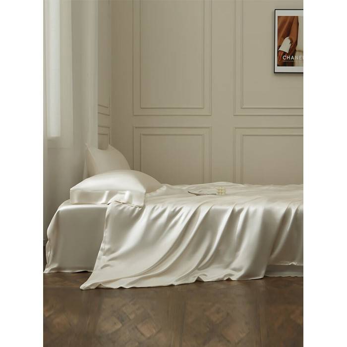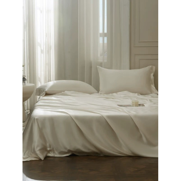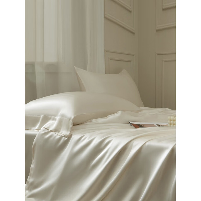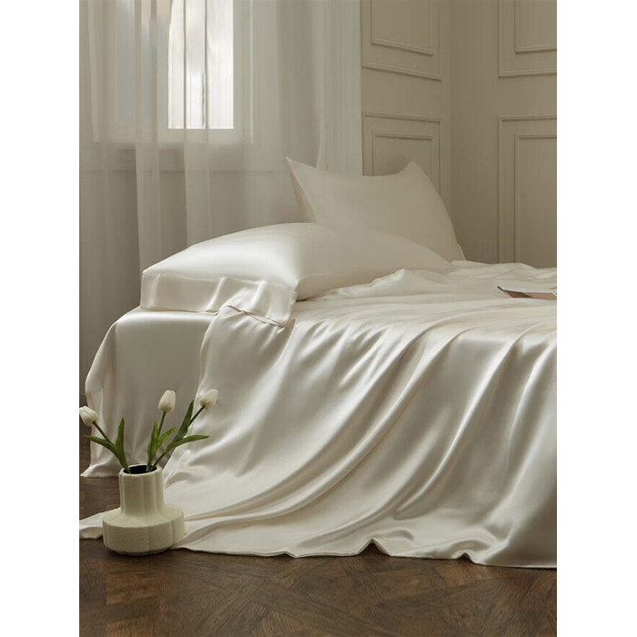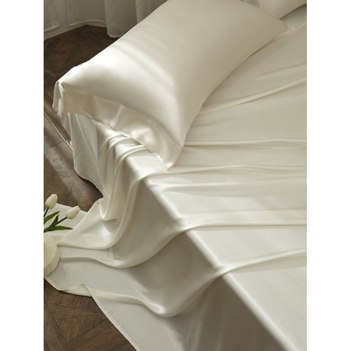 極簡風奶油白水洗真絲床單單件絲滑裸睡輕奢高級感天絲枕套三件套