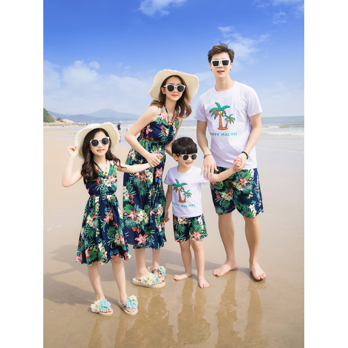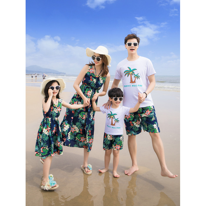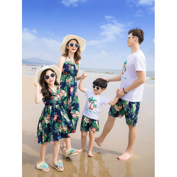 三亞旅遊沙灘親子裝夏裝波西米亞母女連衣裙長裙一家三口四口套裝