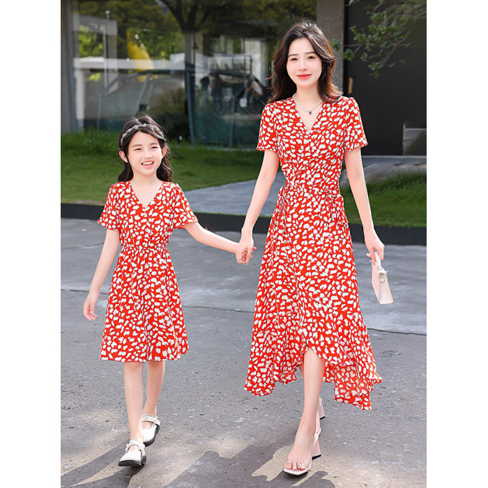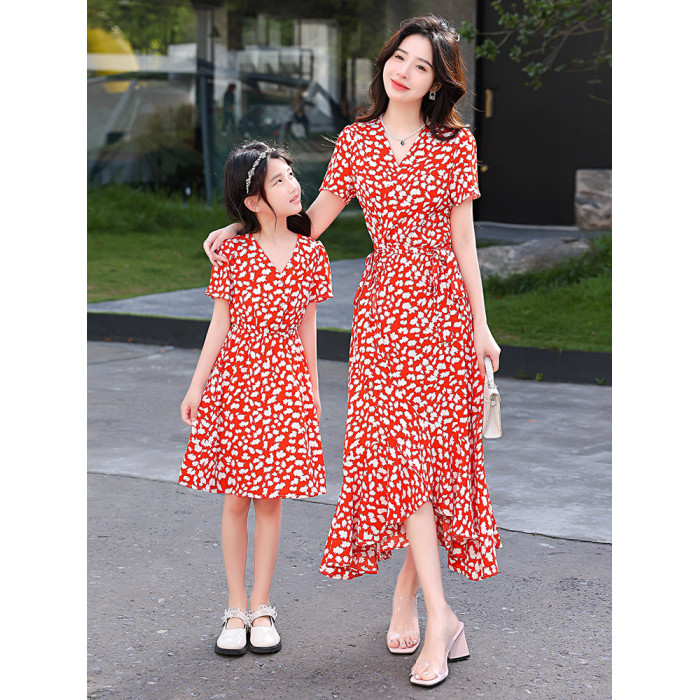 母女裝雪紡沙灘裙2025夏季新款親子裝韓版度假風夏裝碎花連衣裙潮