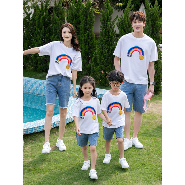 親子裝夏一家三口四口2025新款潮母女裝t恤套裝夏季高級洋氣母子