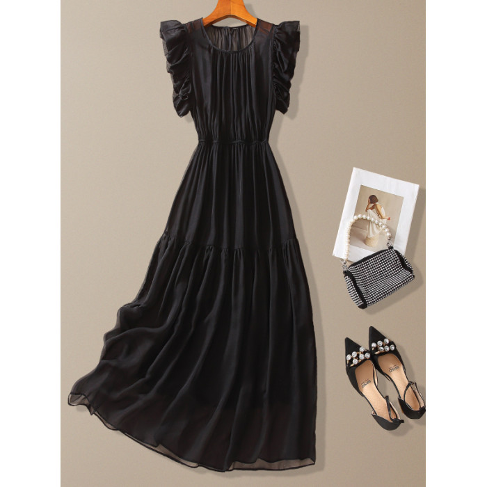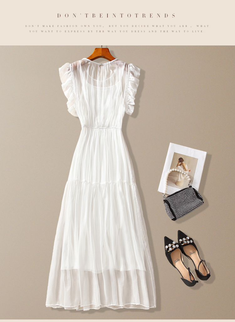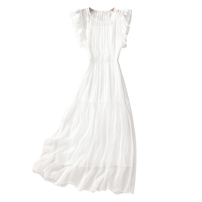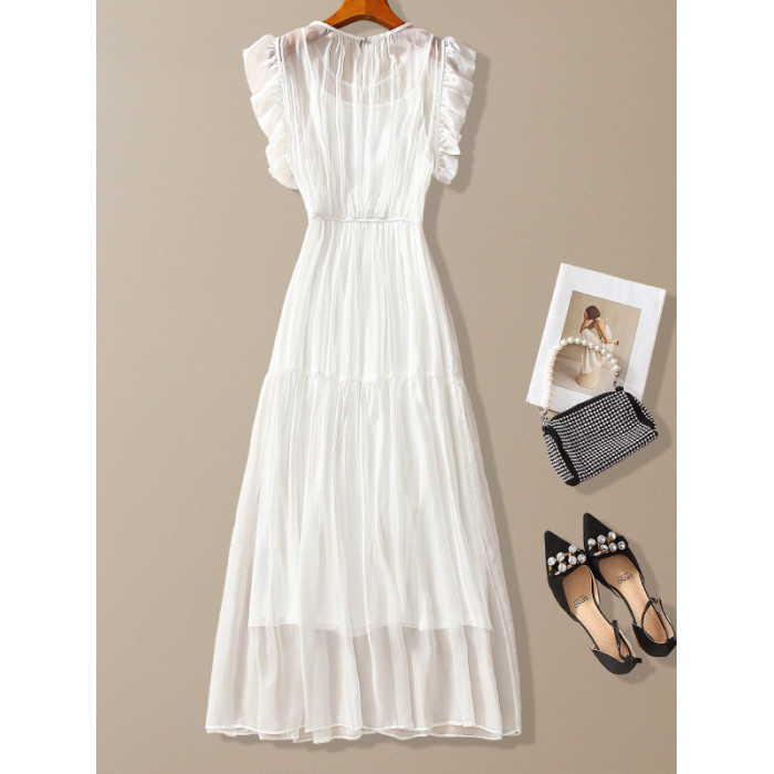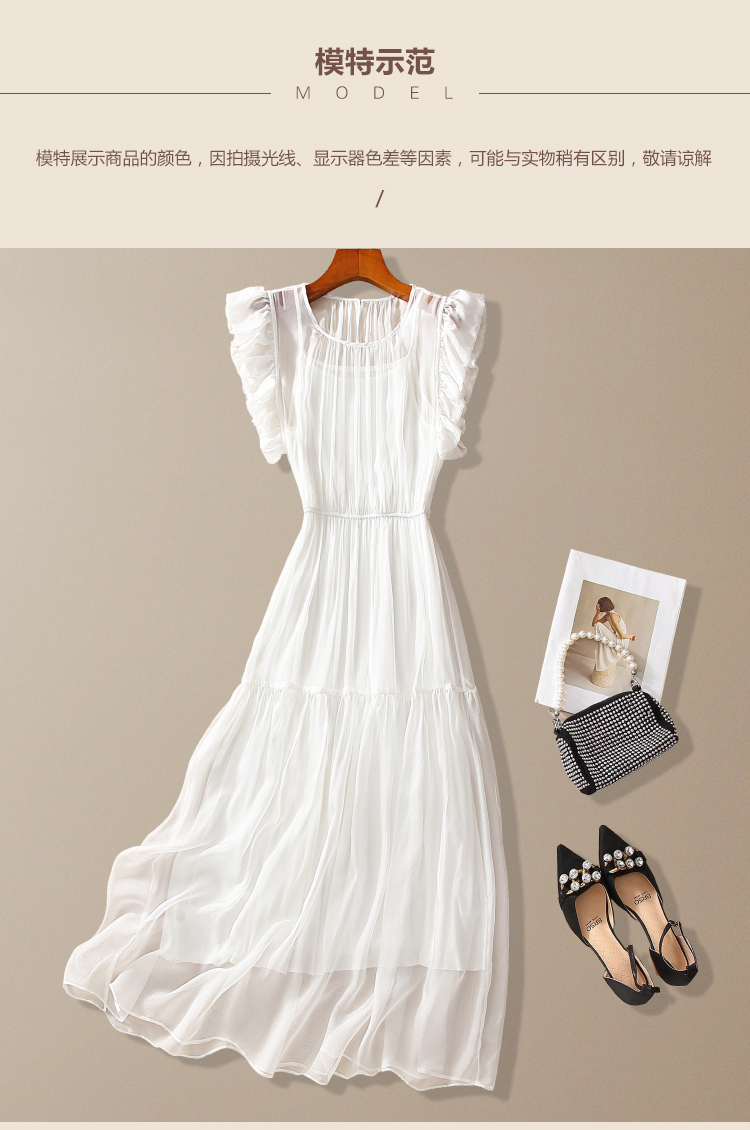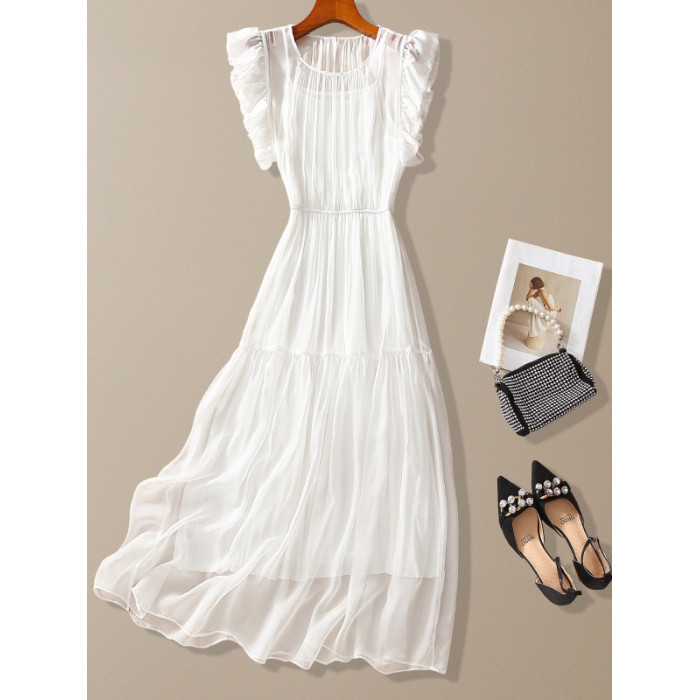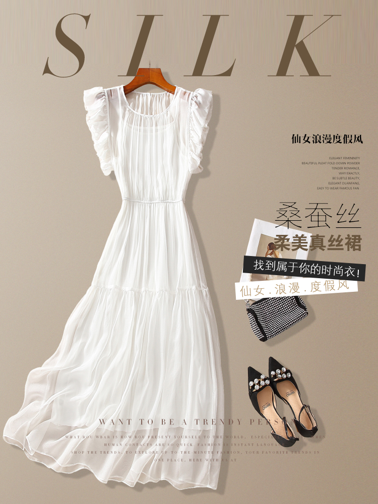 年輕款真絲連衣裙法式小衆設計感2025夏季海邊掐腰顯瘦白色長裙