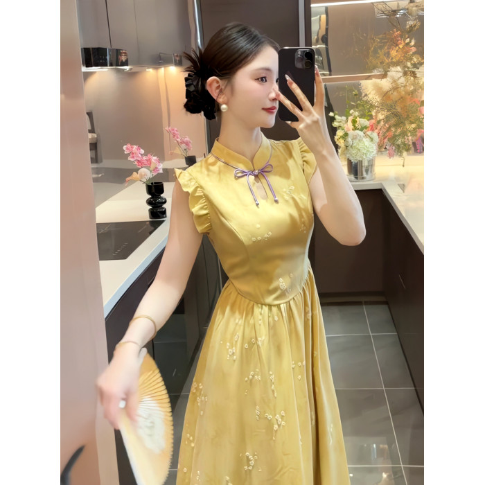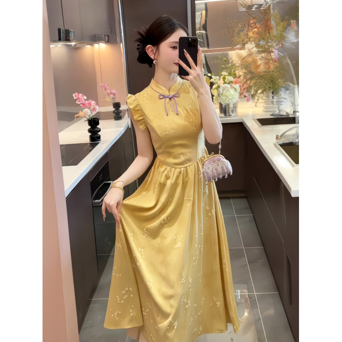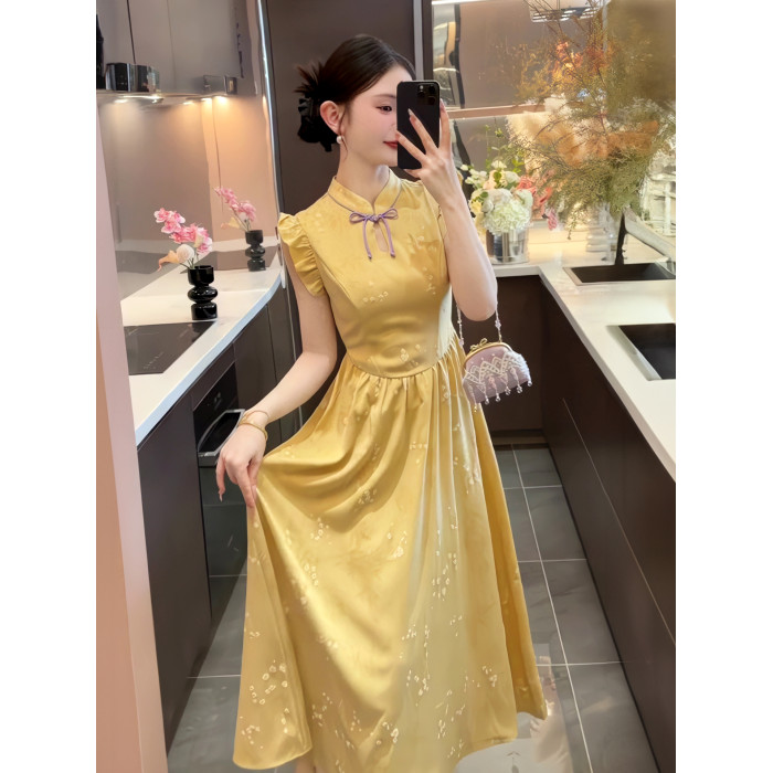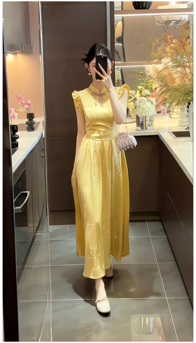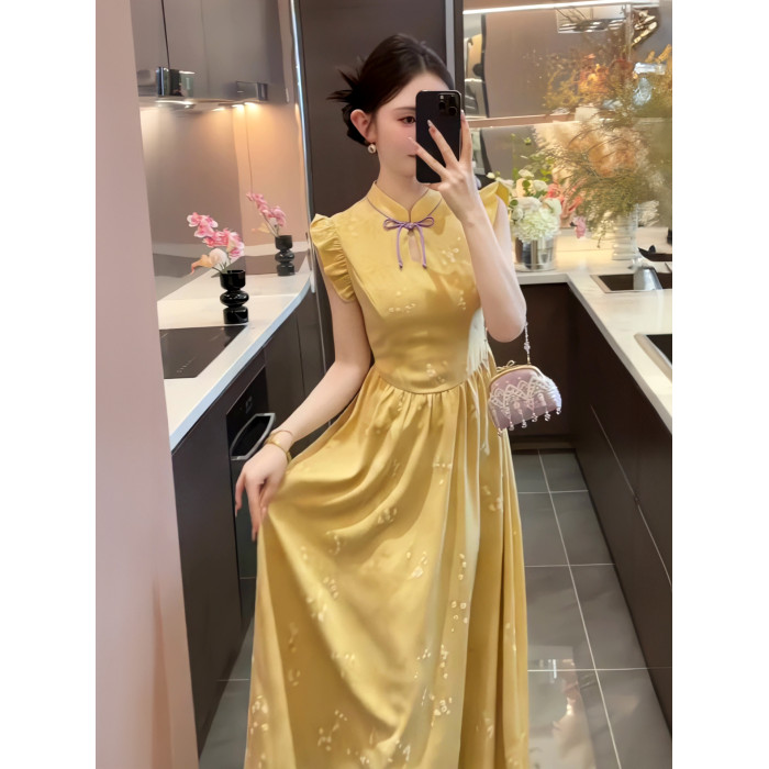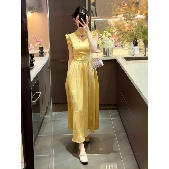 新中式國風長裙夏季新款收腰顯瘦高級感提花改良旗袍無袖連衣裙女