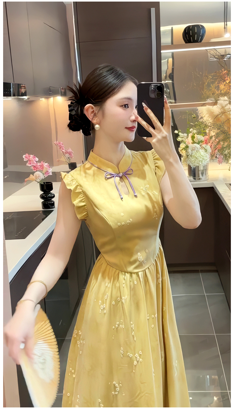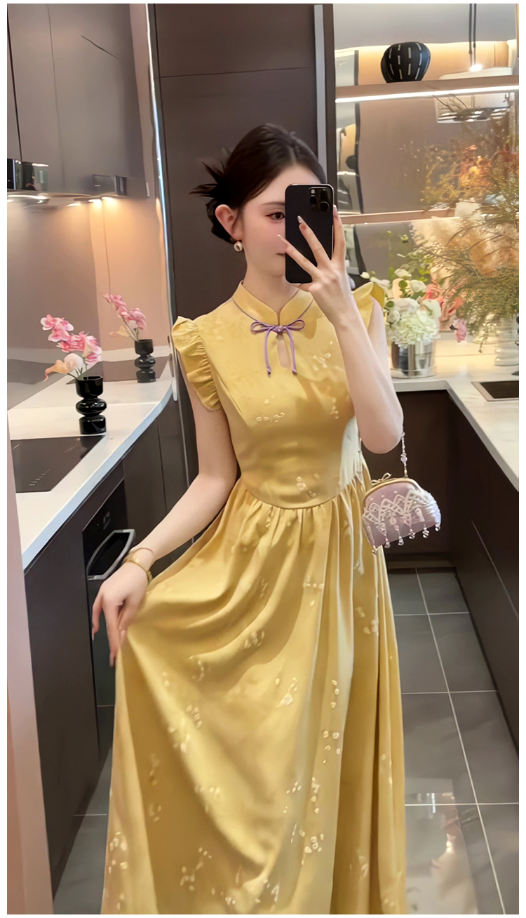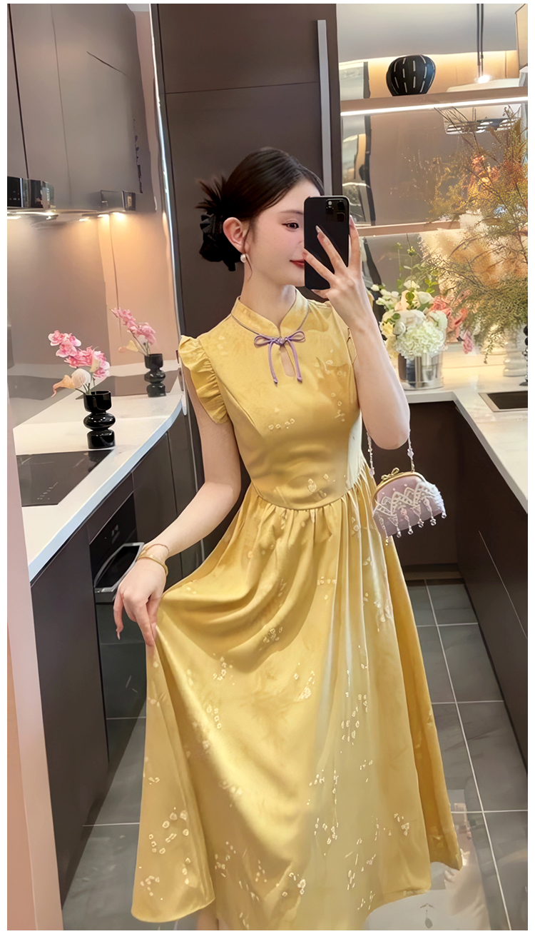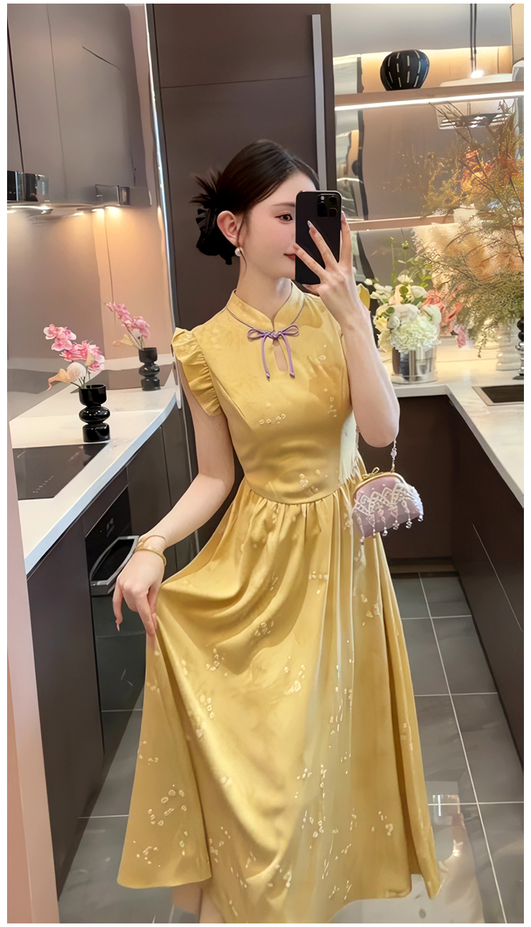 新中式國風長裙夏季新款收腰顯瘦高級感提花改良旗袍無袖連衣裙女