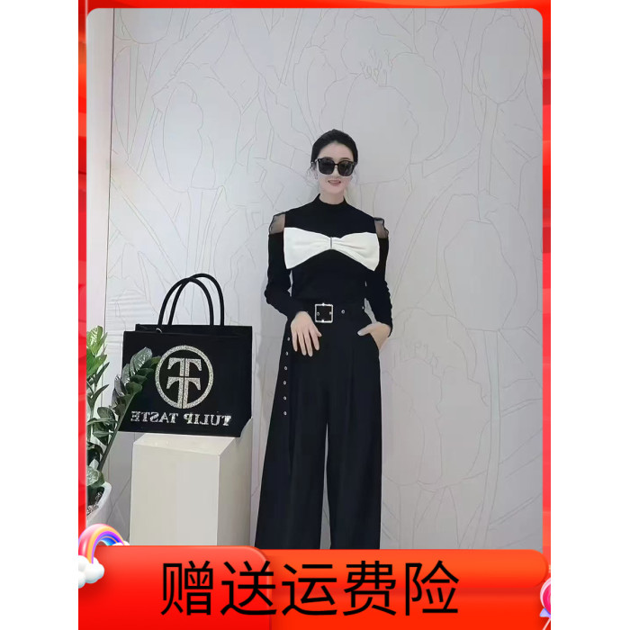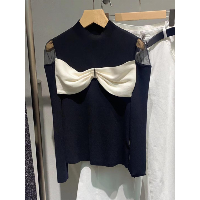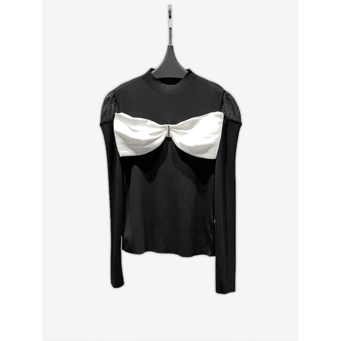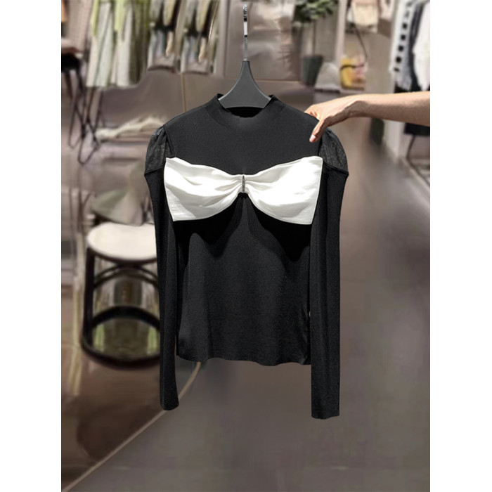 黑色蝴蝶結露肩法式上衣女2025春新款氣質高級感針織衫長袖打底衫