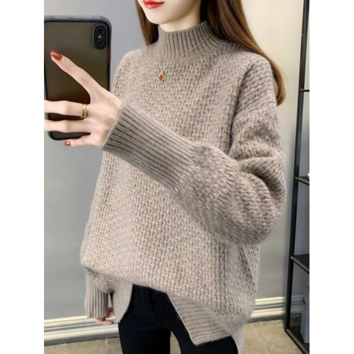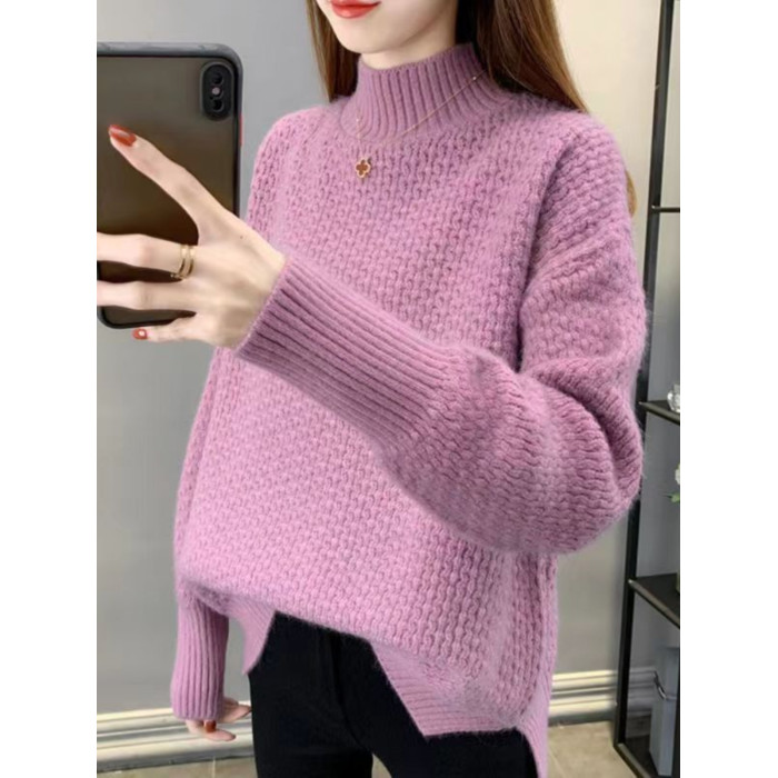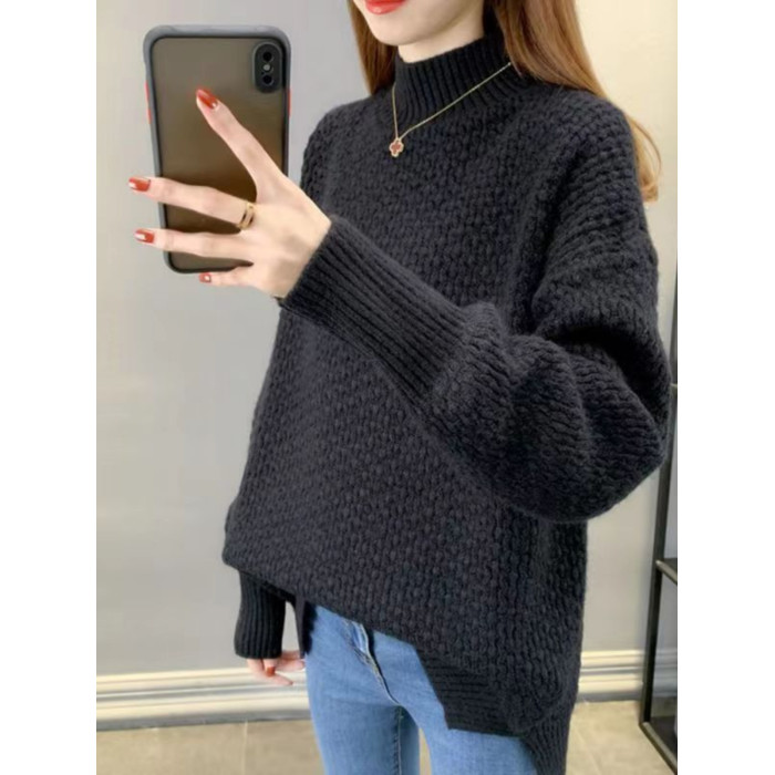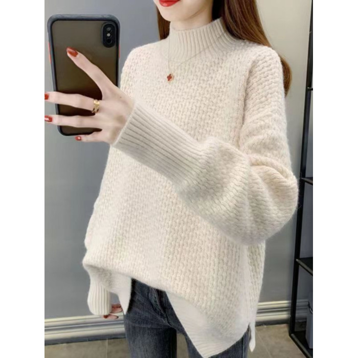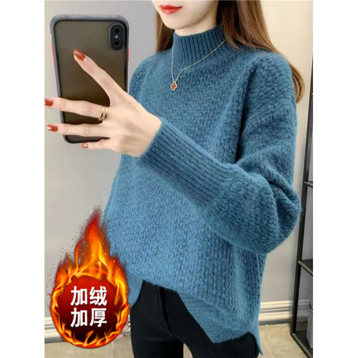 半高領毛衣女秋冬針織衫高中初中學生大童加絨加厚13嵗女孩打底衫