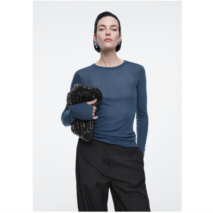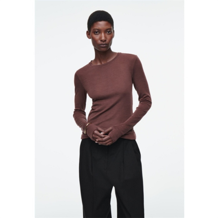 原單折釦女裝 修身版型長袖指孔羊毛打底衫薄內搭上衣0989043031