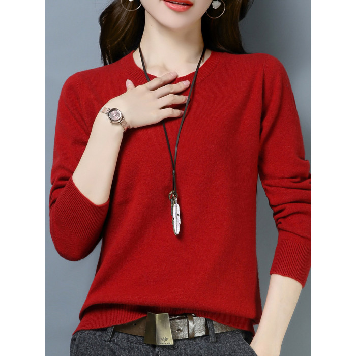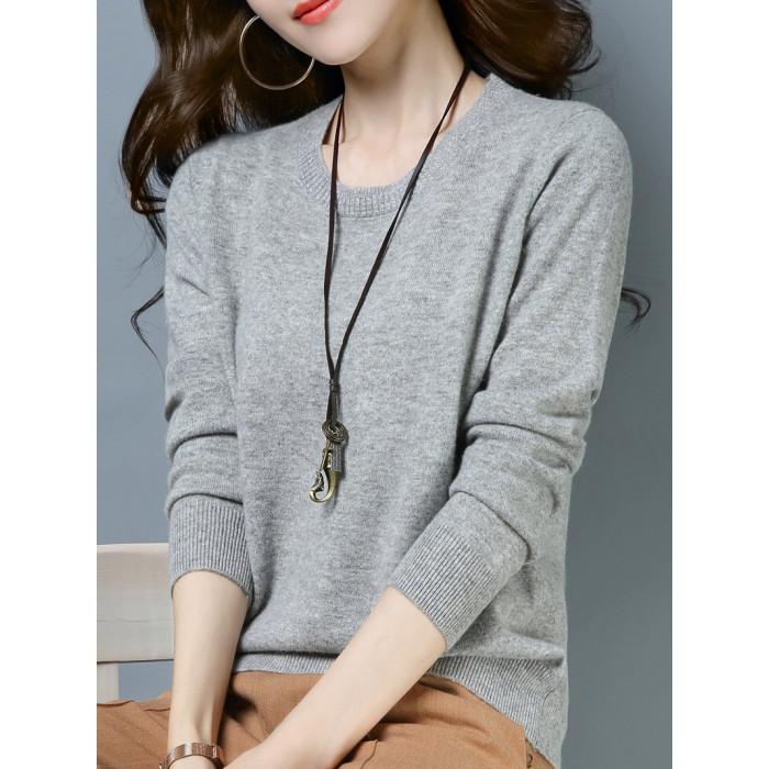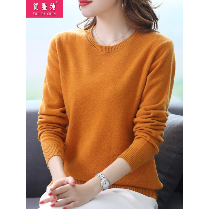 秋冬女士毛衣打底衫圓領內搭寬松羊絨針織上衣100 純羊毛衫女新款