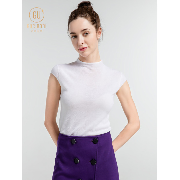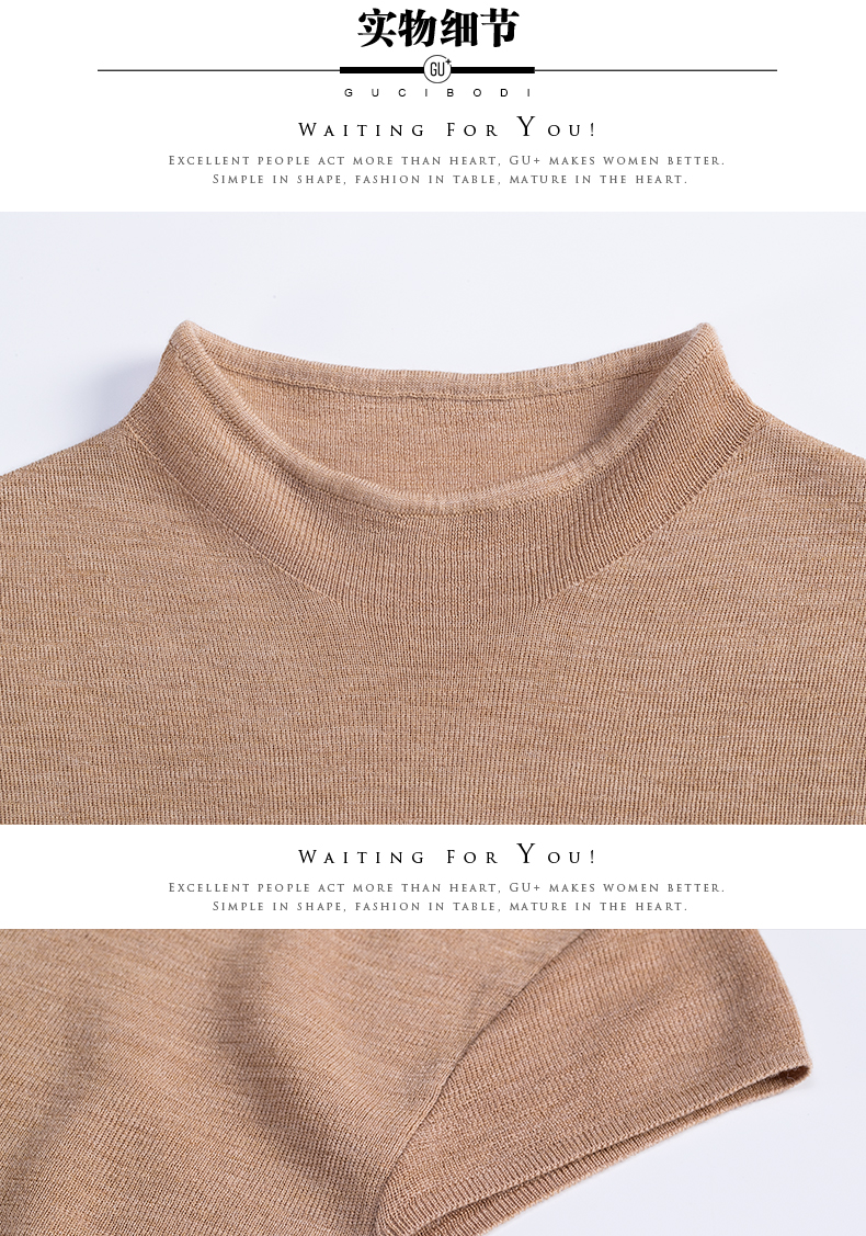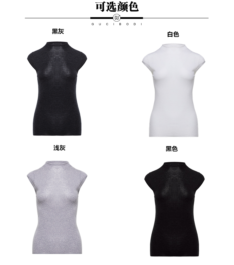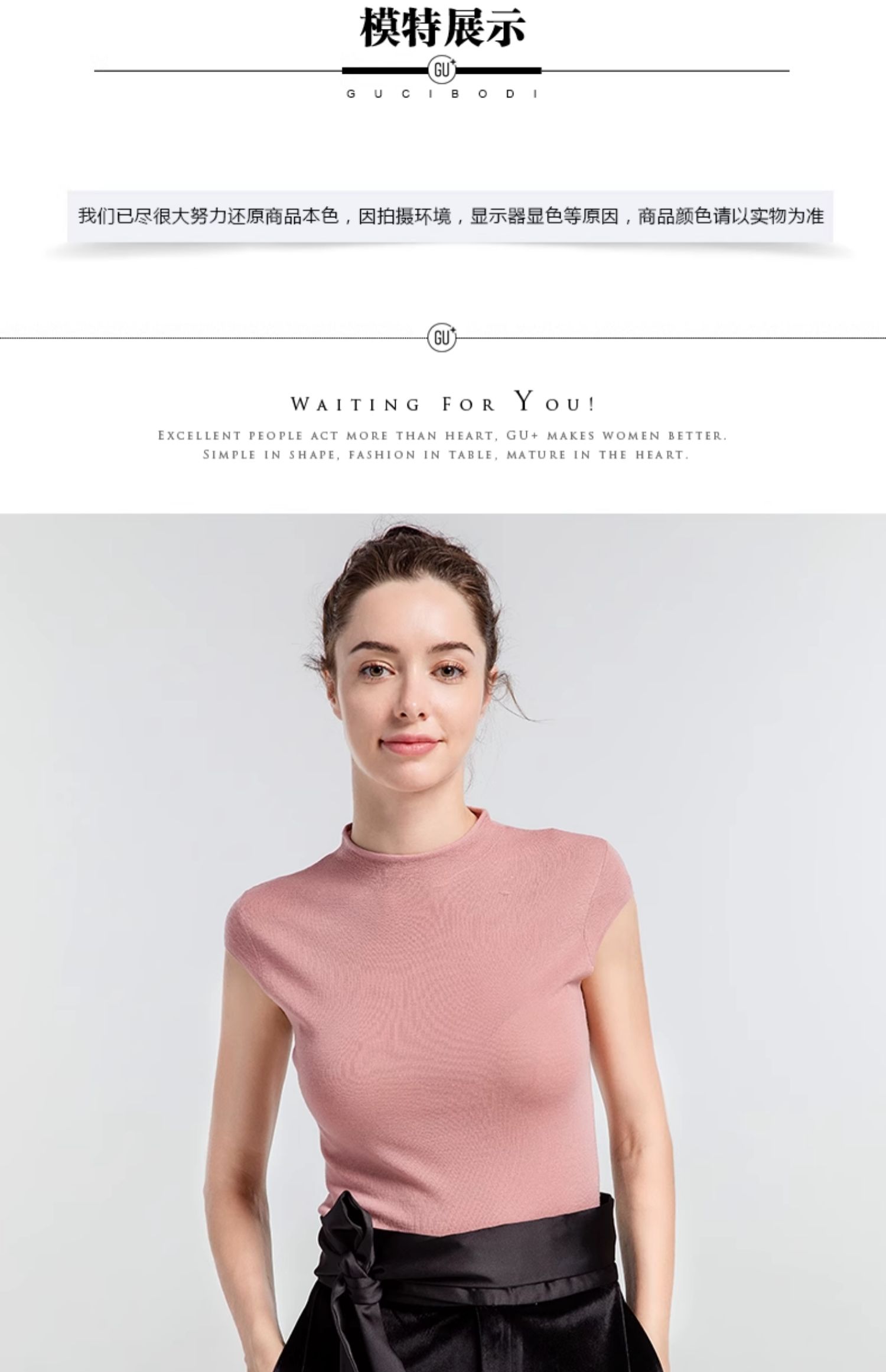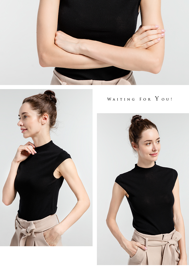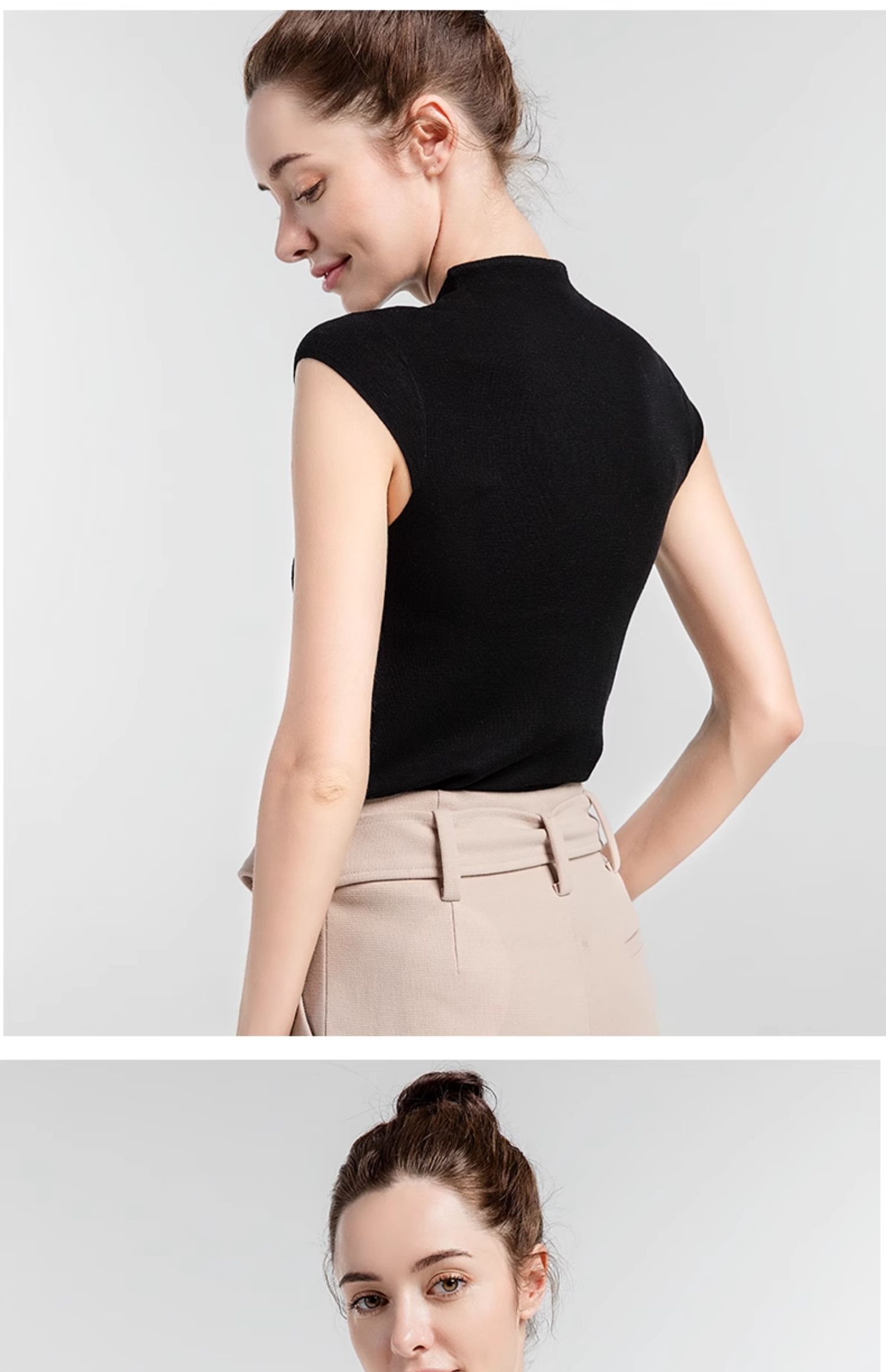 100羊毛針織衫女半高領短袖修身顯瘦純色打底衫春秋新款上衣內搭