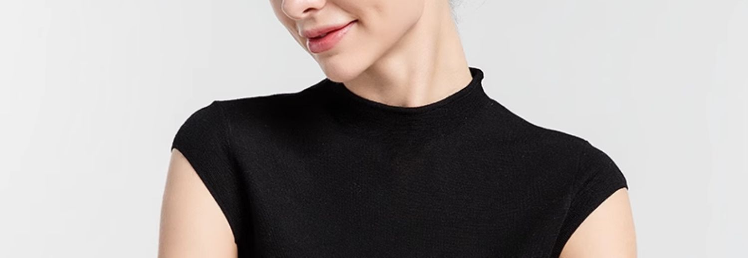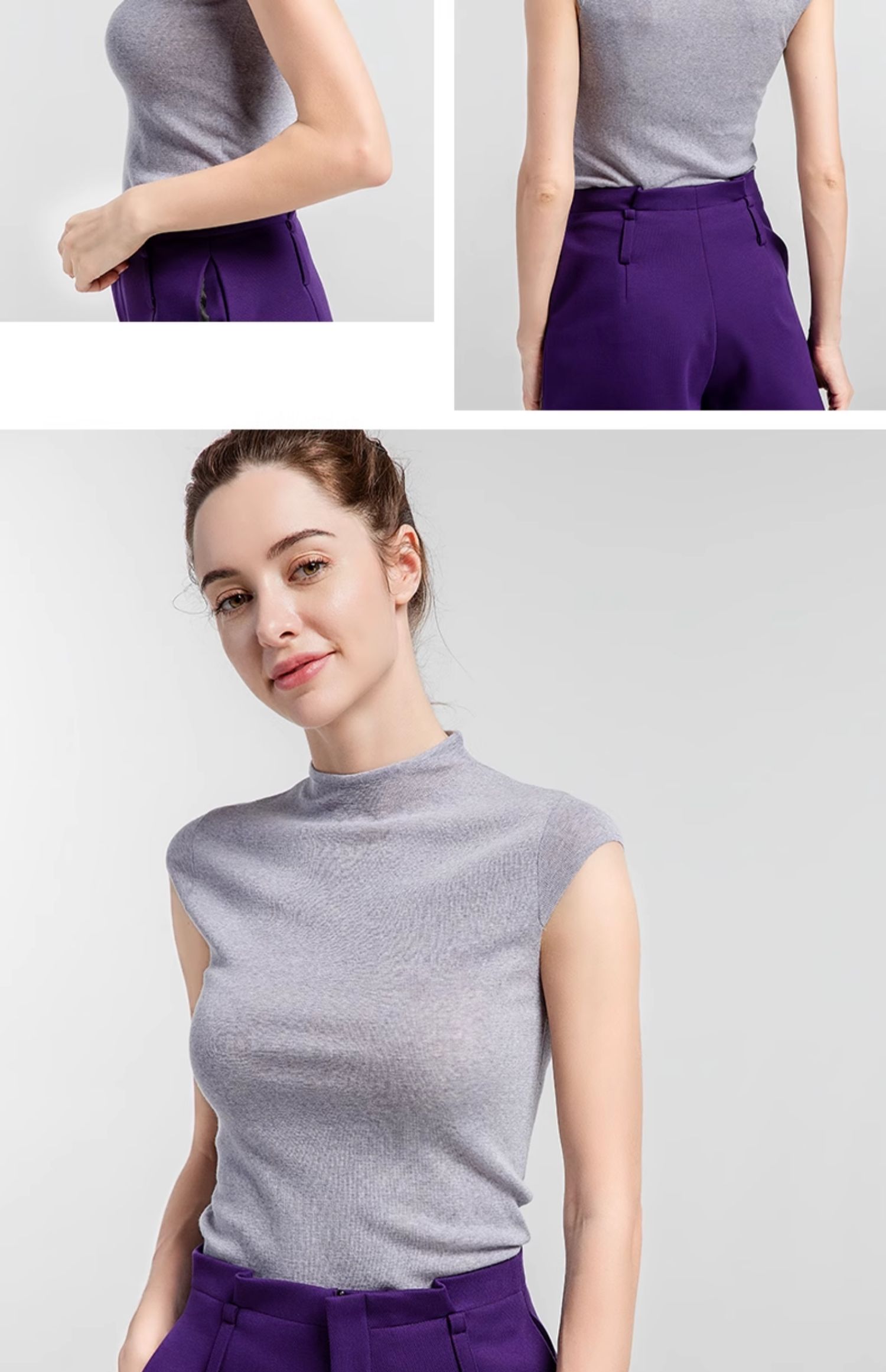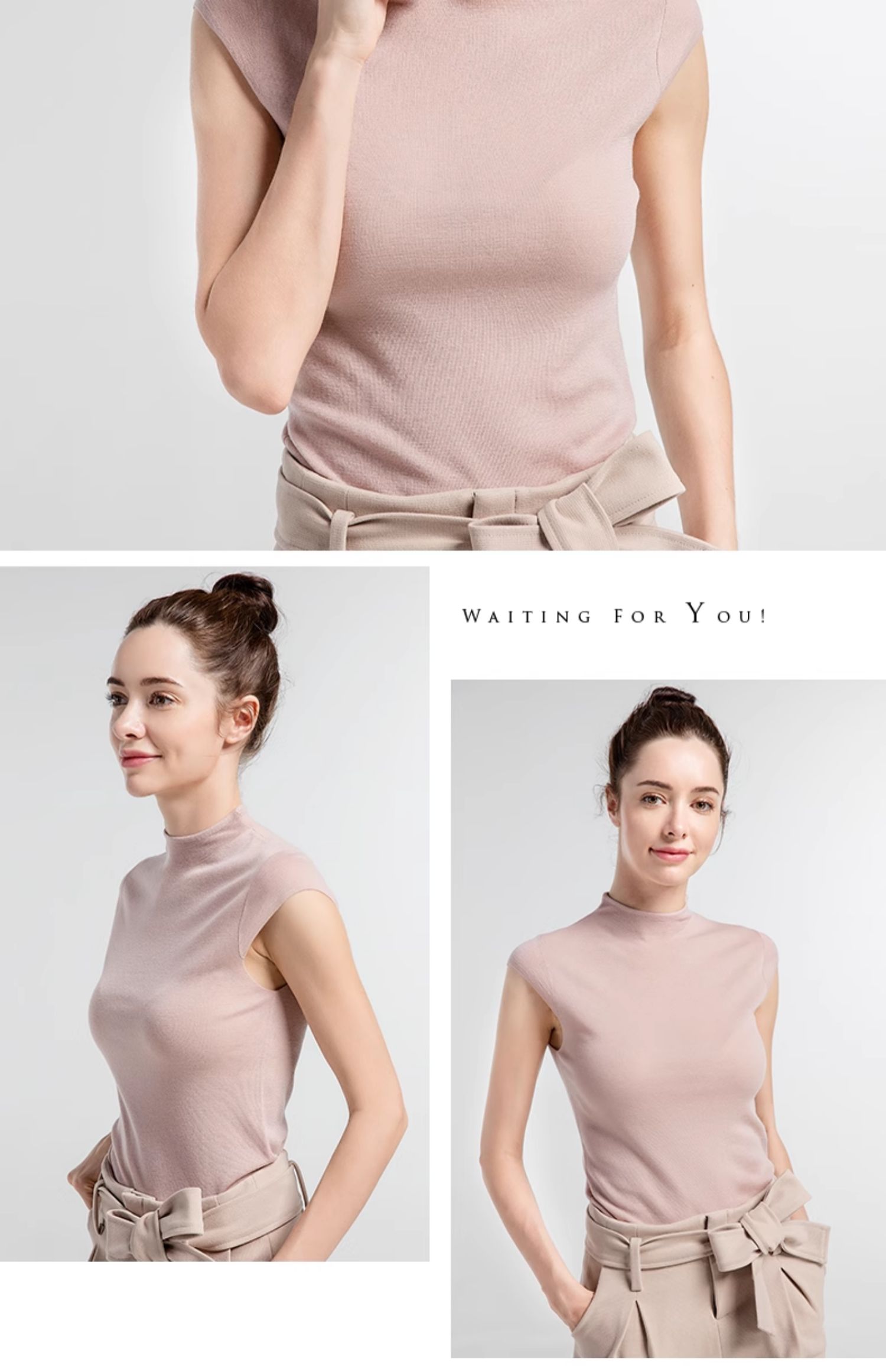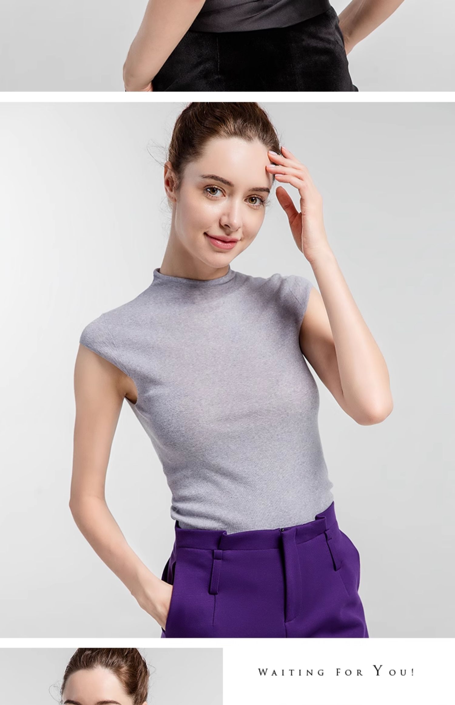 100羊毛針織衫女半高領短袖修身顯瘦純色打底衫春秋新款上衣內搭