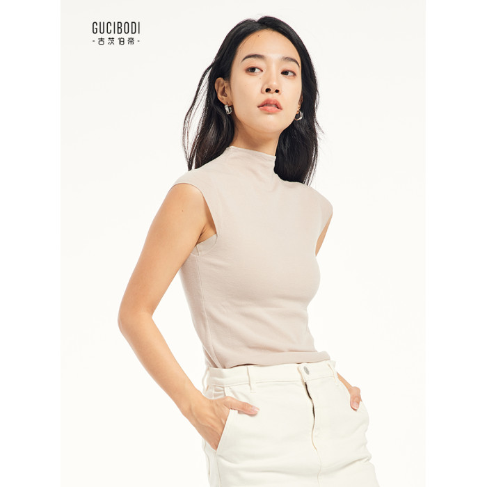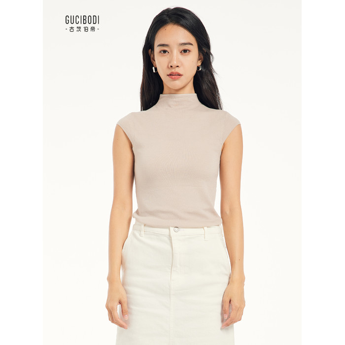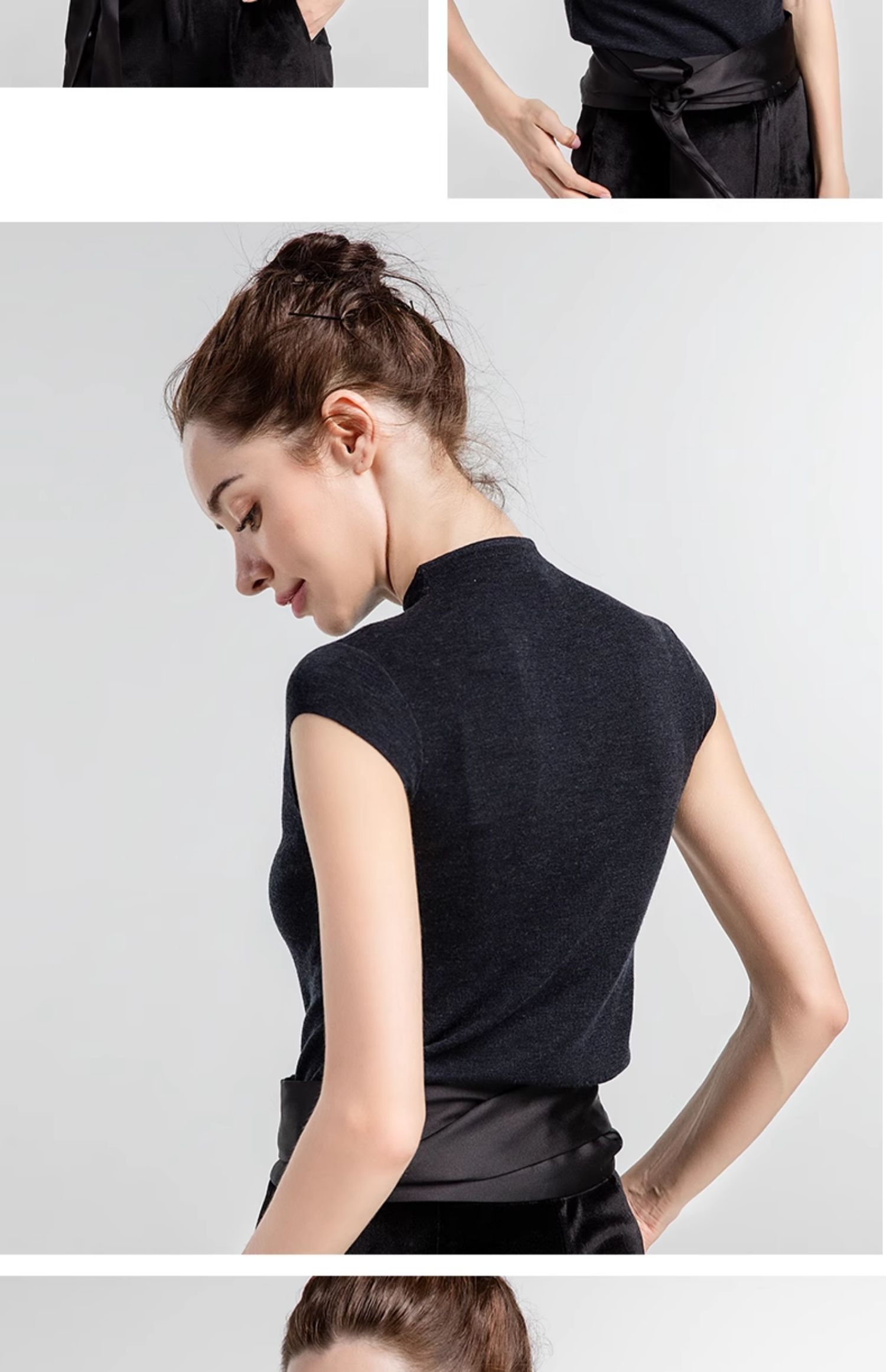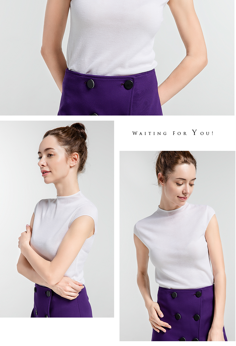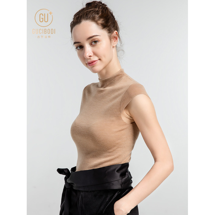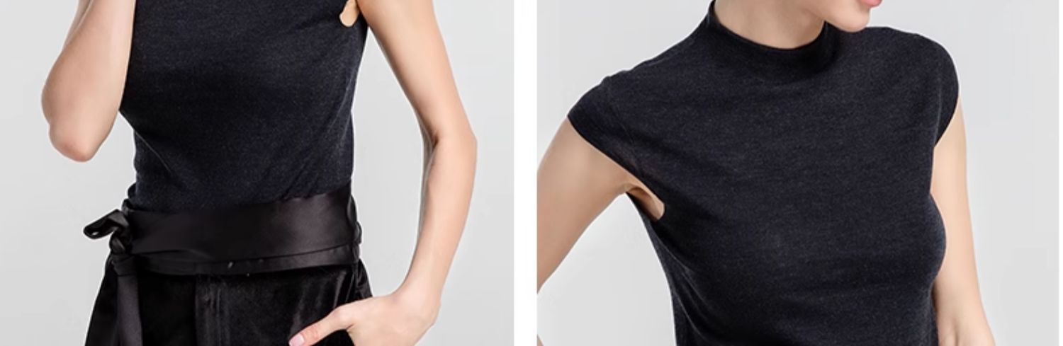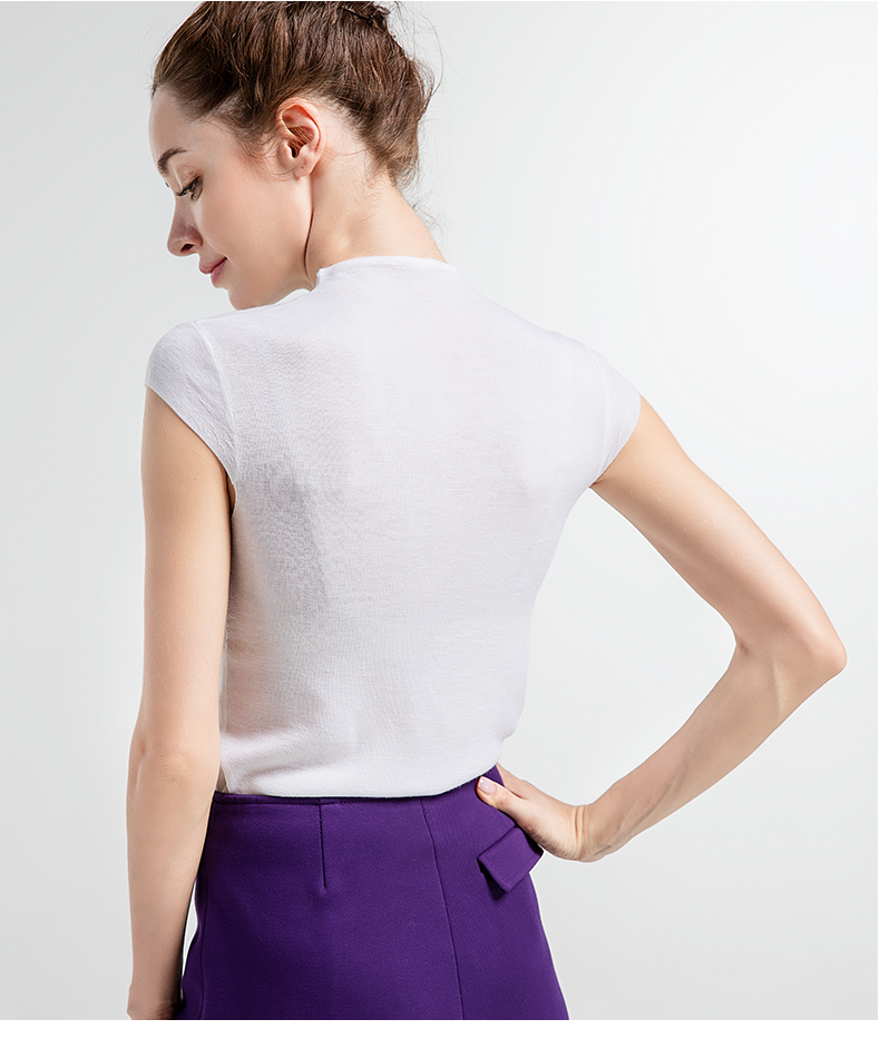 100羊毛針織衫女半高領短袖修身顯瘦純色打底衫春秋新款上衣內搭