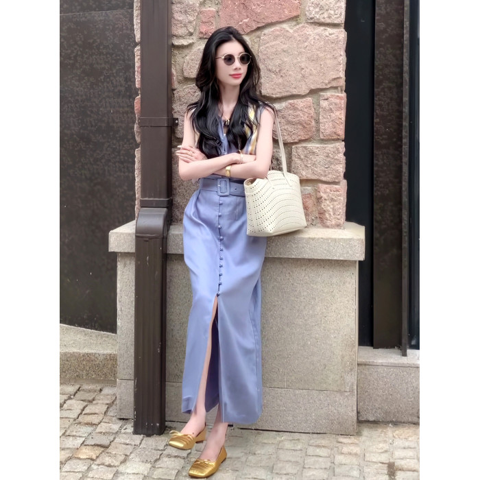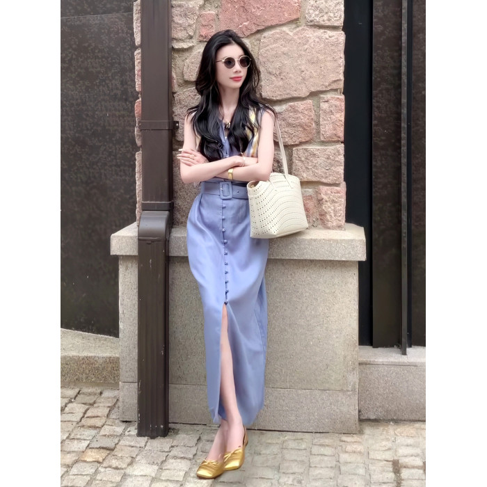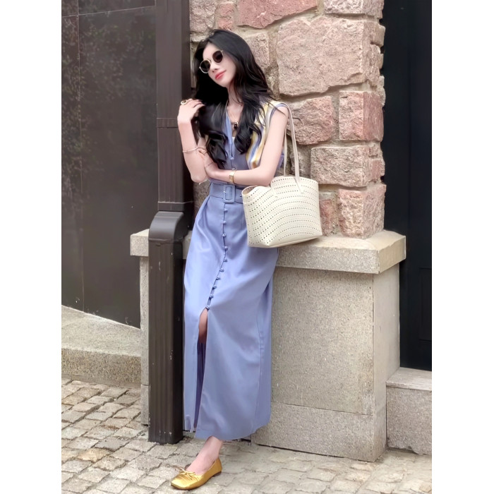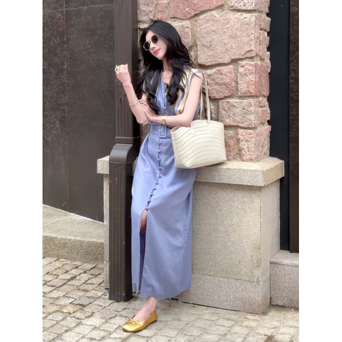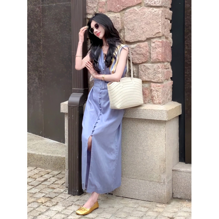 2025極簡靜奢(女主角)隨性不失優雅設計師款棉麻高級坎肩連衣裙