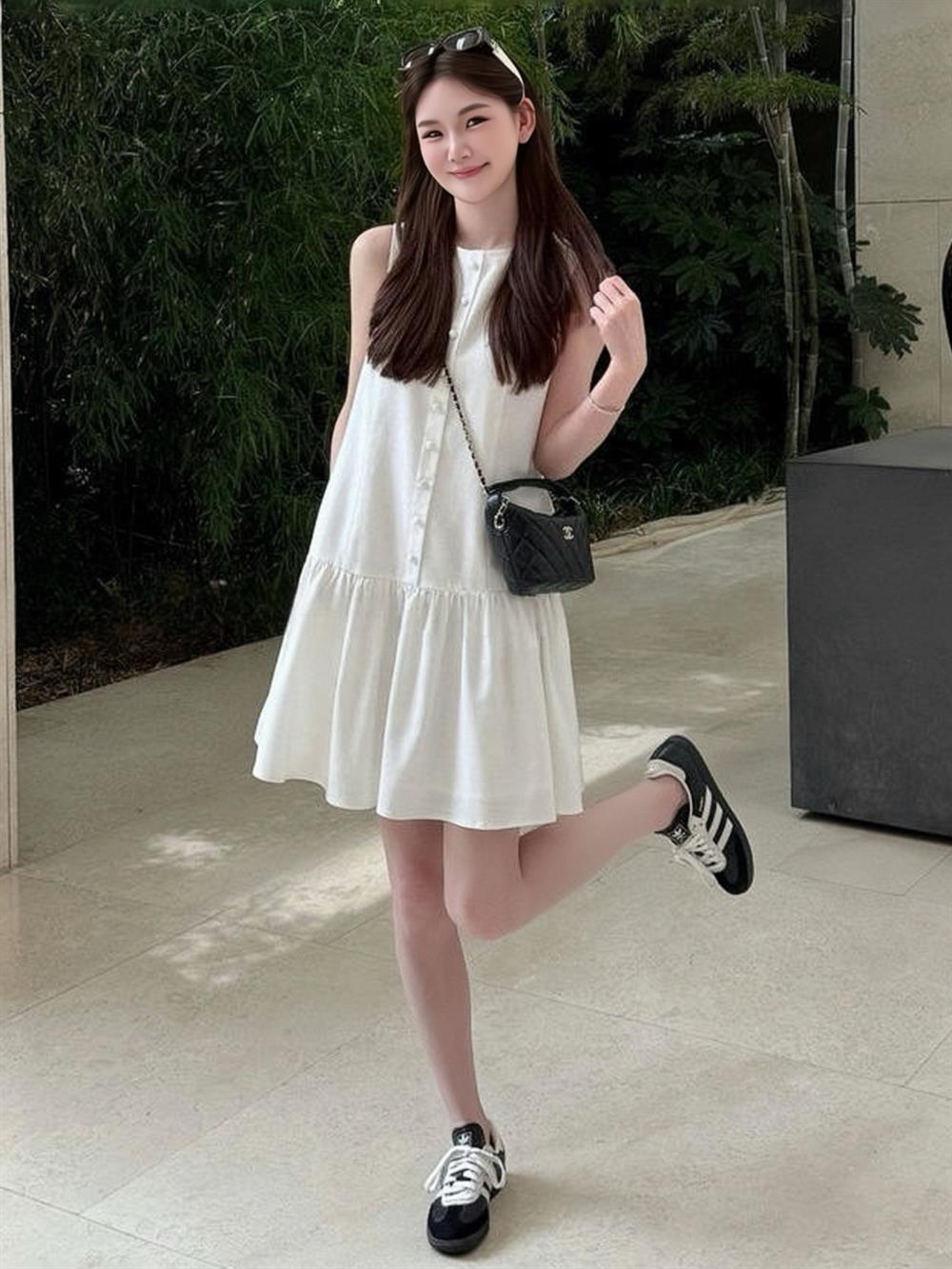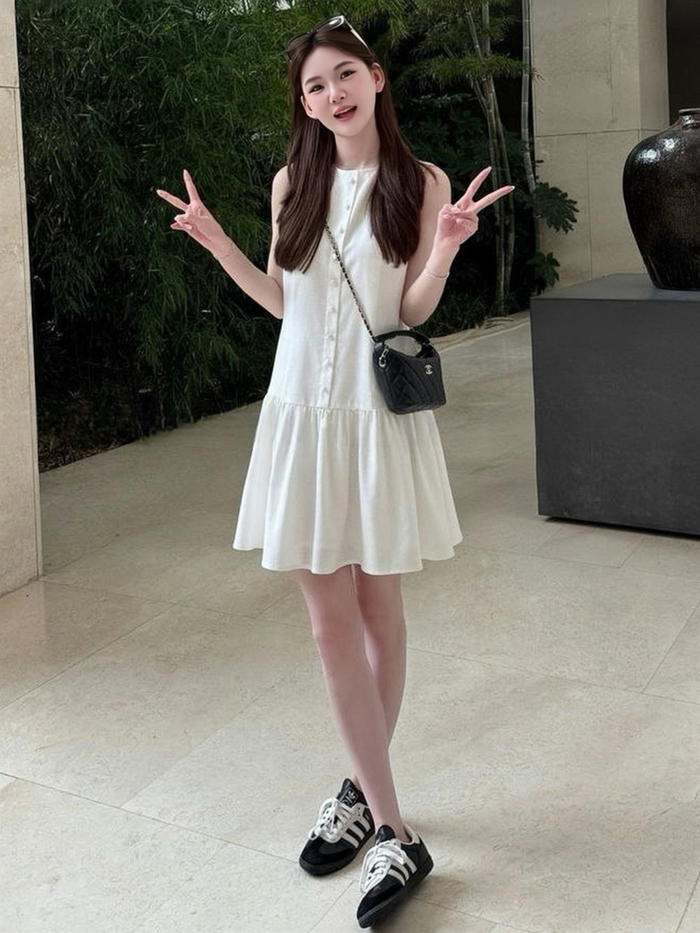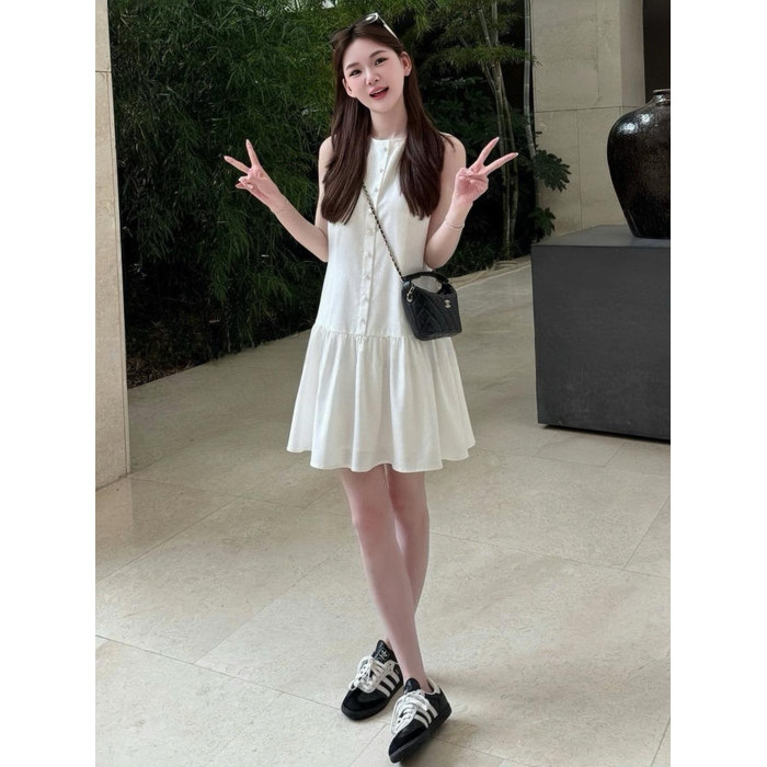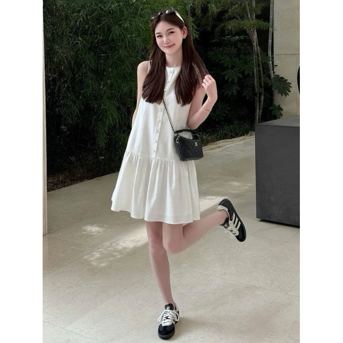 今年流行的漂亮無袖背心連衣裙女夏天巨好看小香風氣質減齡短裙子