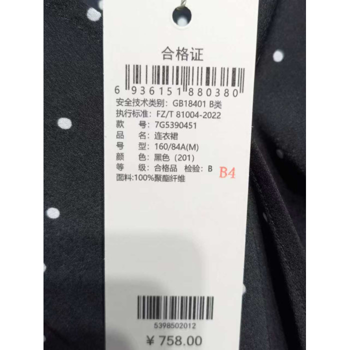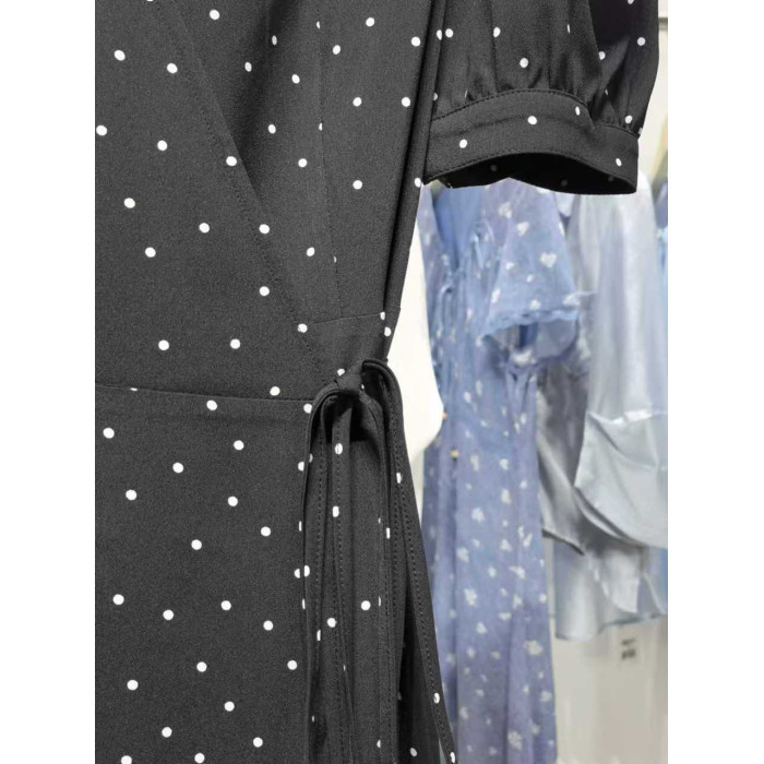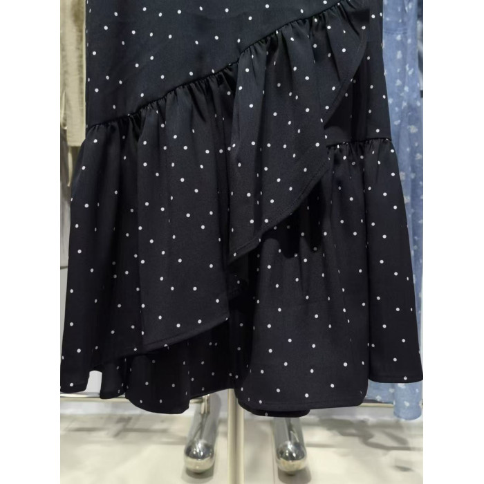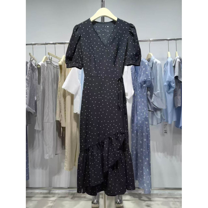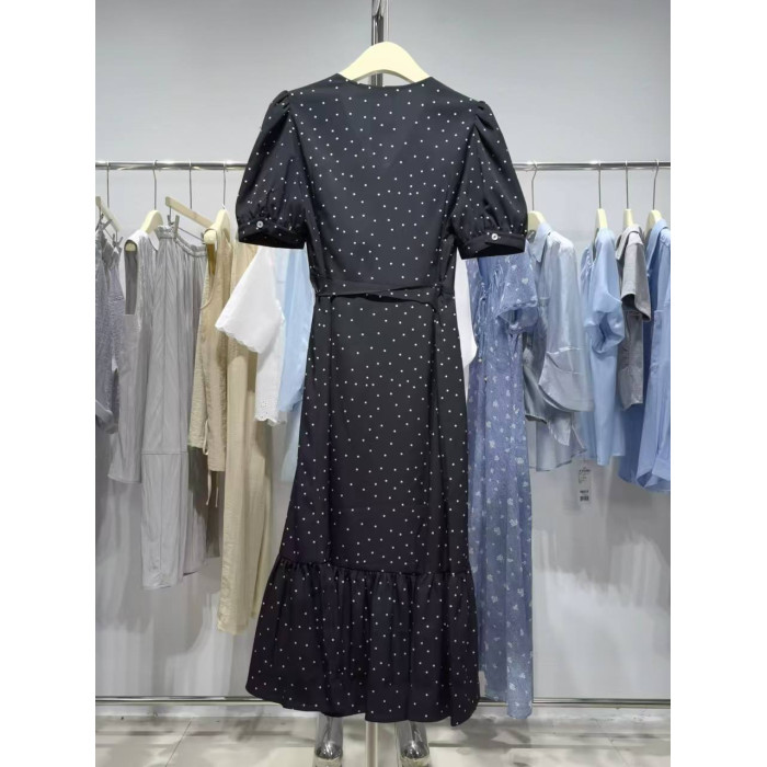 商場同款詩凡黎德瑪2025夏新款V領系帶泡泡袖波點連衣裙7G5390451