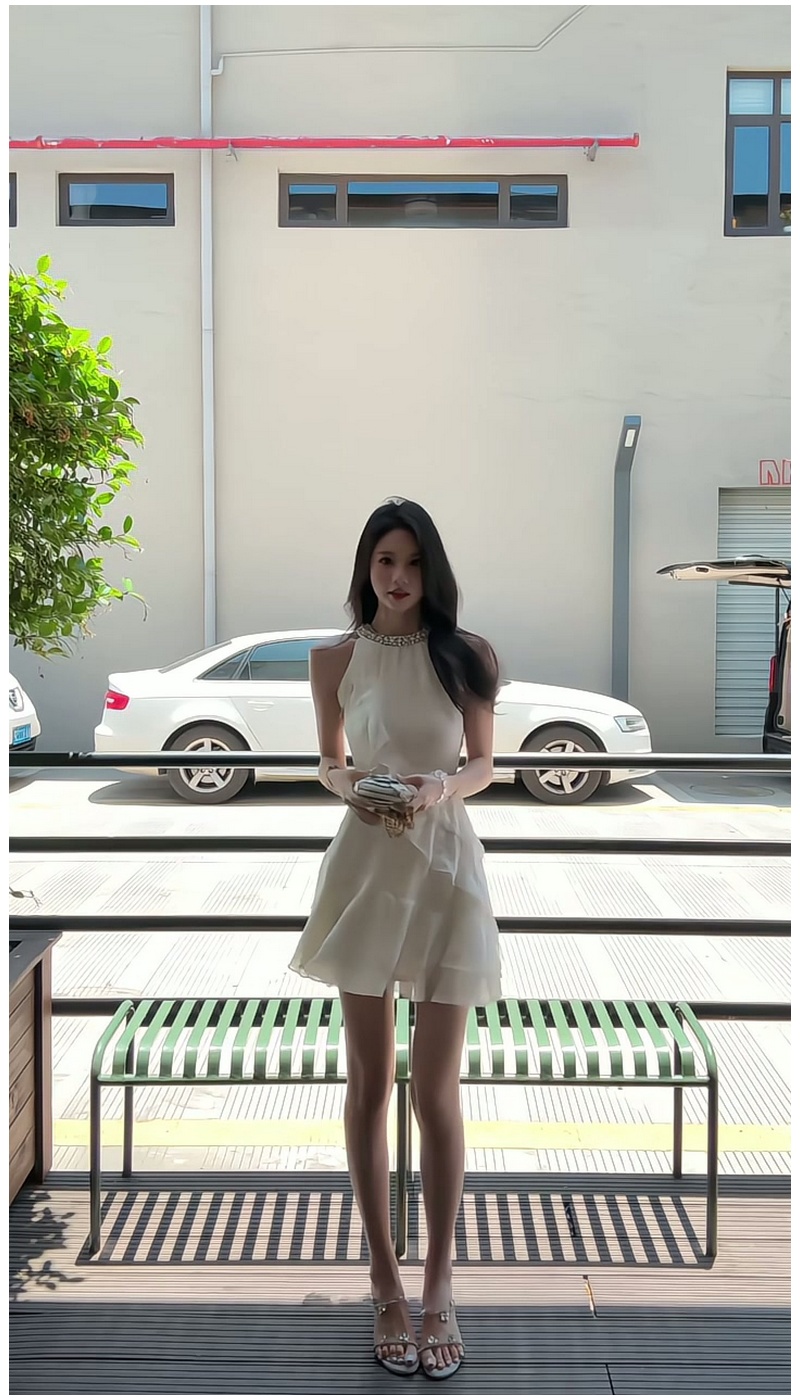 米白色連衣裙