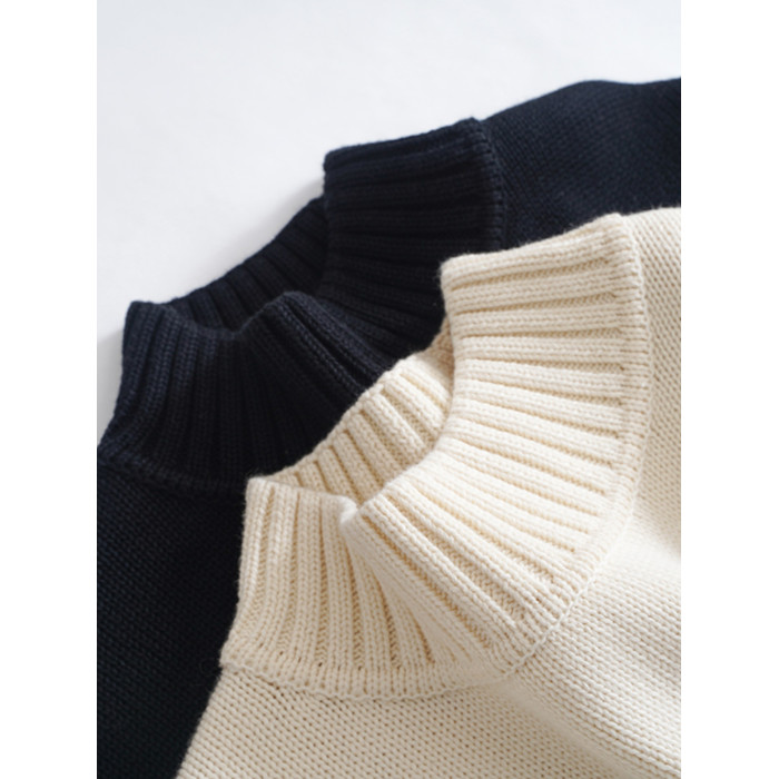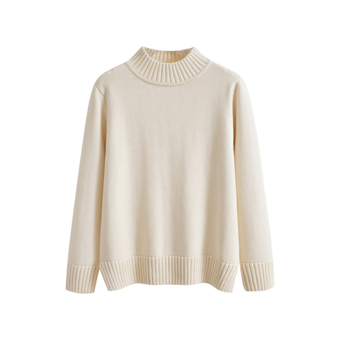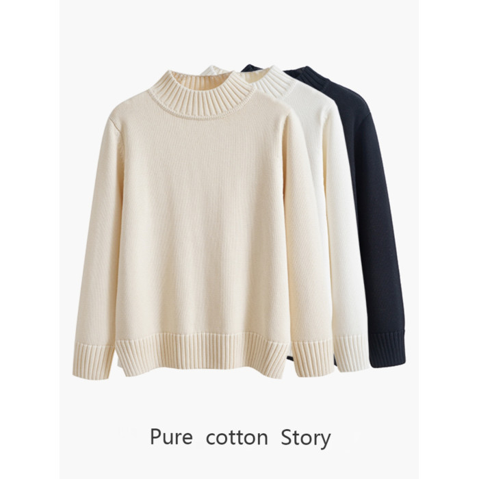 歐單好貨 100%棉 半高領毛衣女秋打底衫套頭針織衫單穿 寬松顯瘦