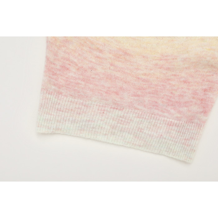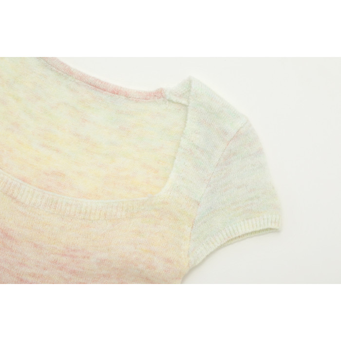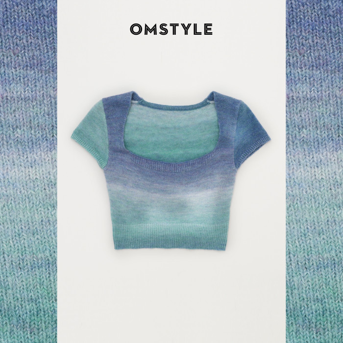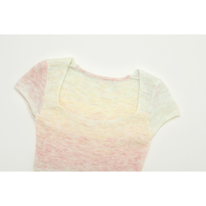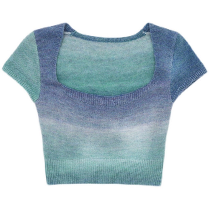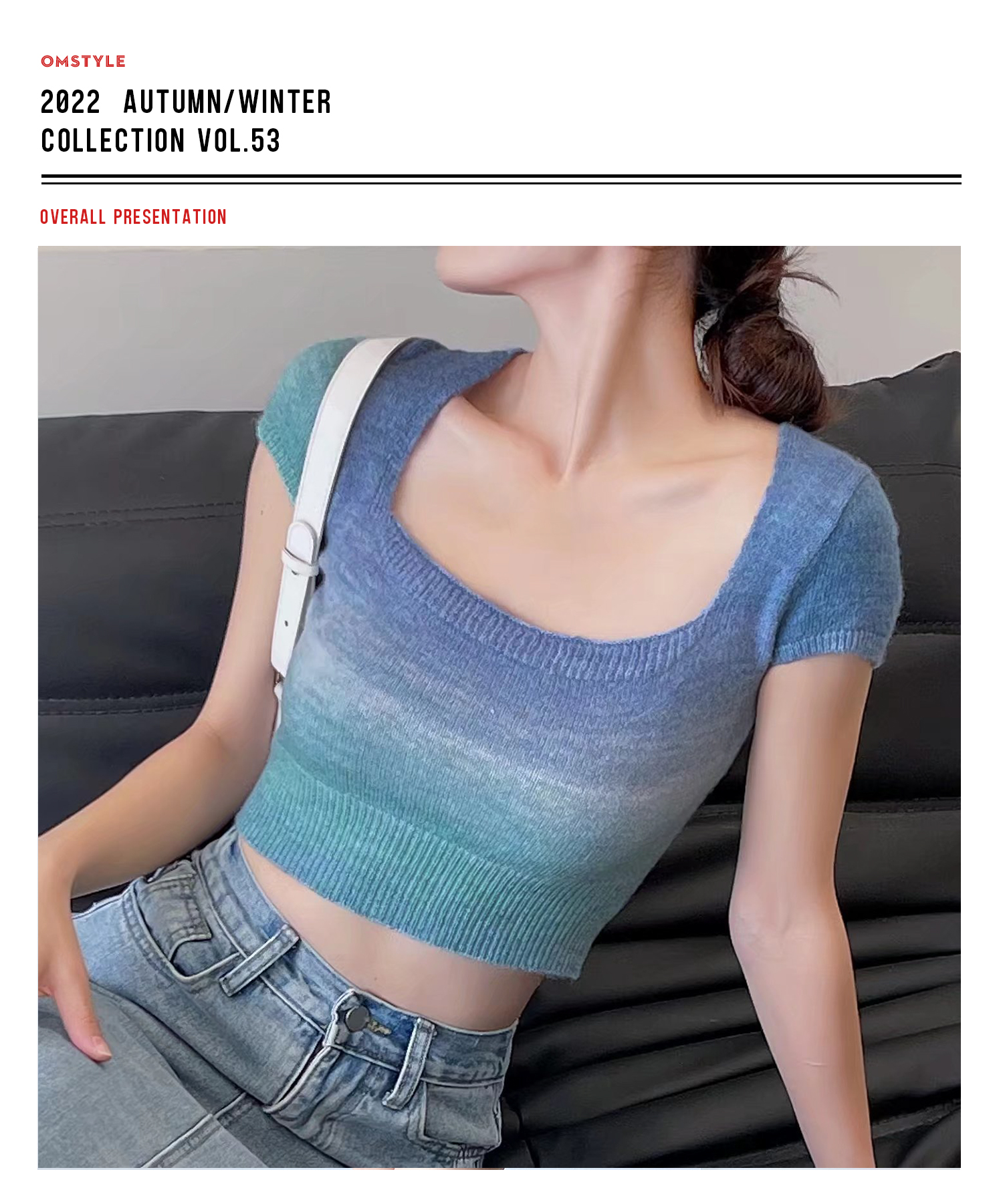 套頭低圓領漸變色短款高腰露臍修身顯瘦內搭短袖針織衫打底衫女夏