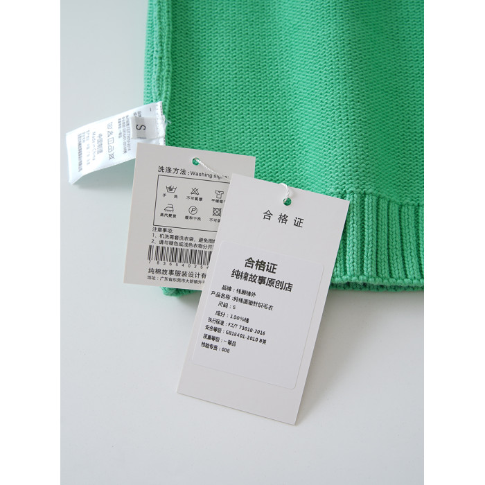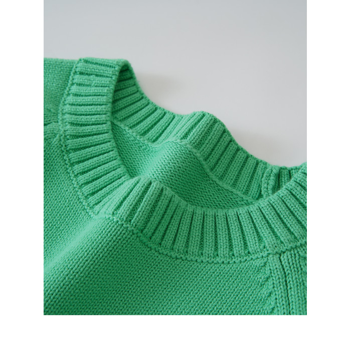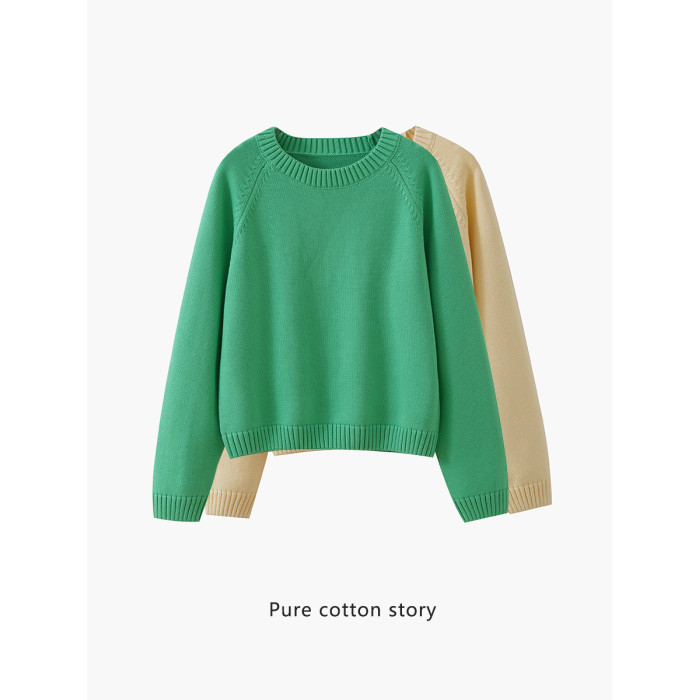粗線精紡 100%棉 短款圓領針織衫女士秋冬季毛衣打底衫寬松 厚款