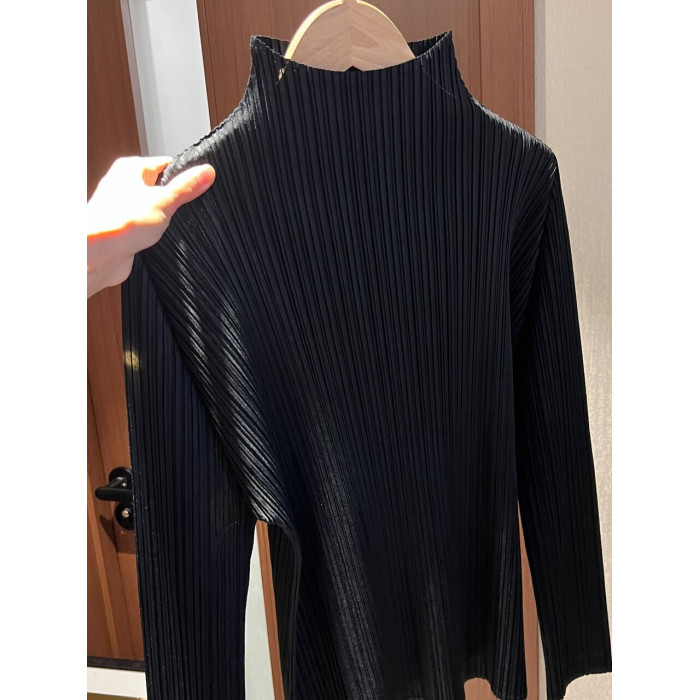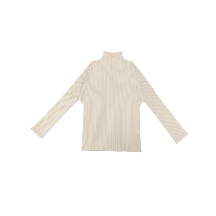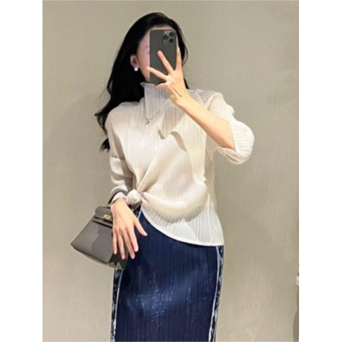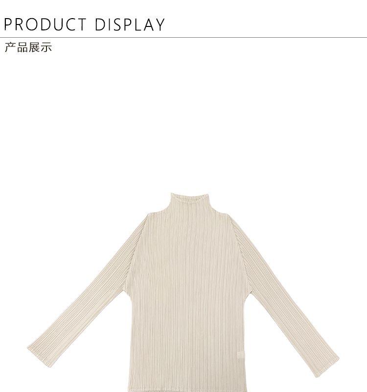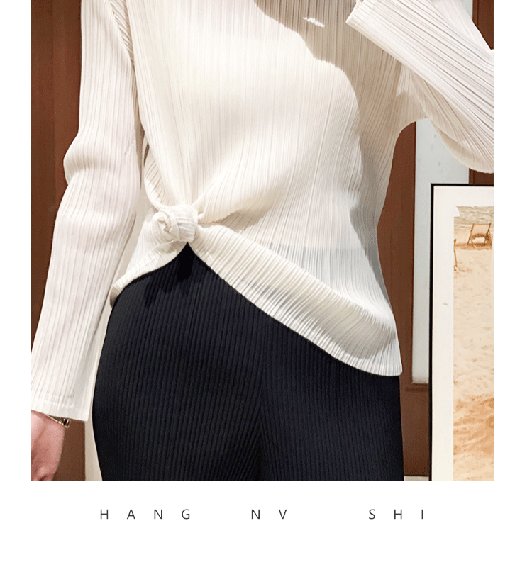 韓女士2025春秋褶皺上衣長袖半高領顯瘦休閒白色打底衫女