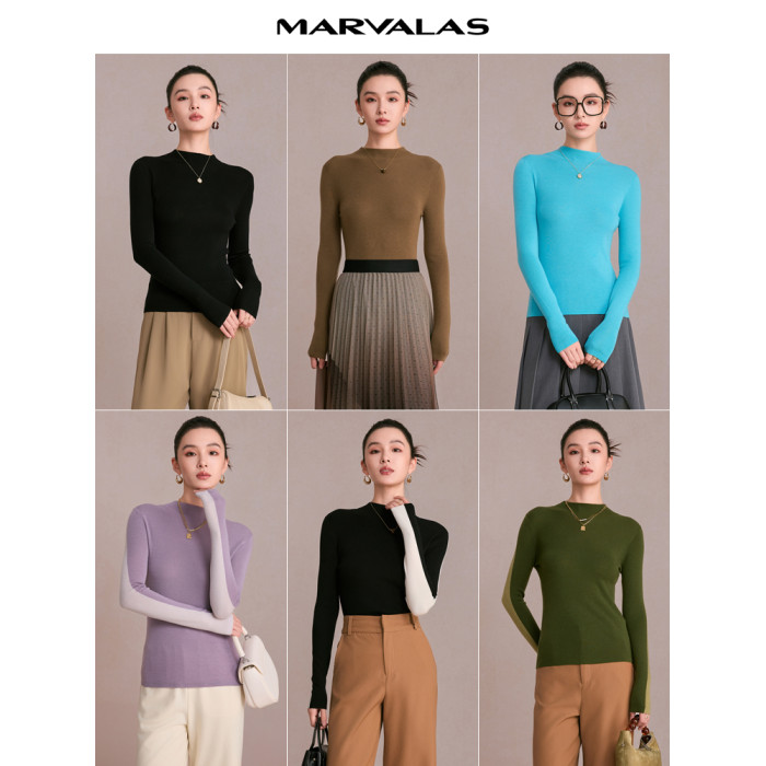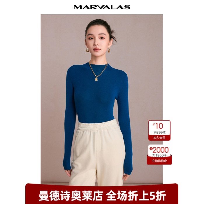 曼德詩半高圓領針織衫女2025冬季新款雙面穿羊毛衫柔軟打底衫上衣