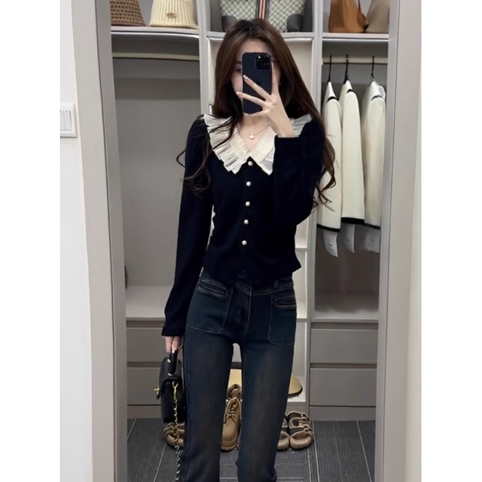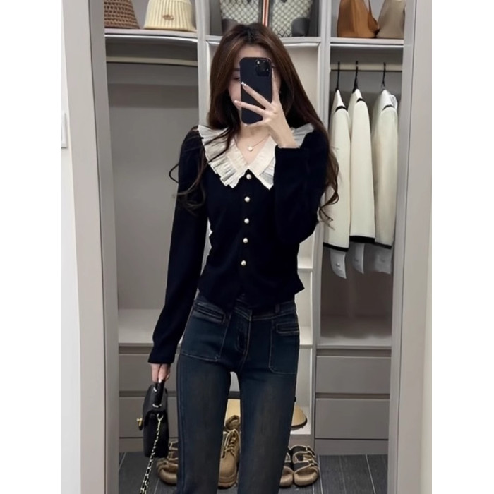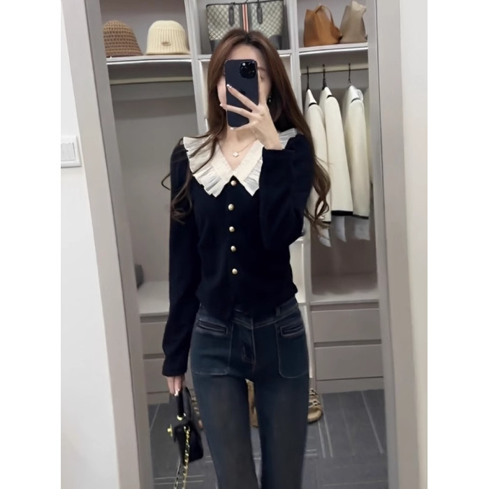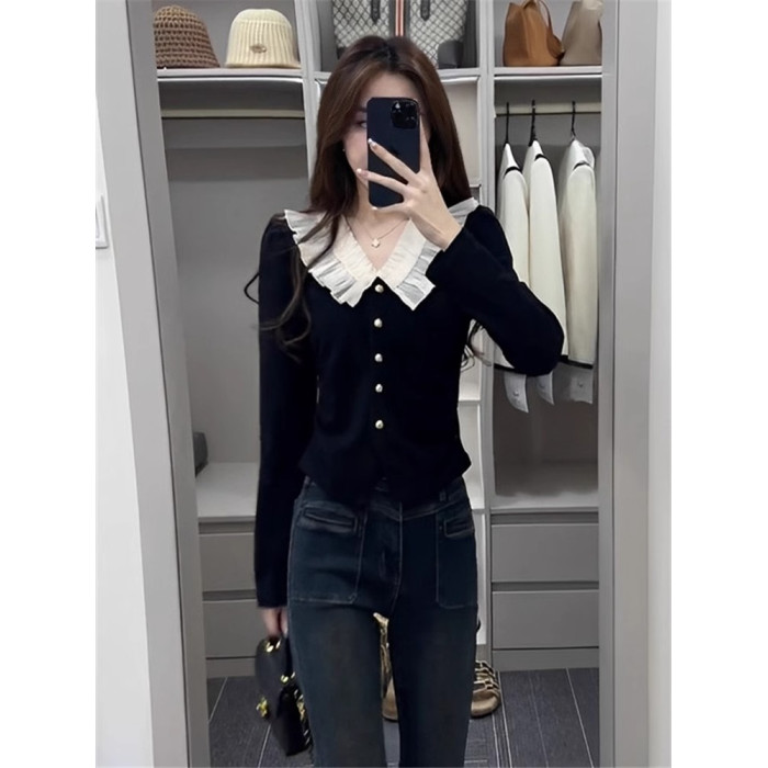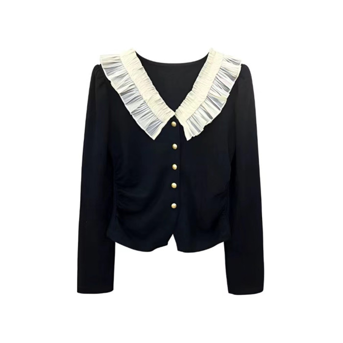 法式復古娃娃領泡泡袖上衣女小衆設計感春季新款內搭打底衫高級感
