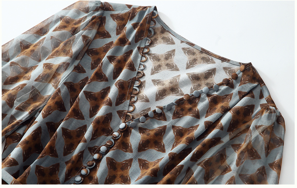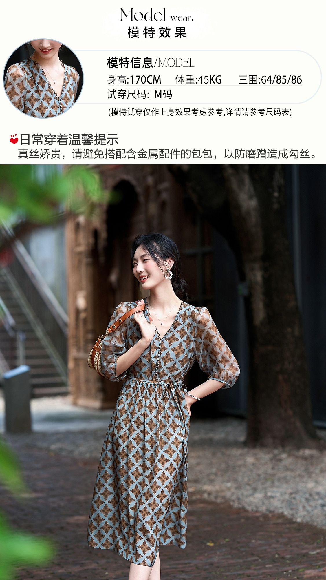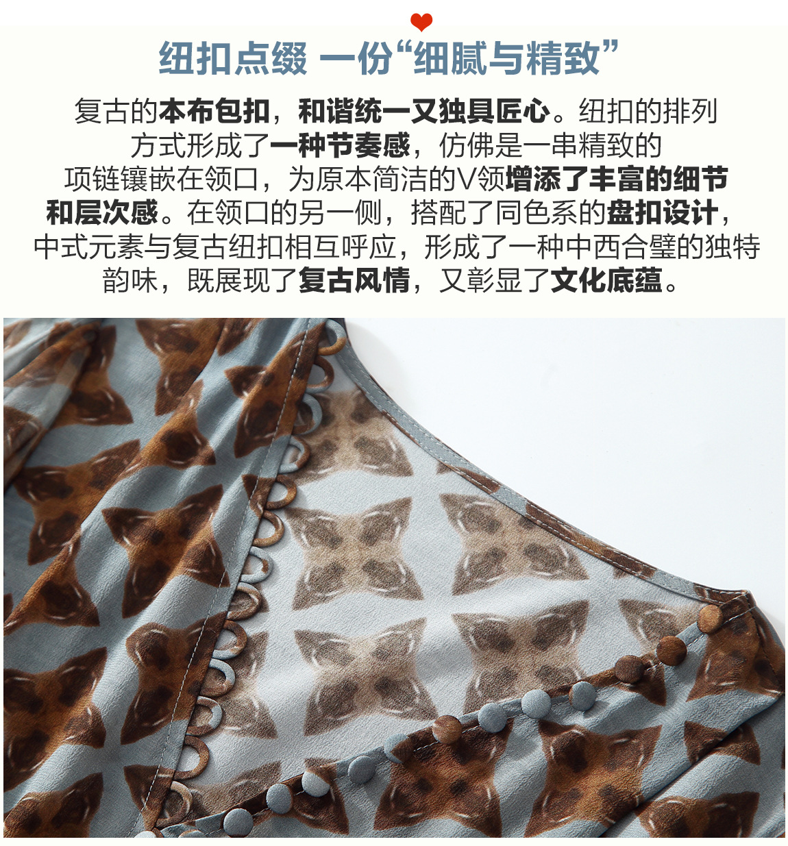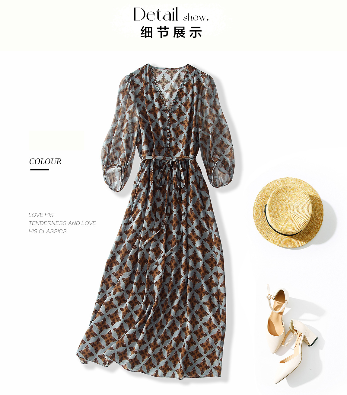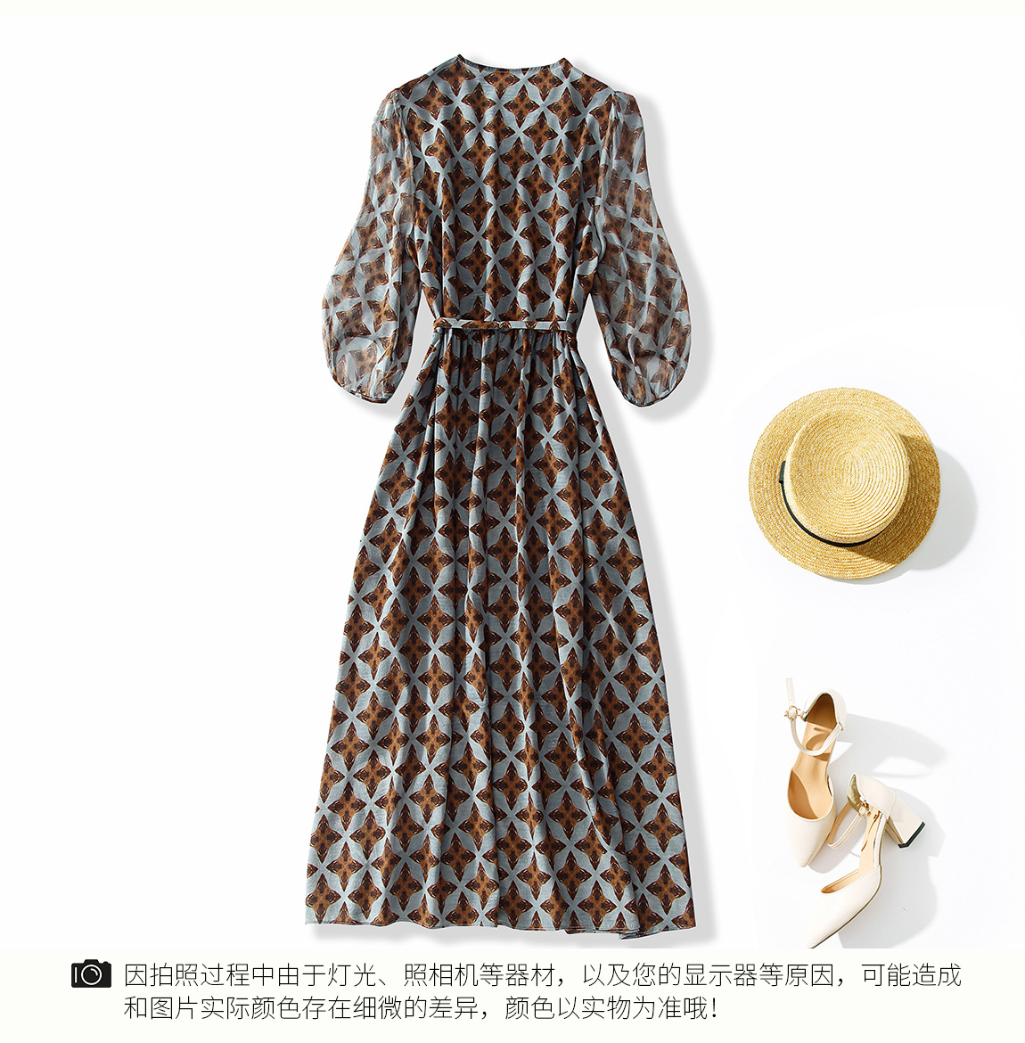 系列 | 高端輕奢大牌設計師款咖色印花連衣裙 法式復古系列 出口外貿熱銷 |