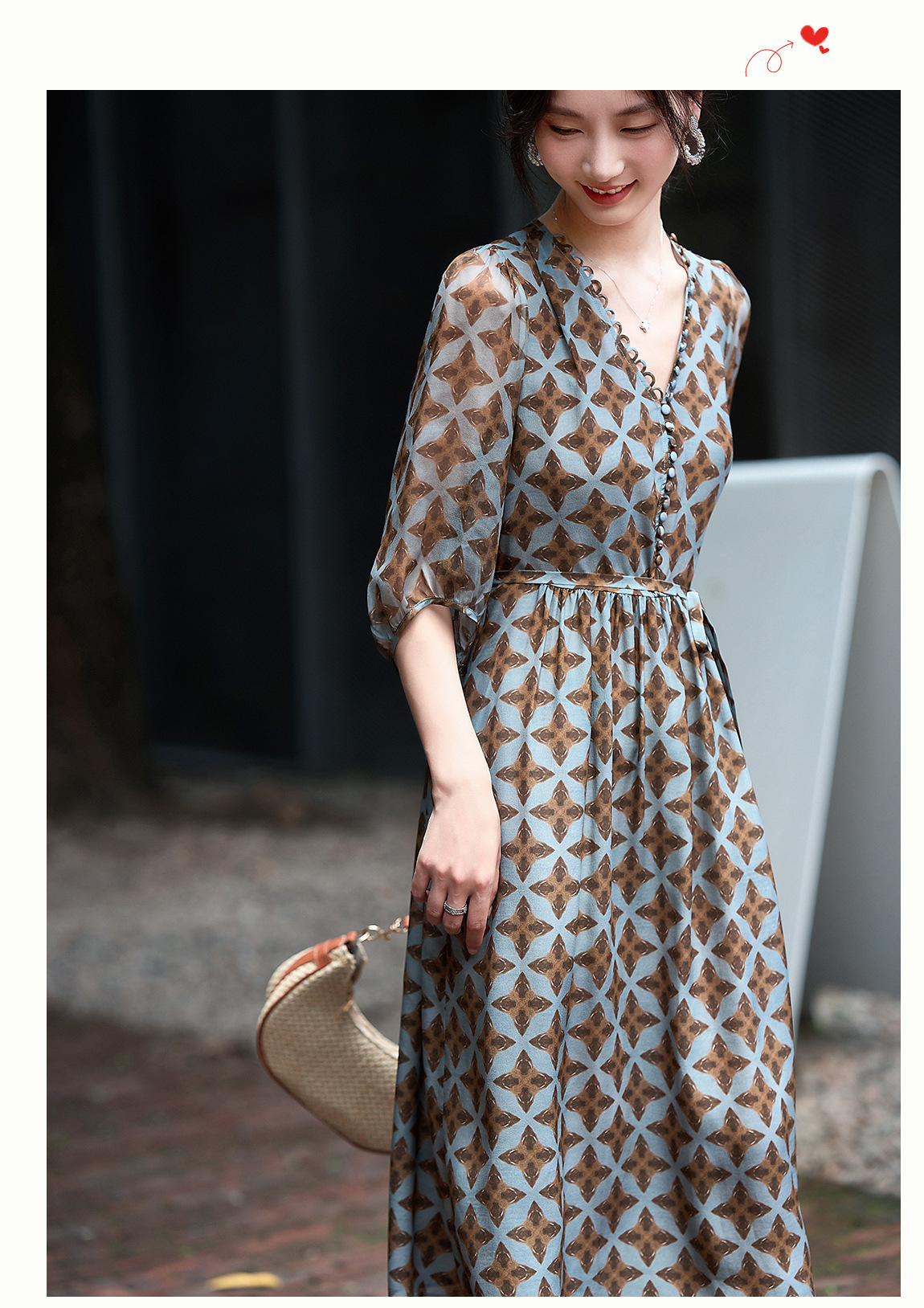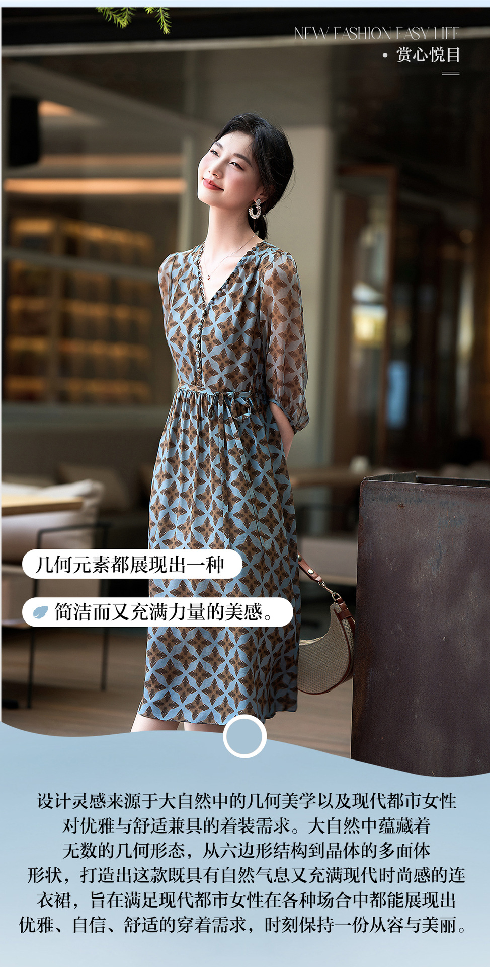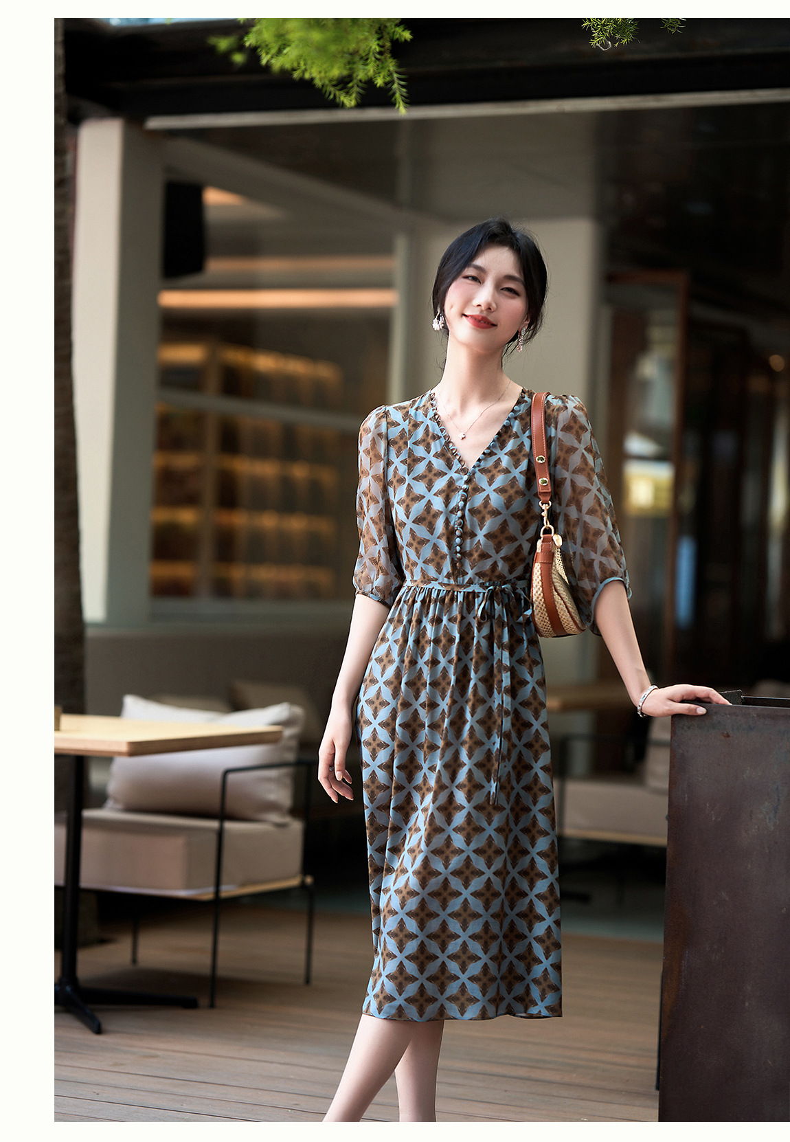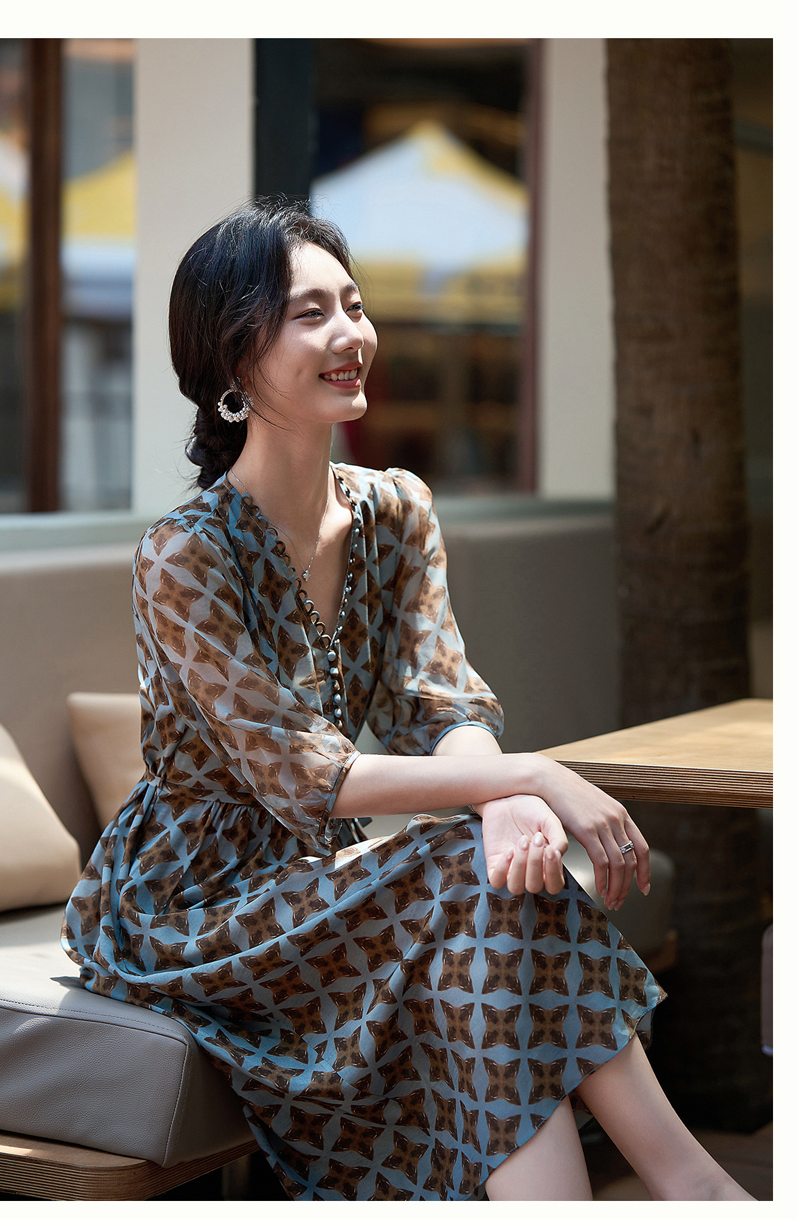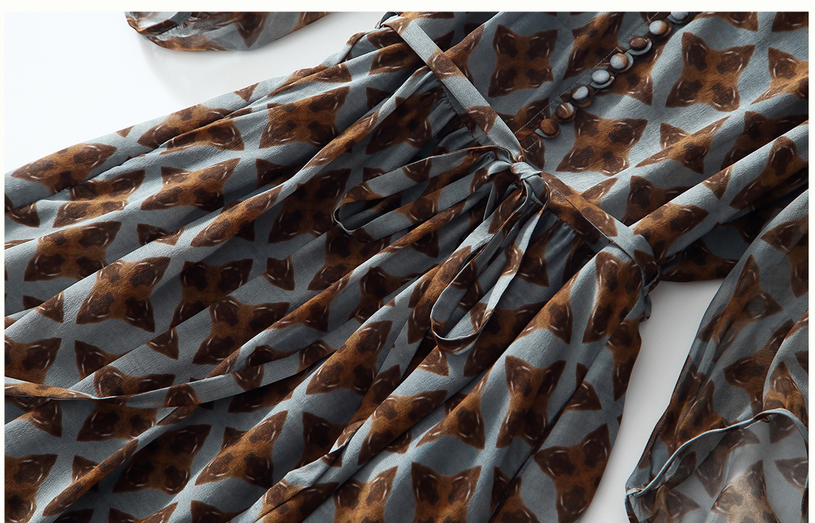系列 | 高端輕奢大牌設計師款咖色印花連衣裙 法式復古系列 出口外貿熱銷 |