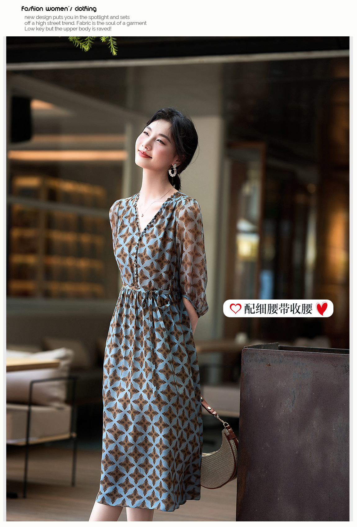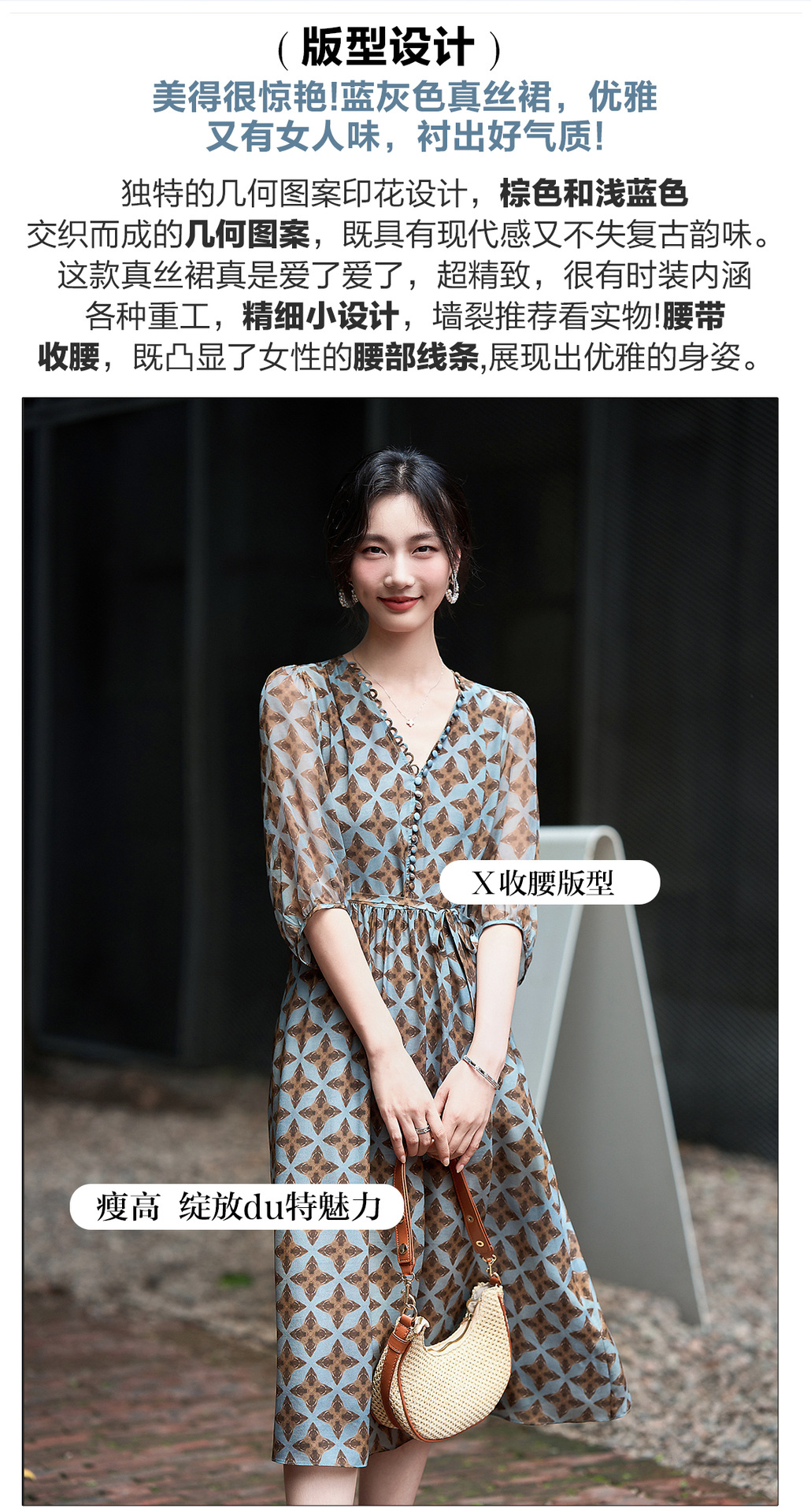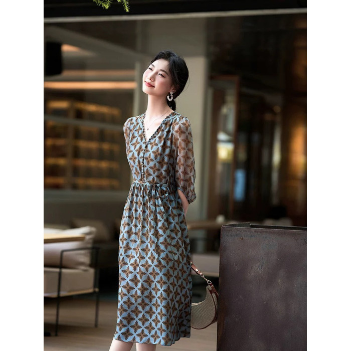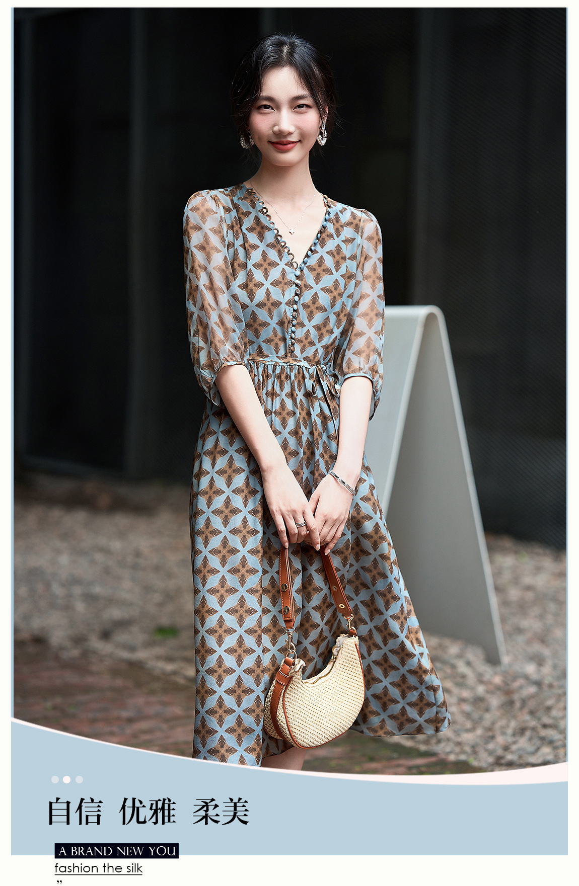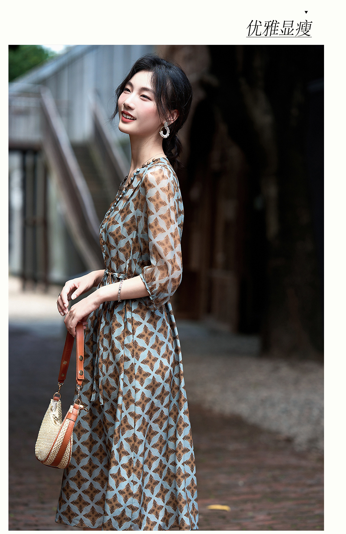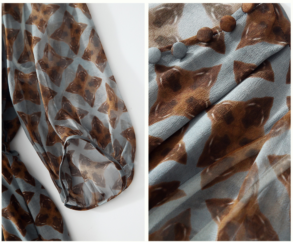 系列 | 高端輕奢大牌設計師款咖色印花連衣裙 法式復古系列 出口外貿熱銷 |