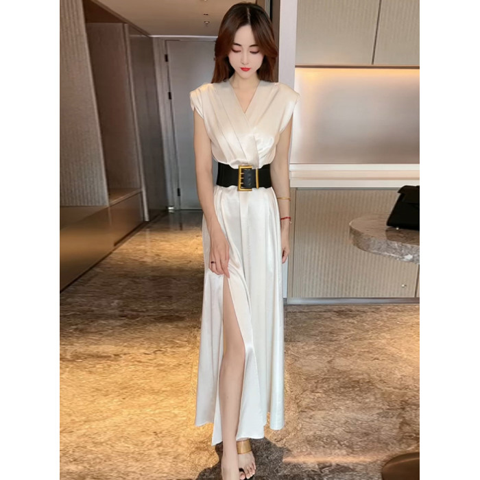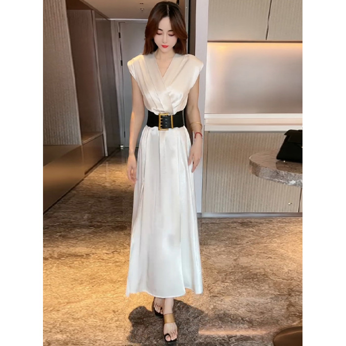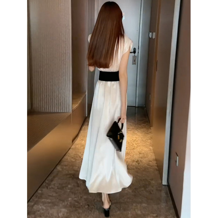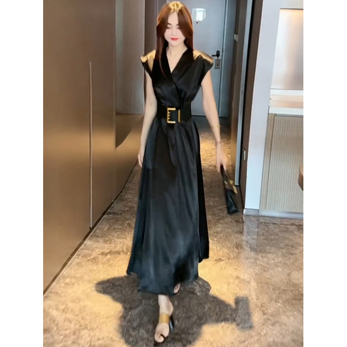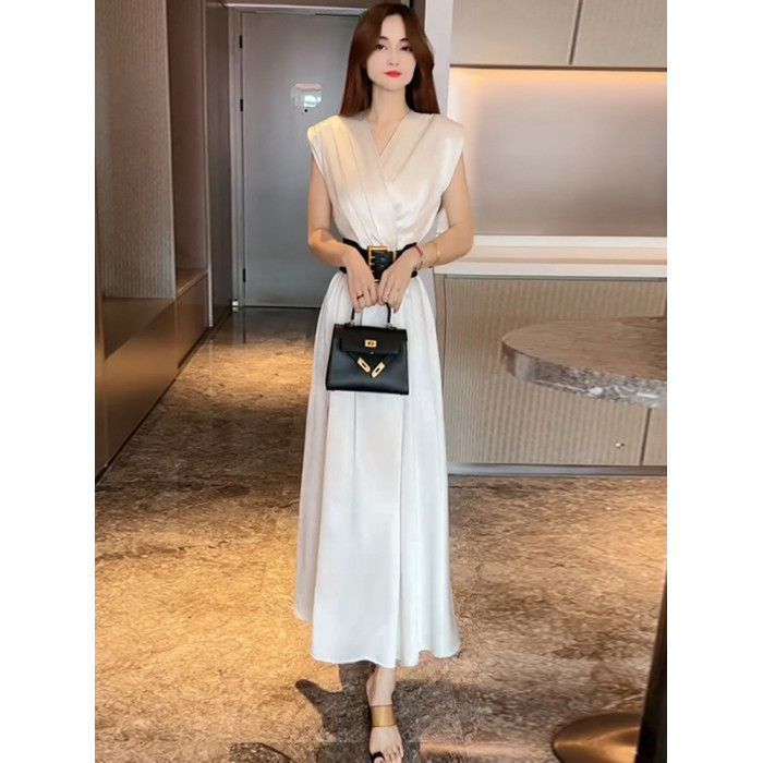 高級感無袖坎肩收腰連衣裙女夏季新款法式赫本風氣質高腰顯瘦長裙