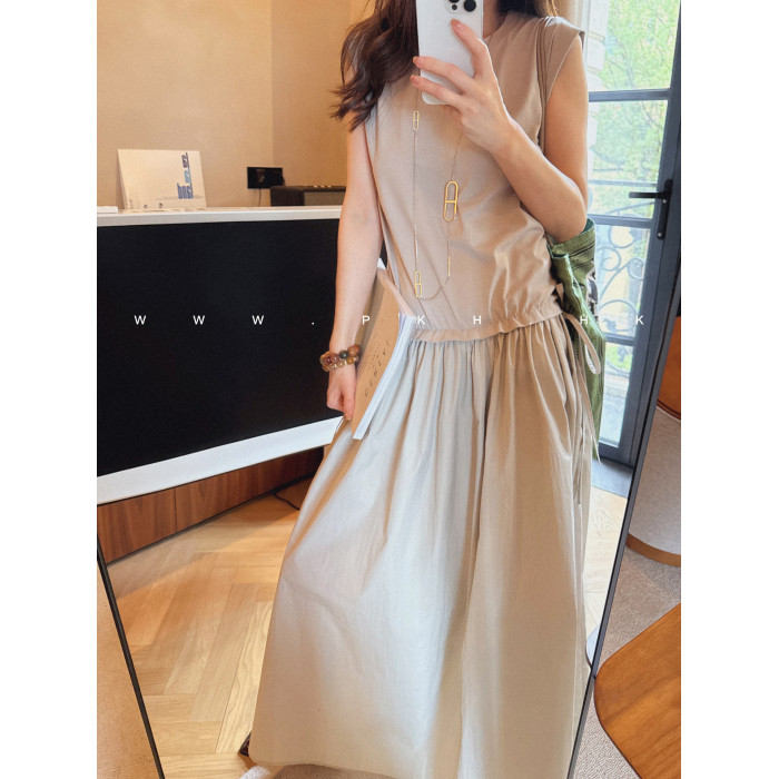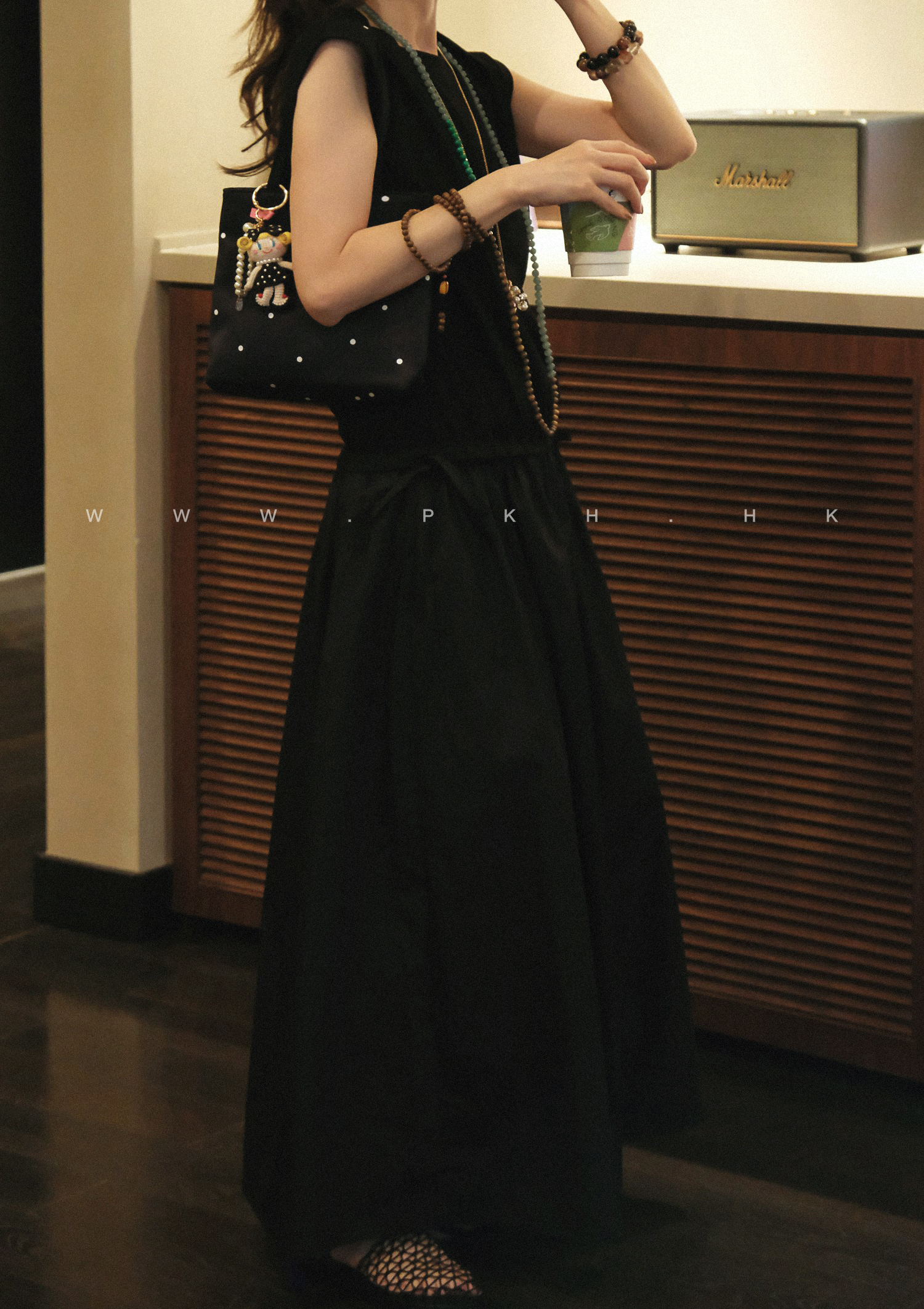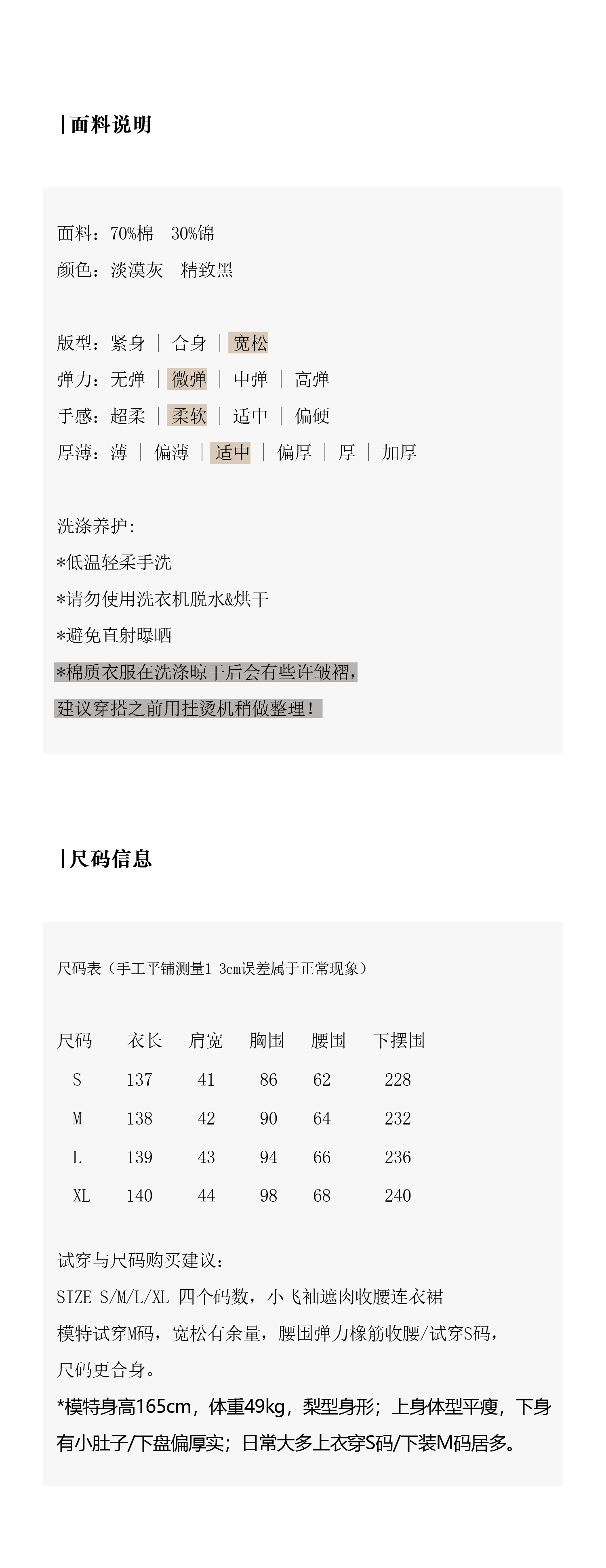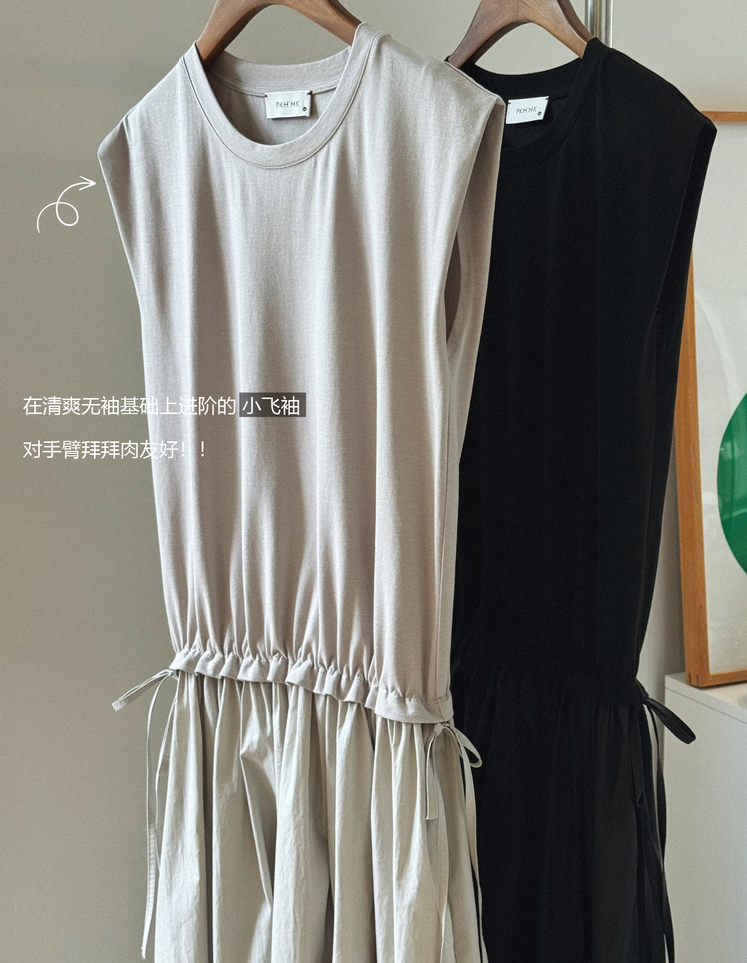 PKH.HK特 夏上新 私服日常涼爽小飛袖設計感遮肉肉橡筋收腰連衣裙